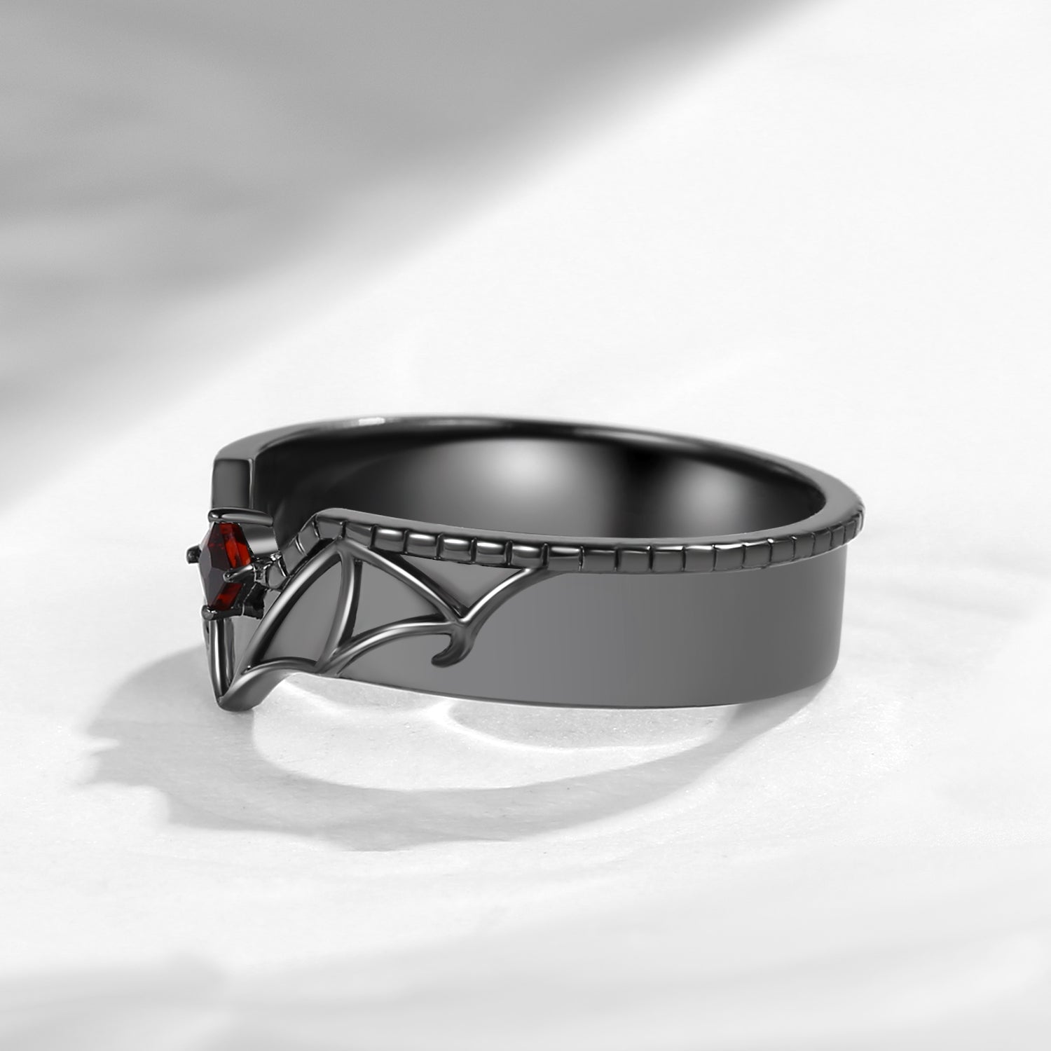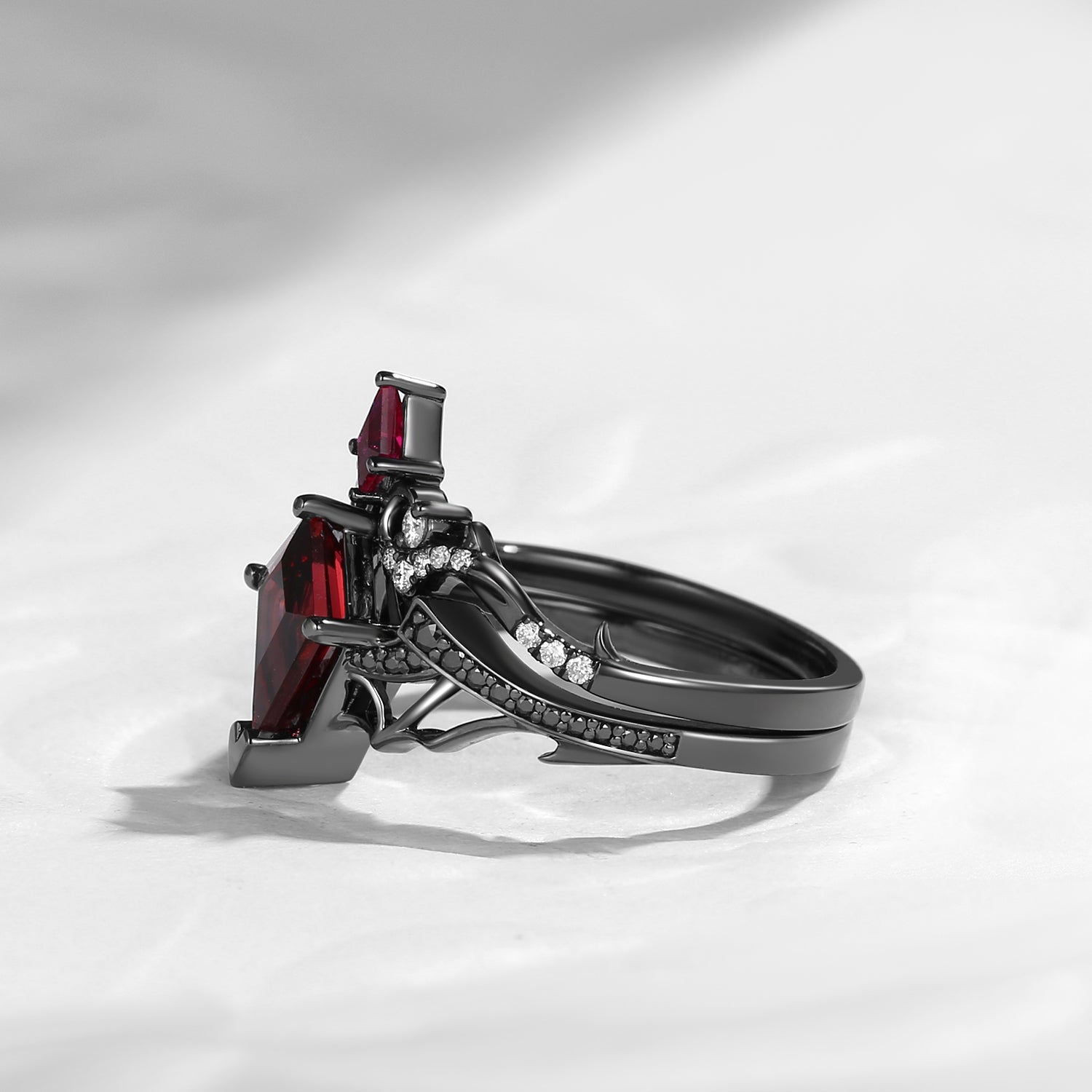 Kite Cut Garnet Bat Wing Inspired Thorns Engagement Ring Set 2pcs - Bat Ring
