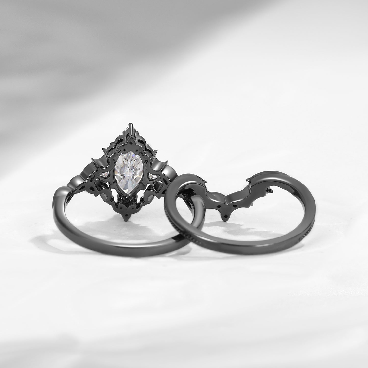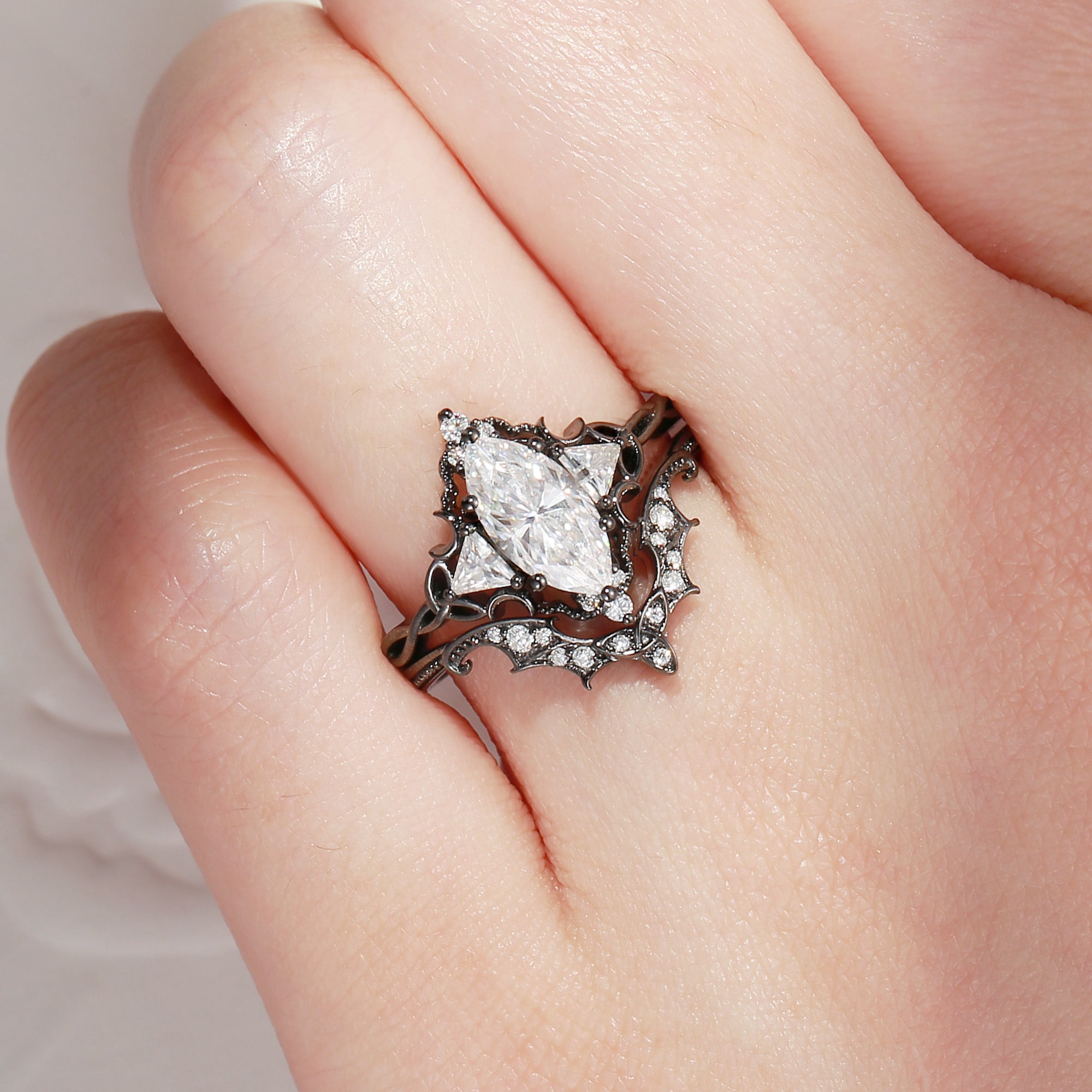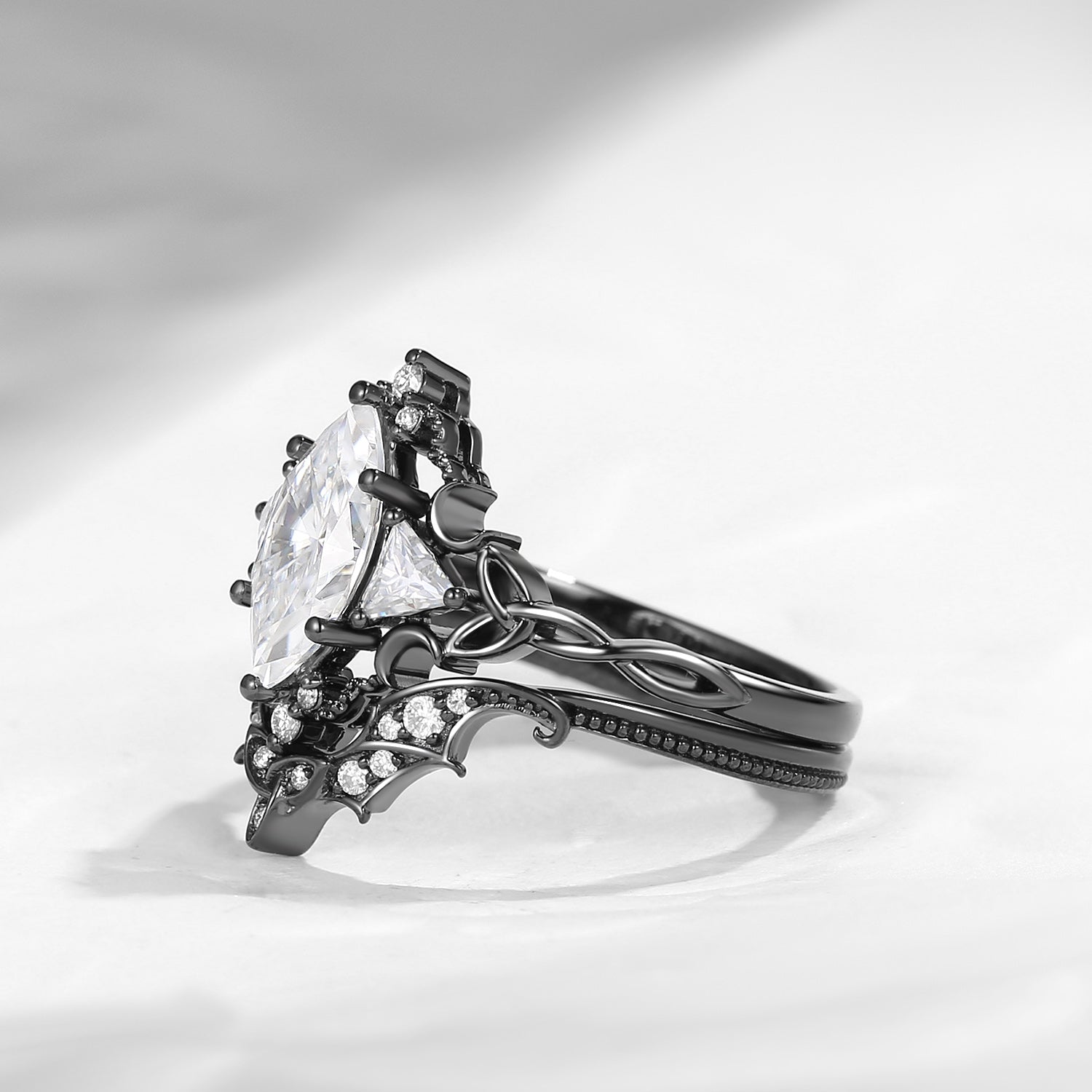 Marquise Cut Moissanite Celtic Moon Twist Engagement Ring Set 2pcs