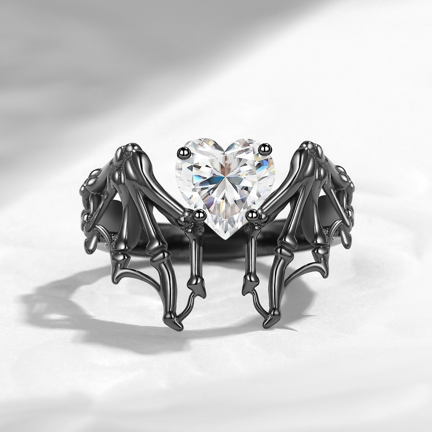 Moissanite Heart Cut Vintage Inspired Black Gold Engagement Ring - Bat Ring