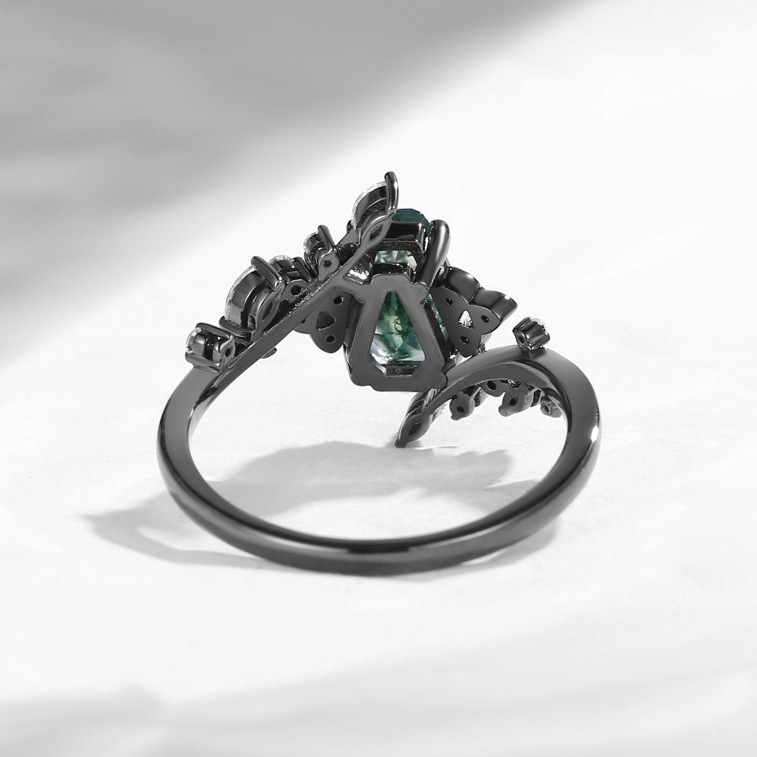 Crescent Moon | Coffin Cut Lab Emerald 'Black Statement' Ring Set 2pcs