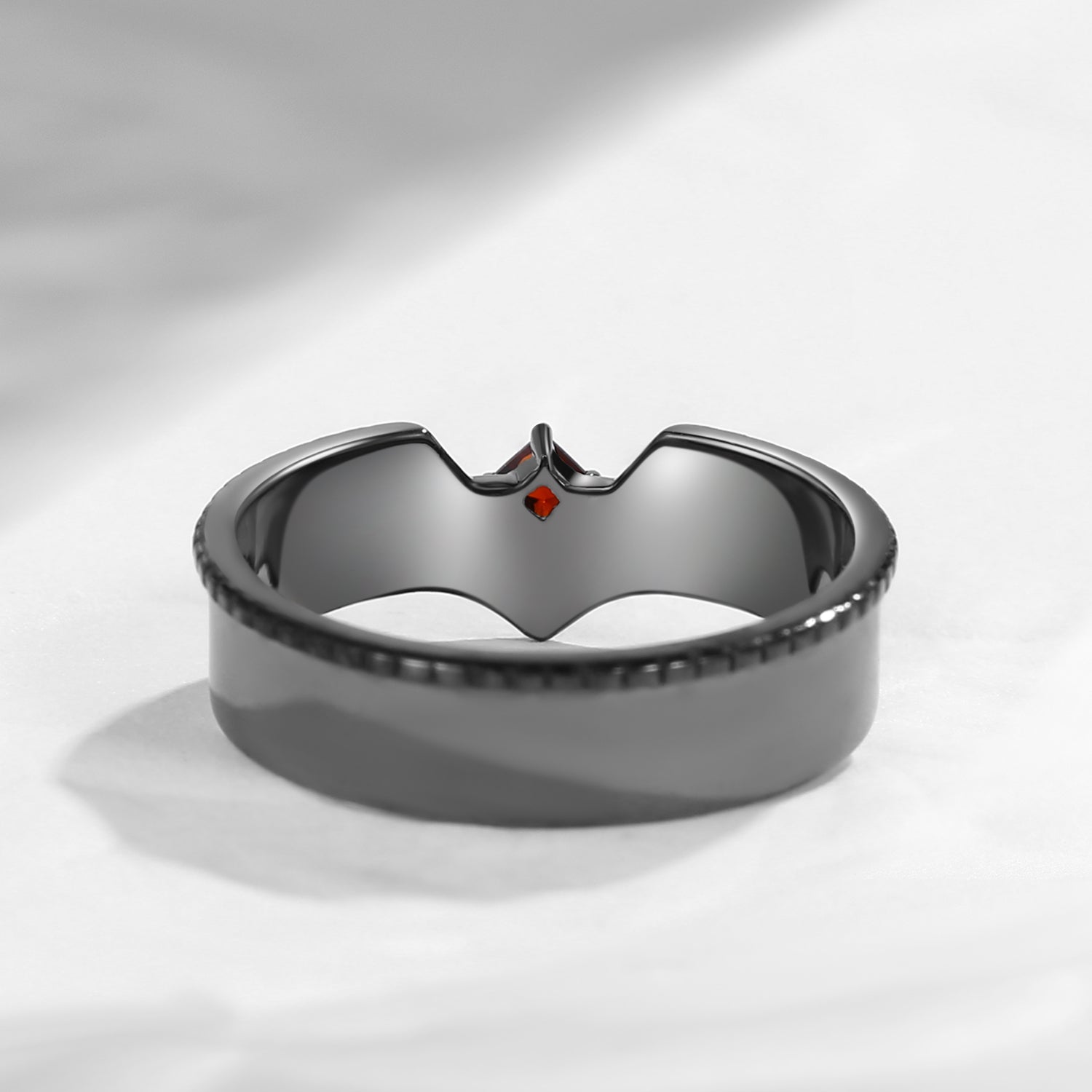Unique Princess Cut Garnet Black Gold Bat Wing Inspired Wedding Band For Men