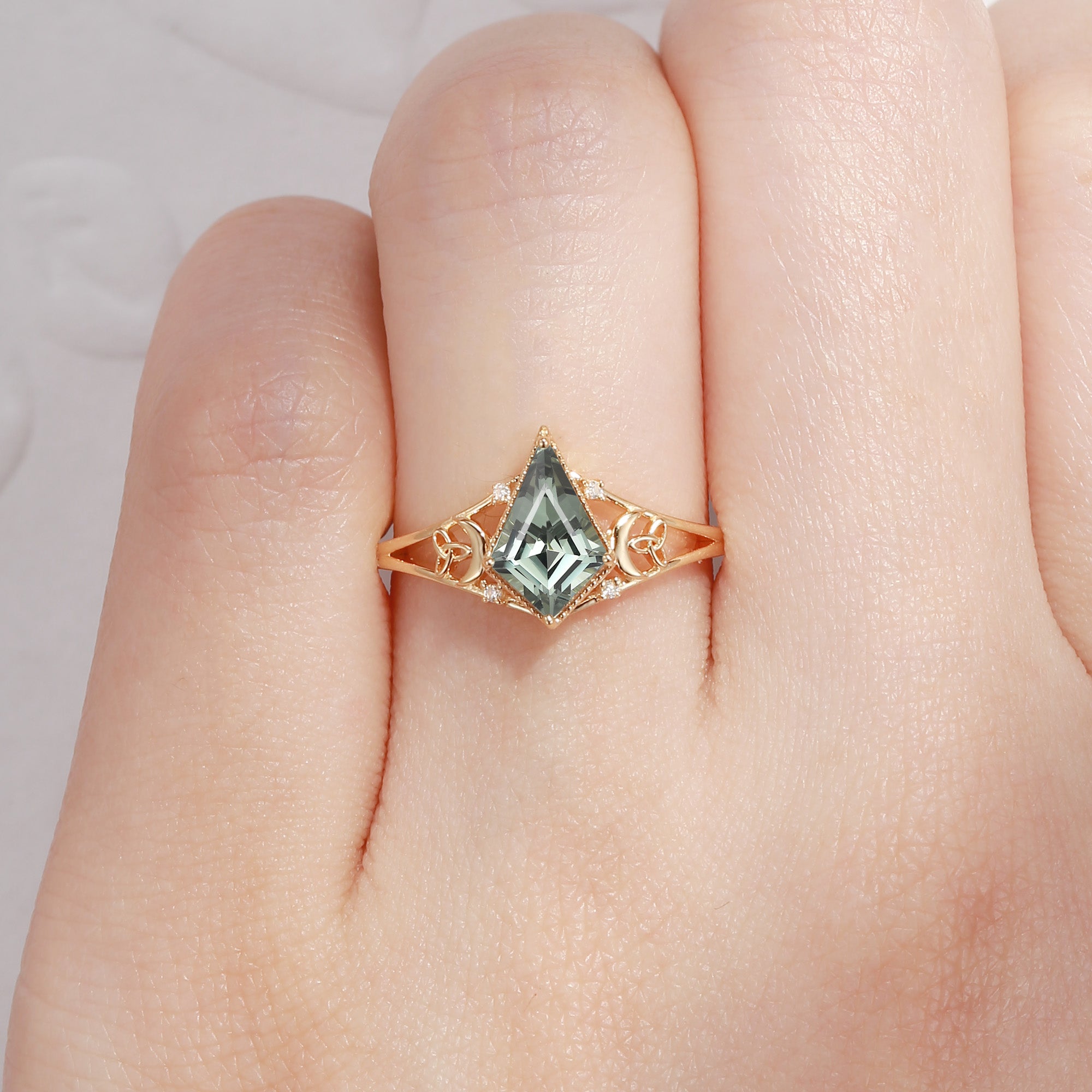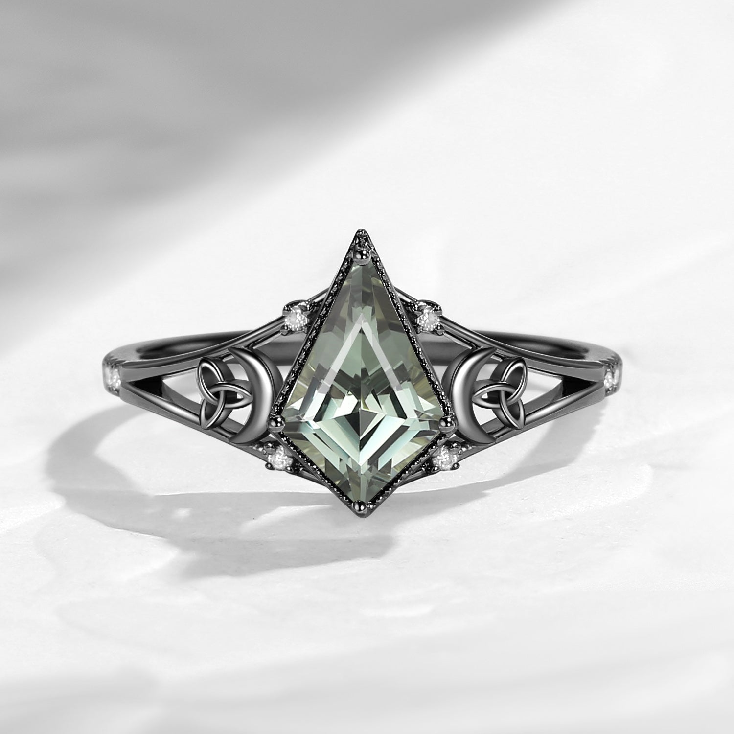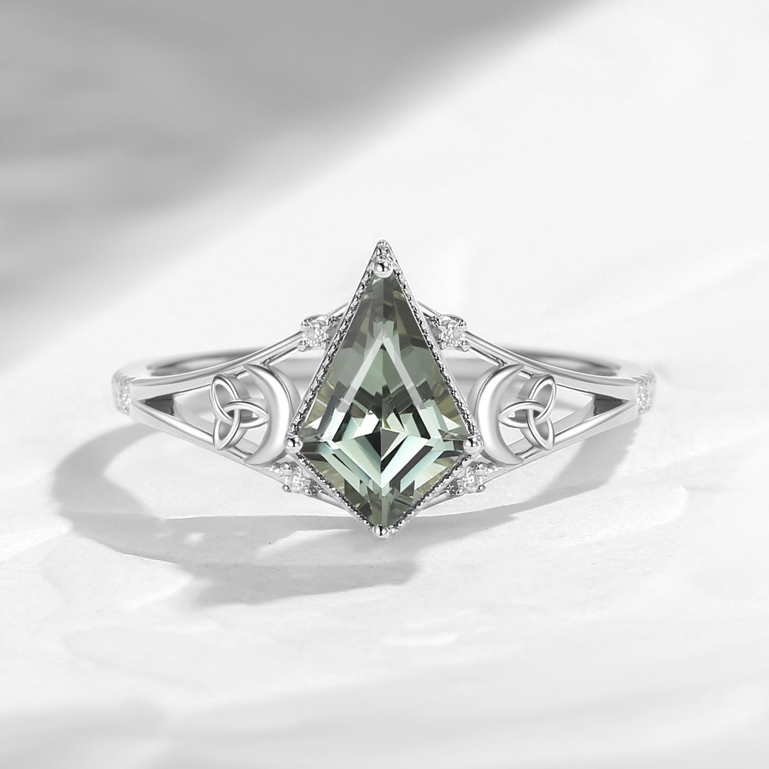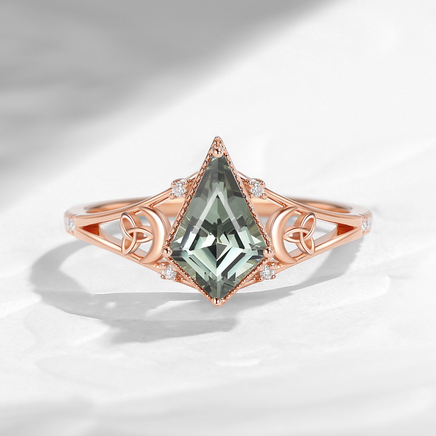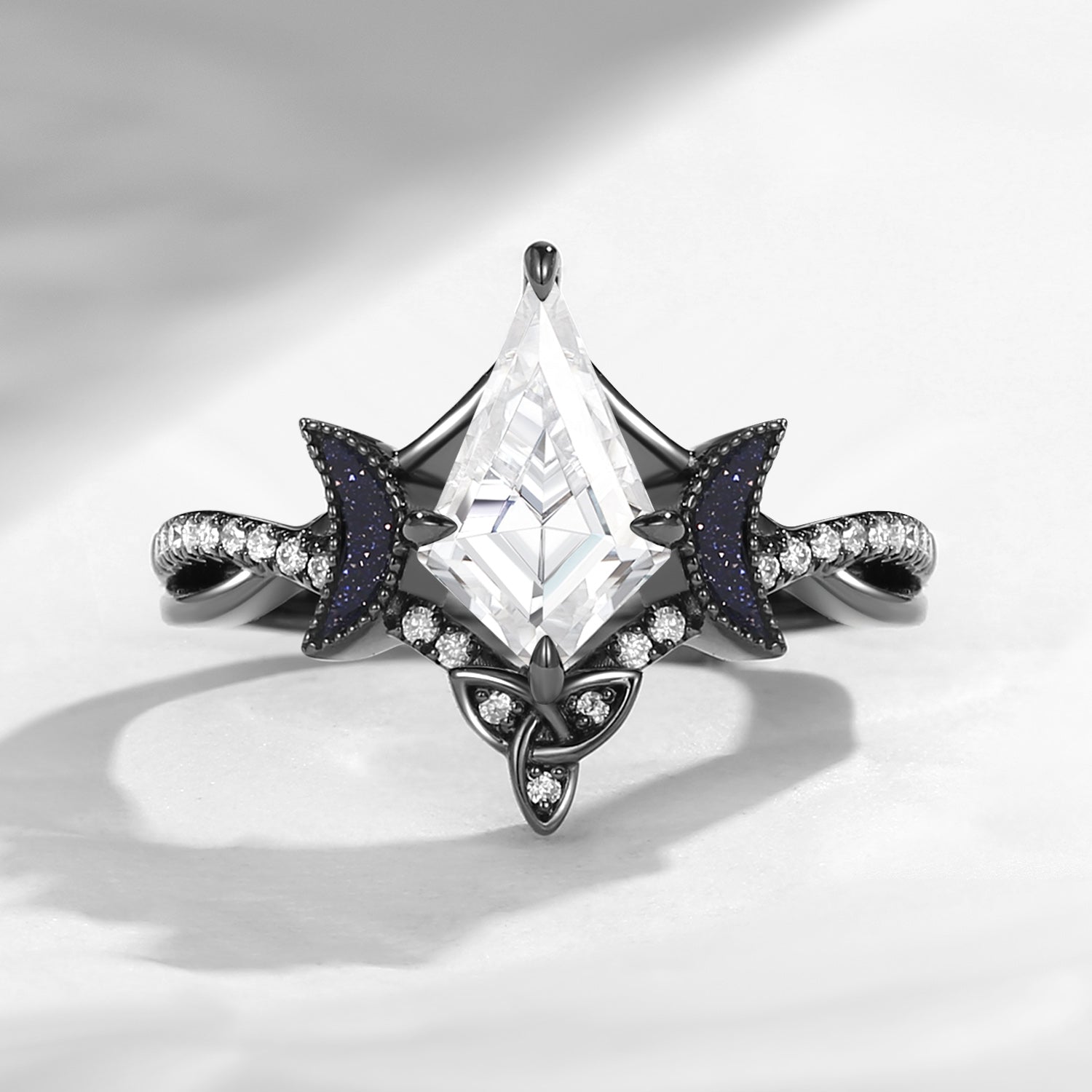 Celtic Moon | Kite Shaped Art Deco Moissanite Engagement Ring
