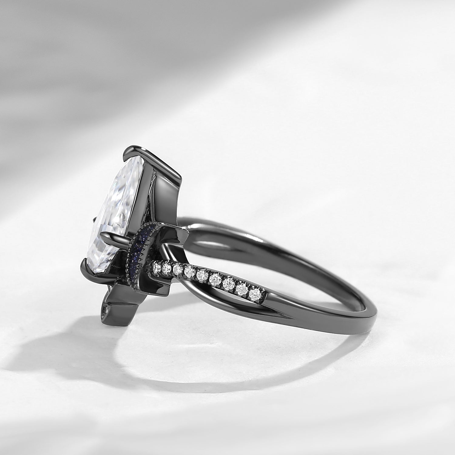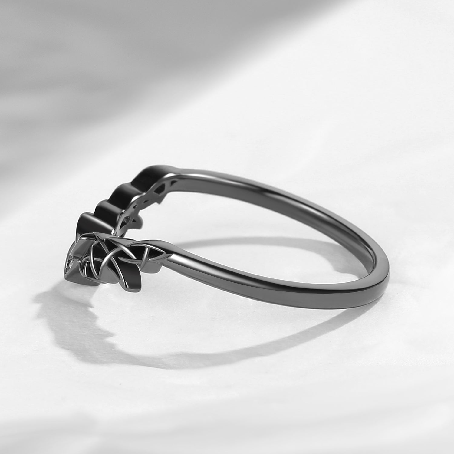 Marquise Cut Black Moissanite Gothic Bat Inspired Engagement Ring