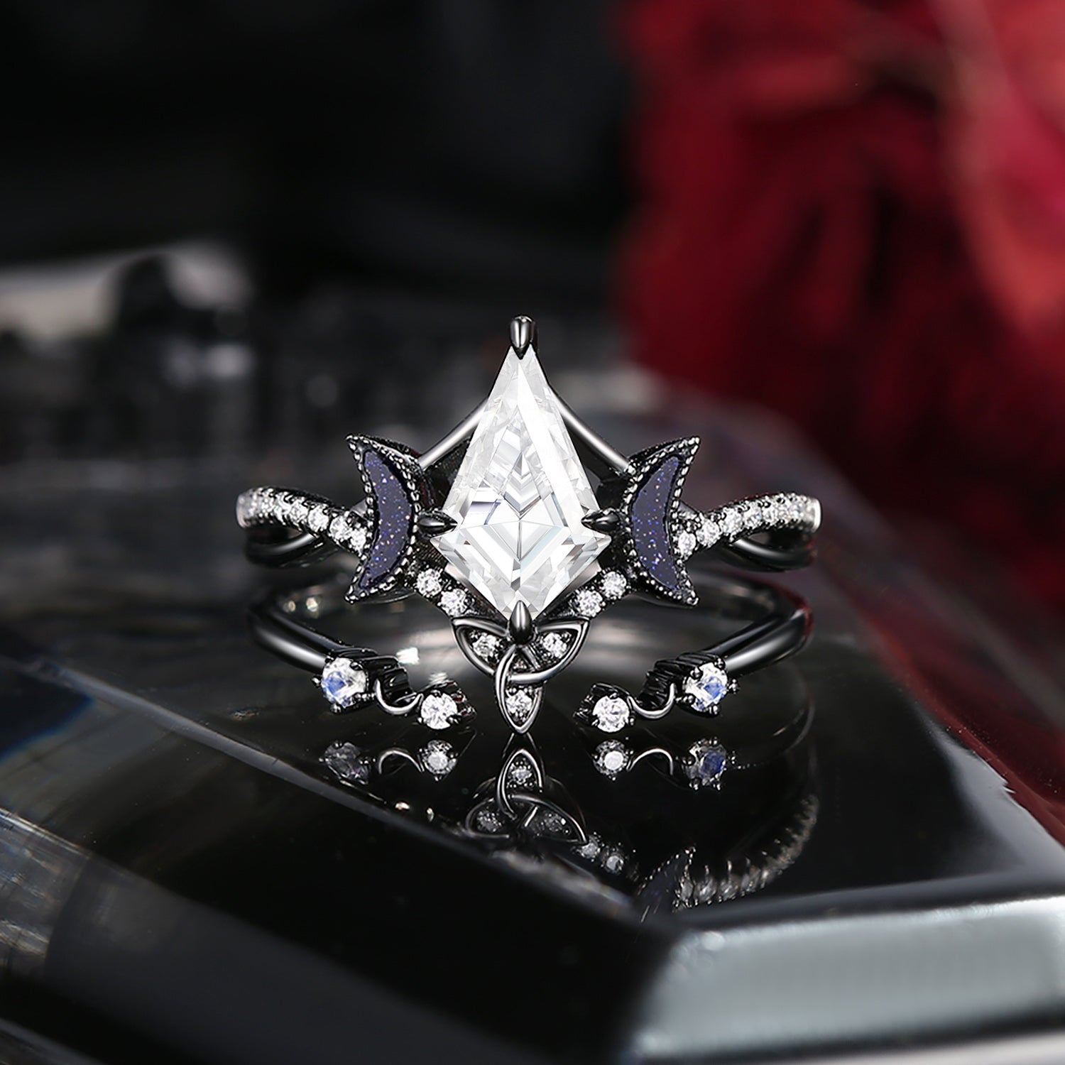 Celtic Moon | Kite Shaped Art Deco Moissanite Bridal Set 2pcs