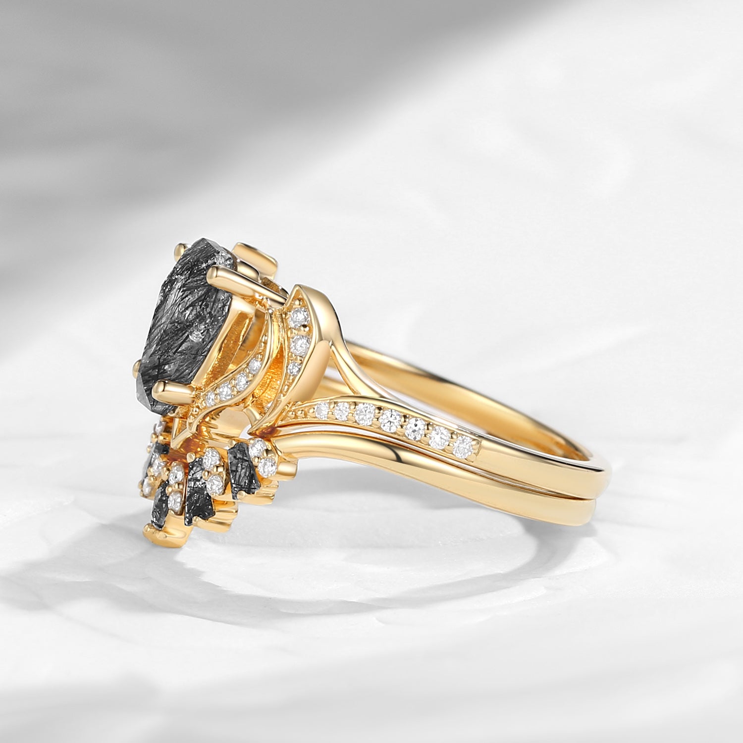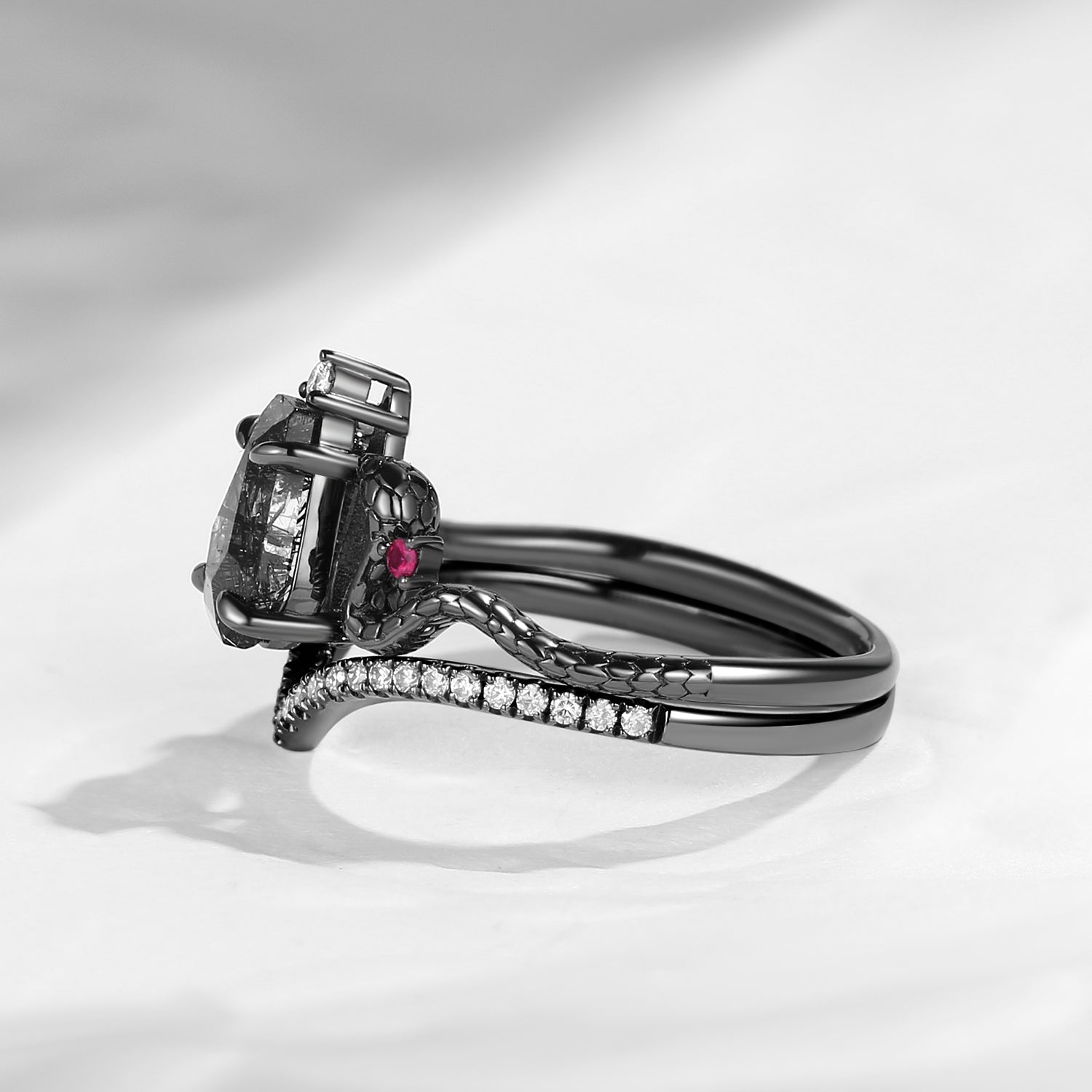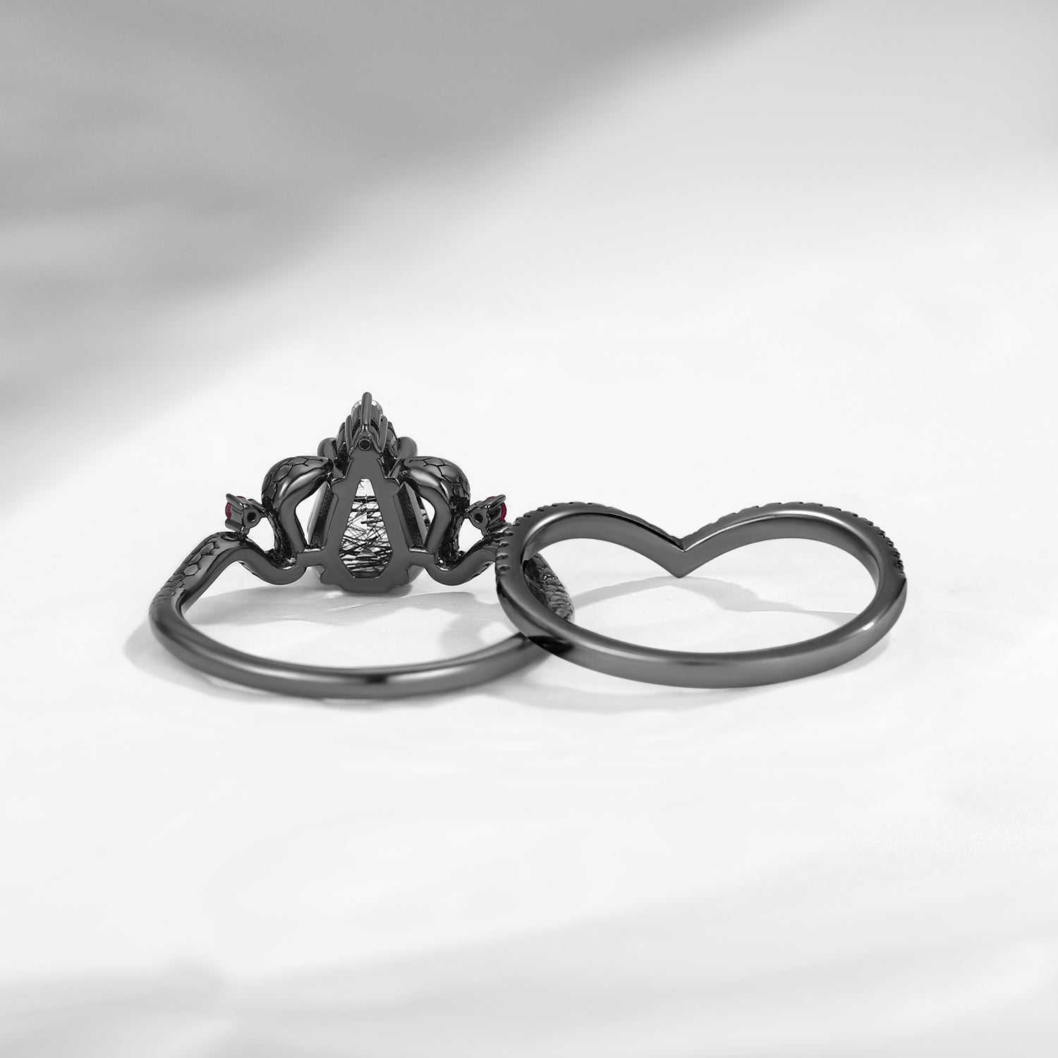 Gothic Coffin Cut Black Rutilated Quartz Engagement Ring - 'Serpent's Embrace'