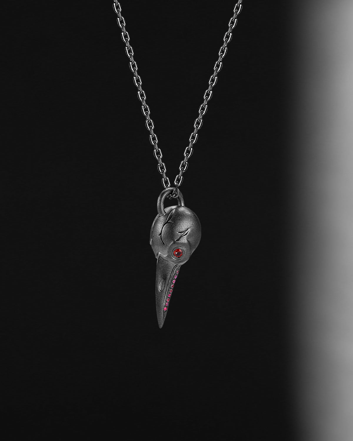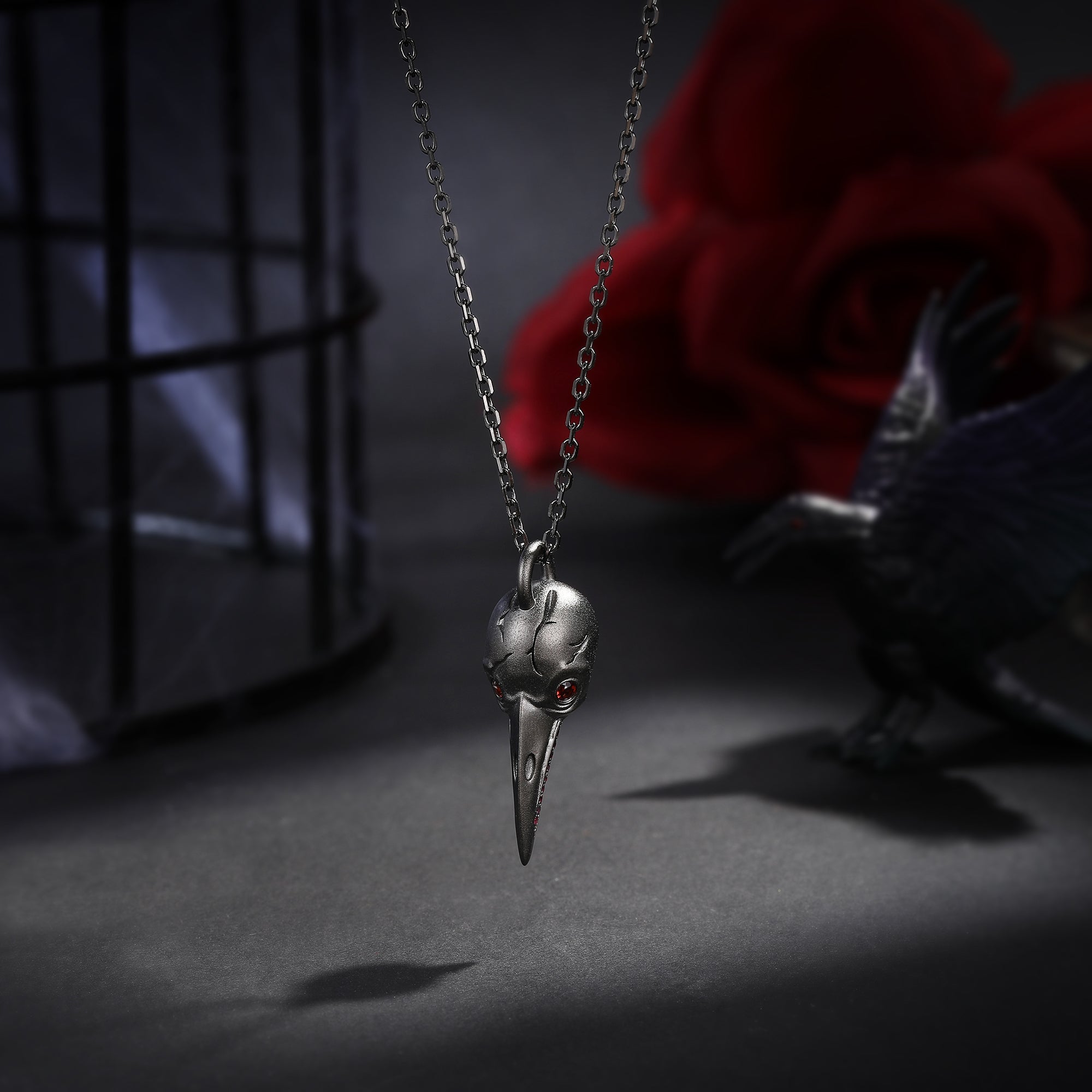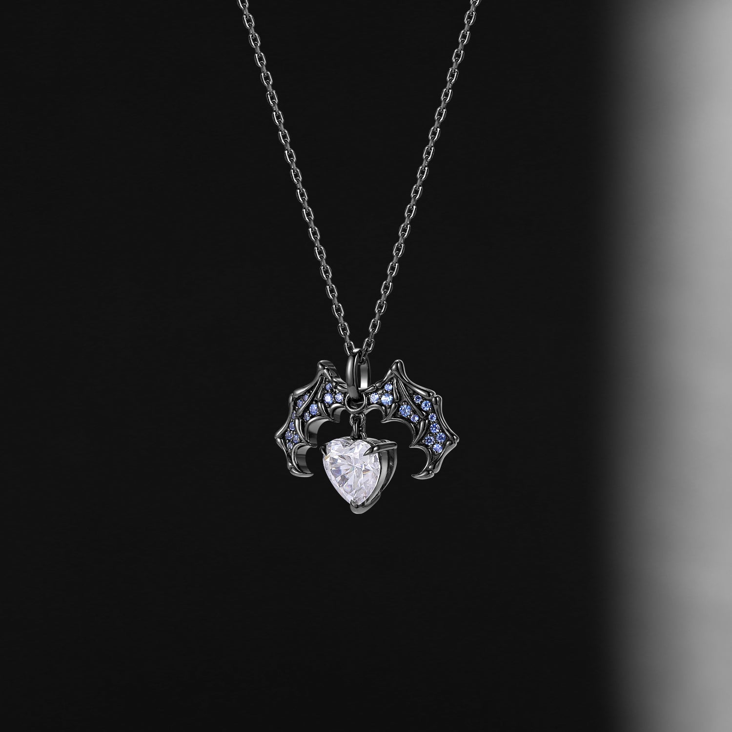 Unique Heart Shaped Garnet Necklace Bat Wing Halloween Jewelry