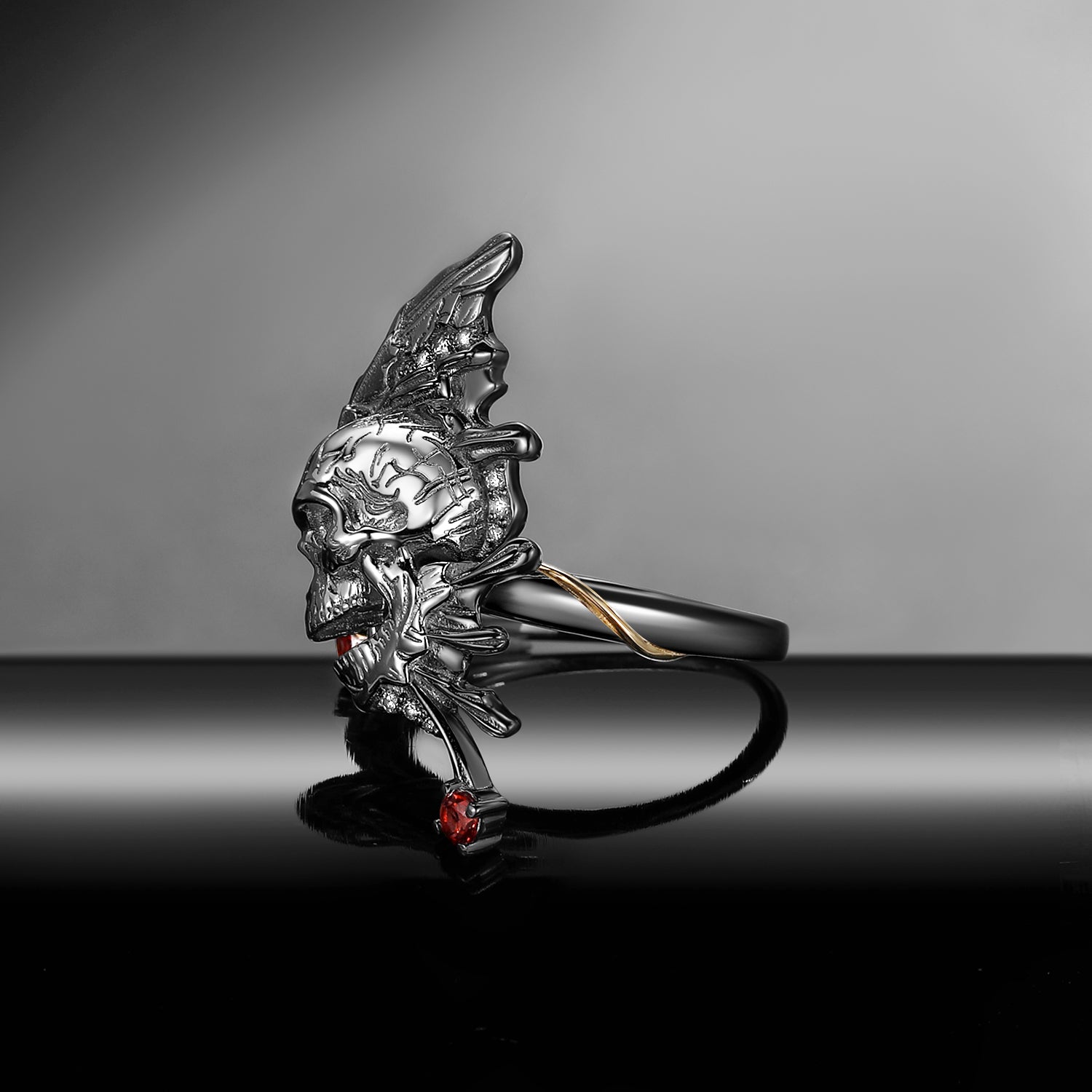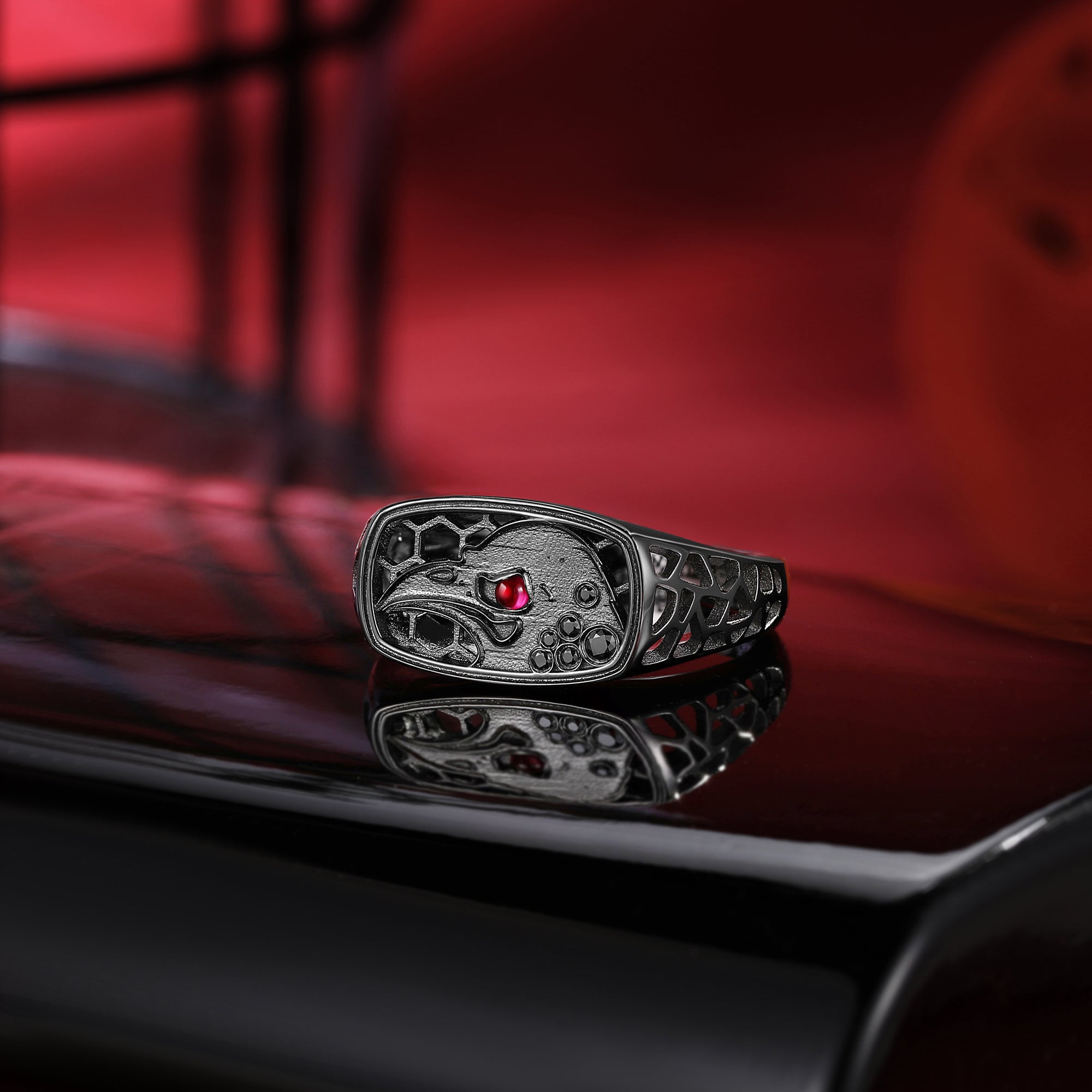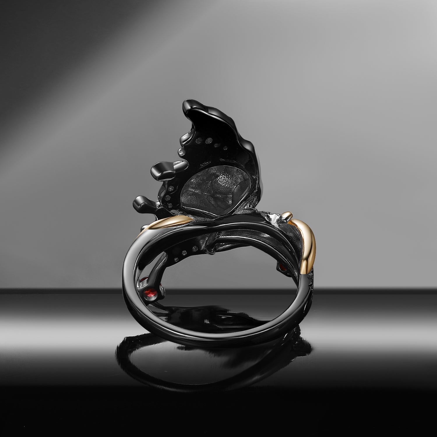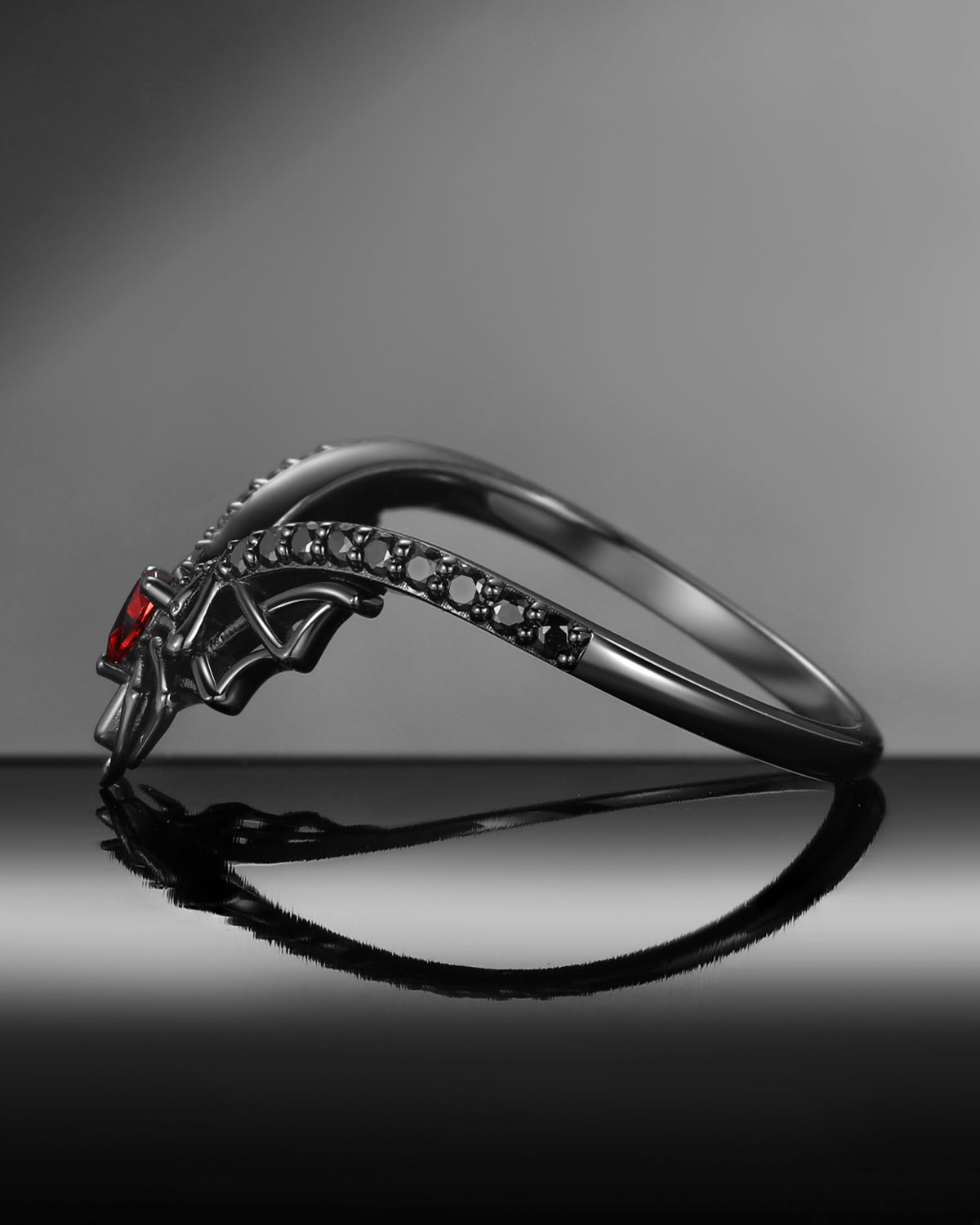 Lab Ruby Gothic Crow Inspired Black Gold Hollow Wedding Band