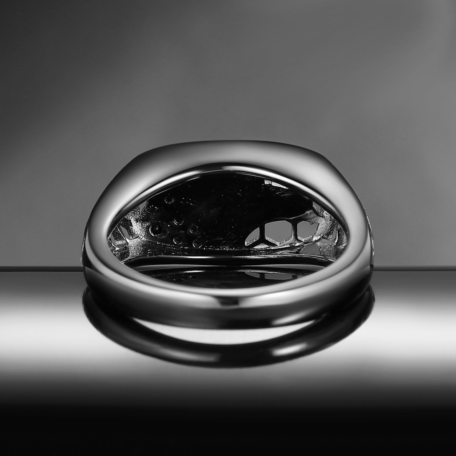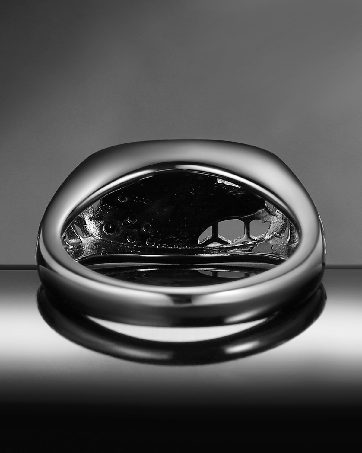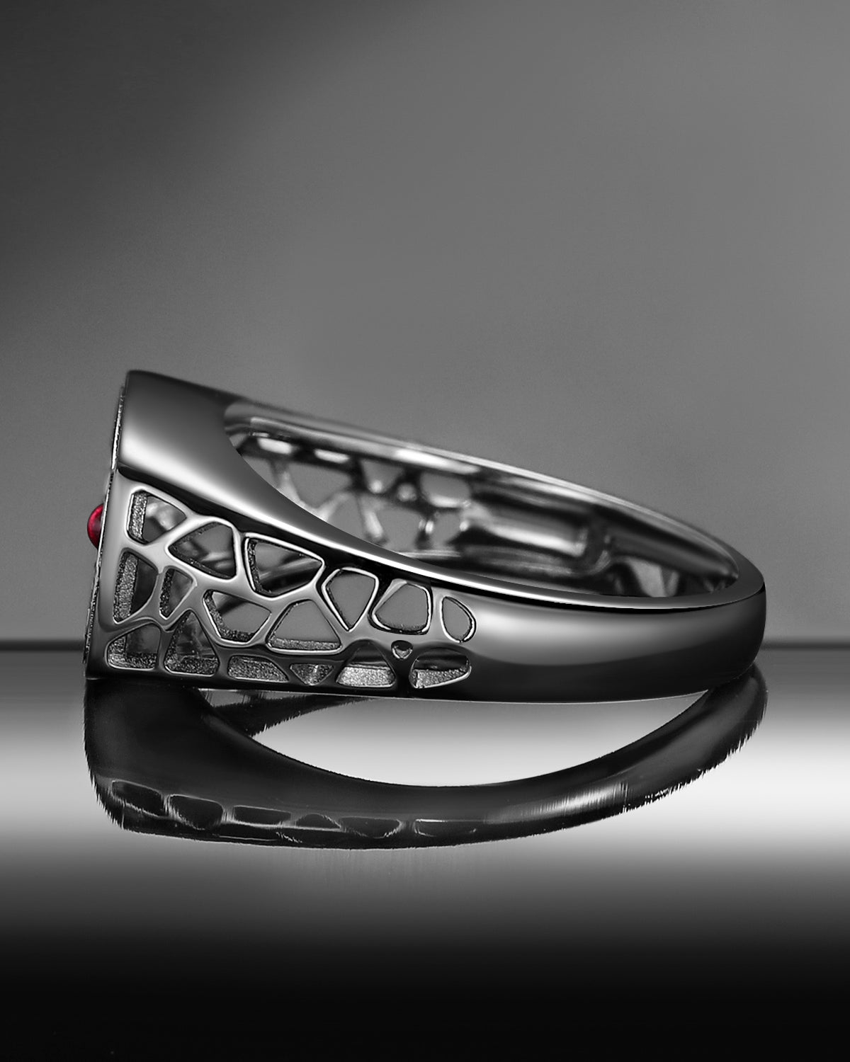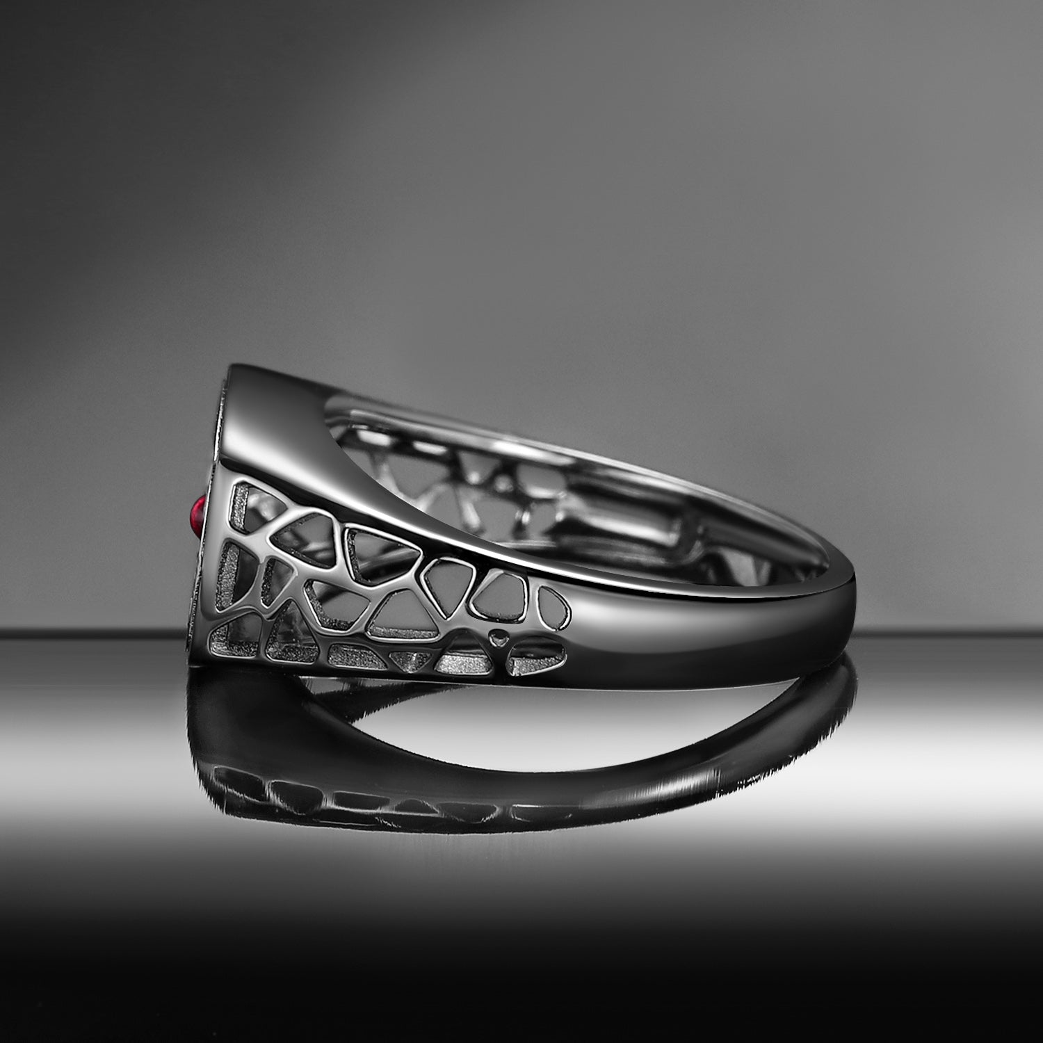 Lab Ruby Gothic Crow Inspired Black Gold Hollow Wedding Band