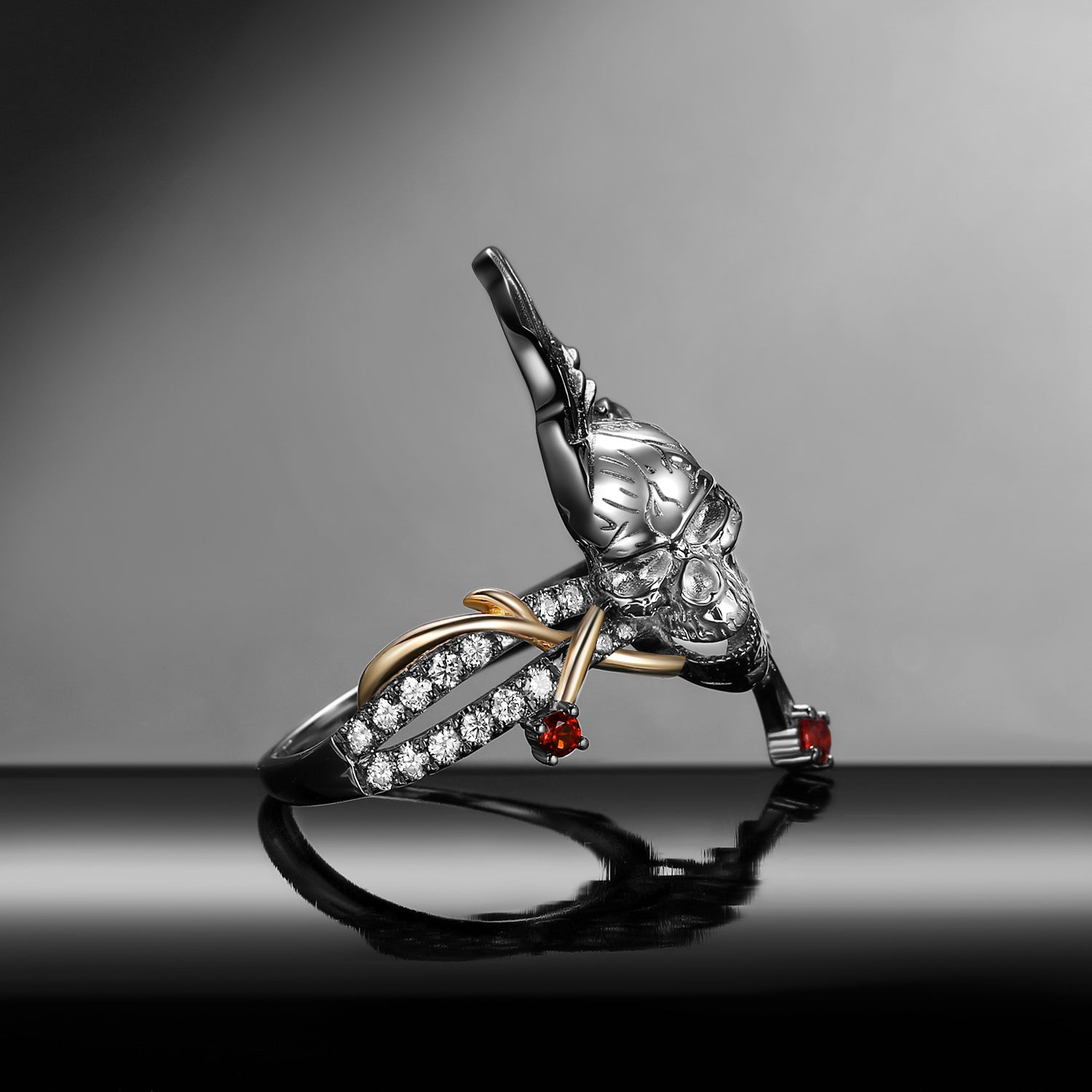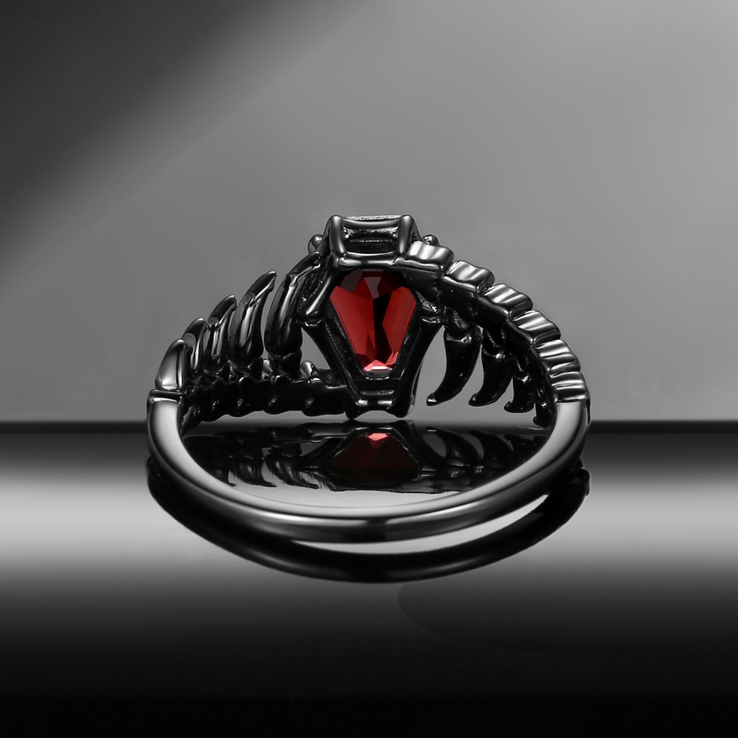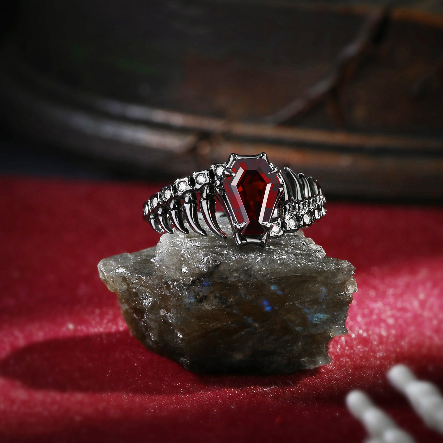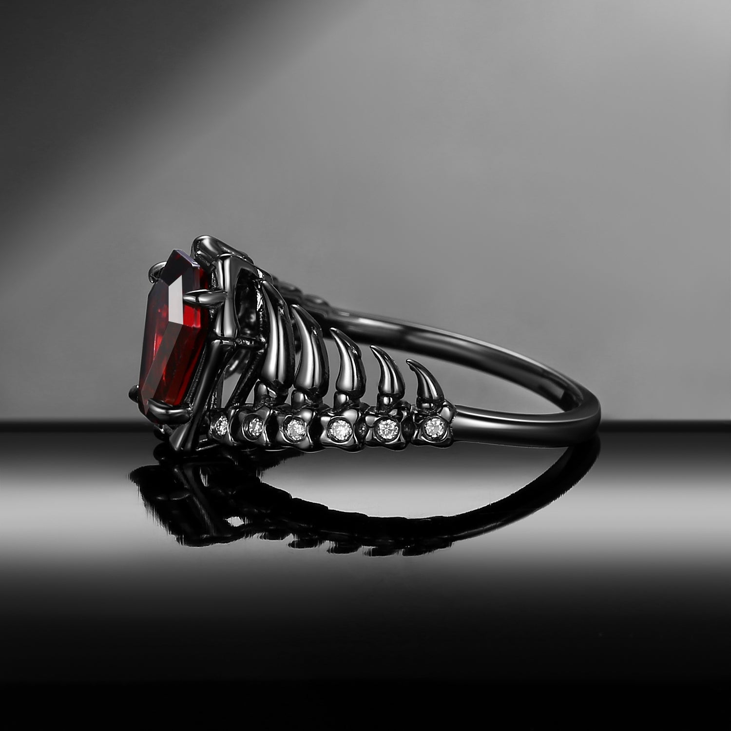 Gothic Inspired Skull & Skeleton Coffin Cut Garnet Engagement Ring