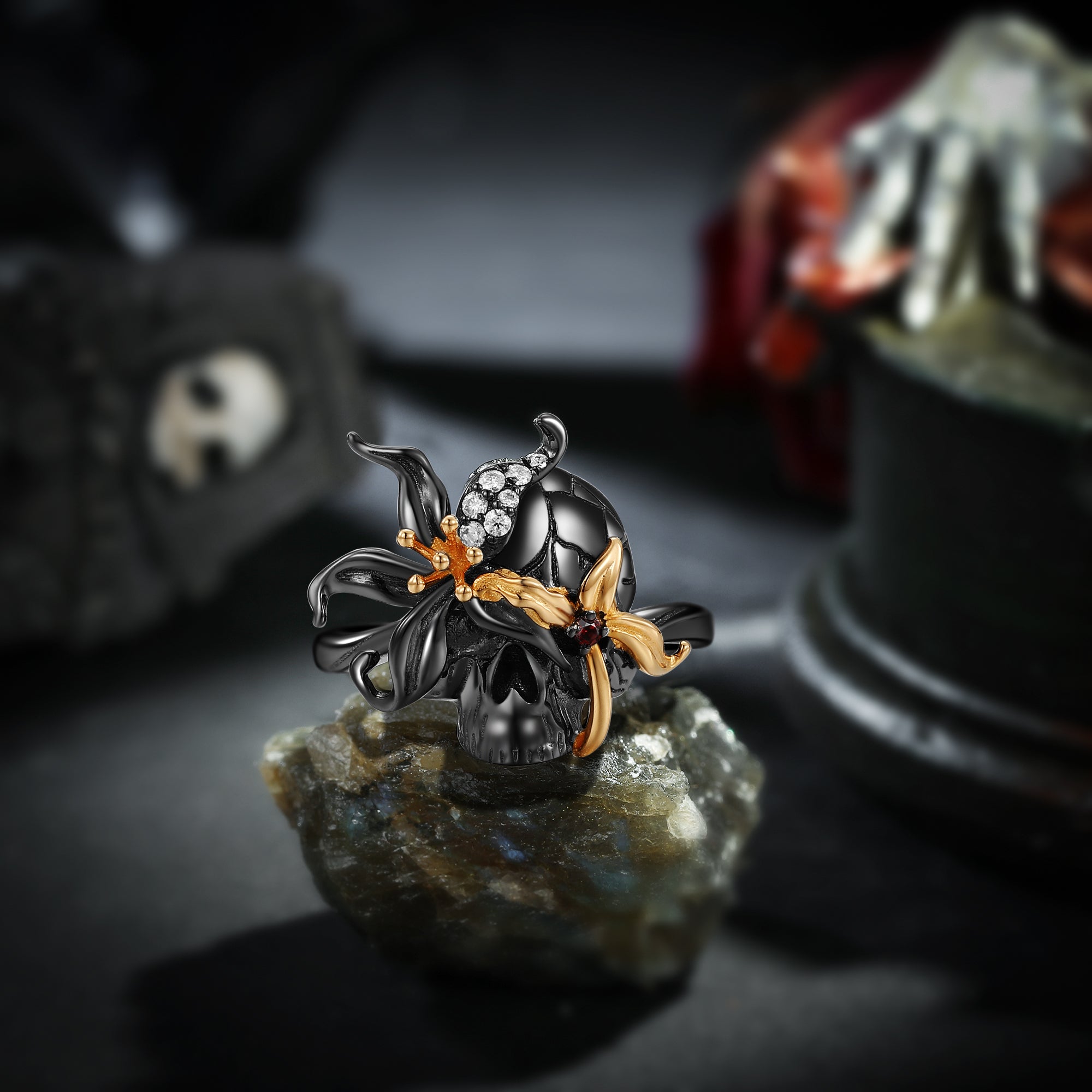 Gothic Inspired Skull & Skeleton Moissanite Engagement Ring