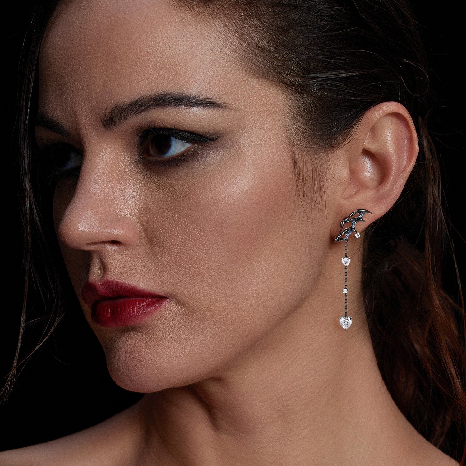 Heart Shaped Moissanite Black Gold Earrings Halloween Jewelry