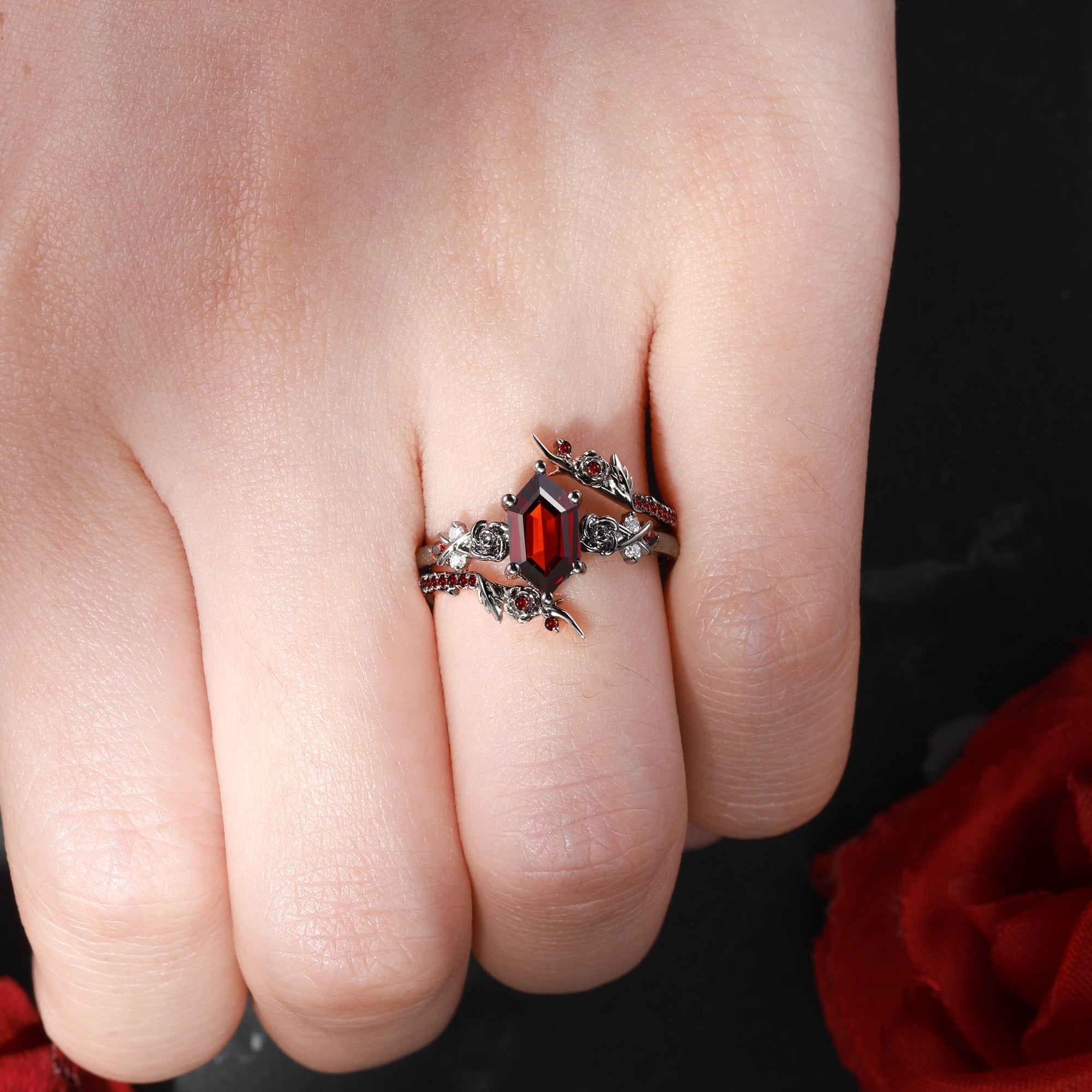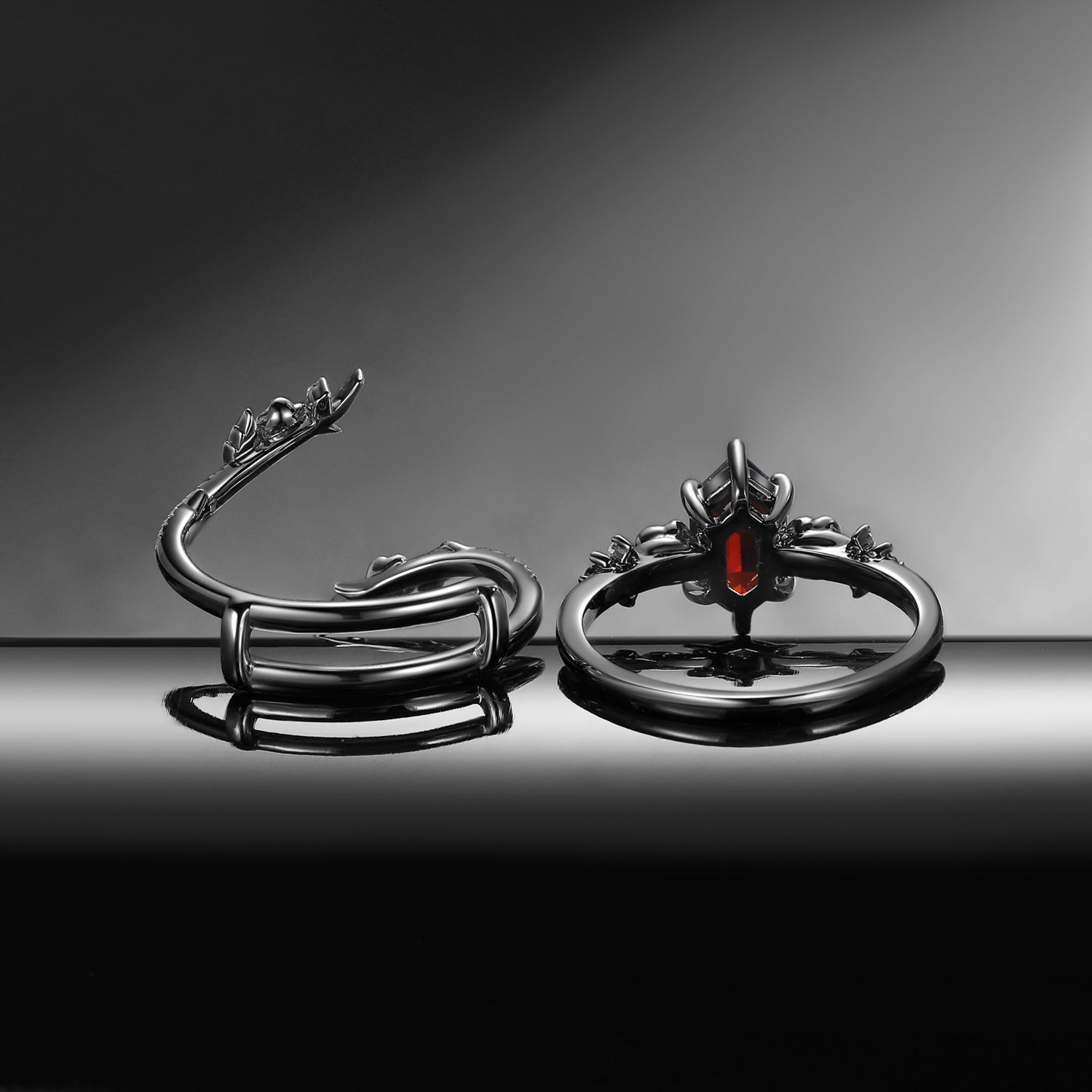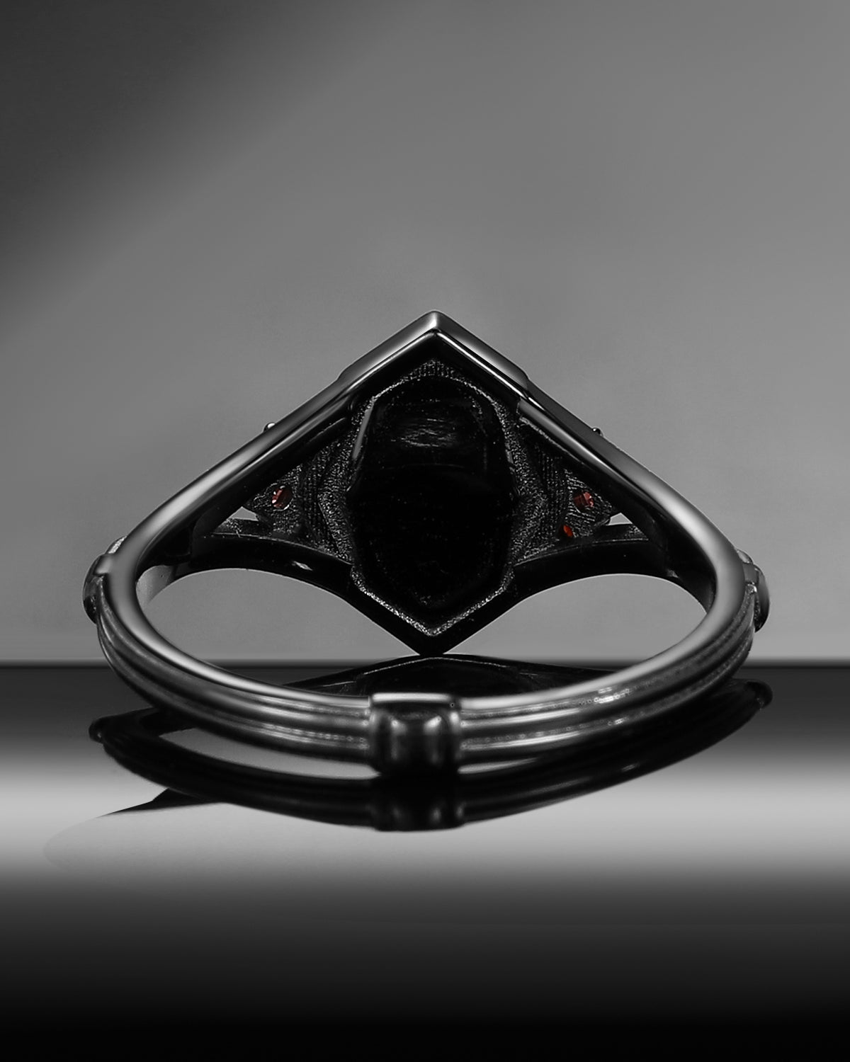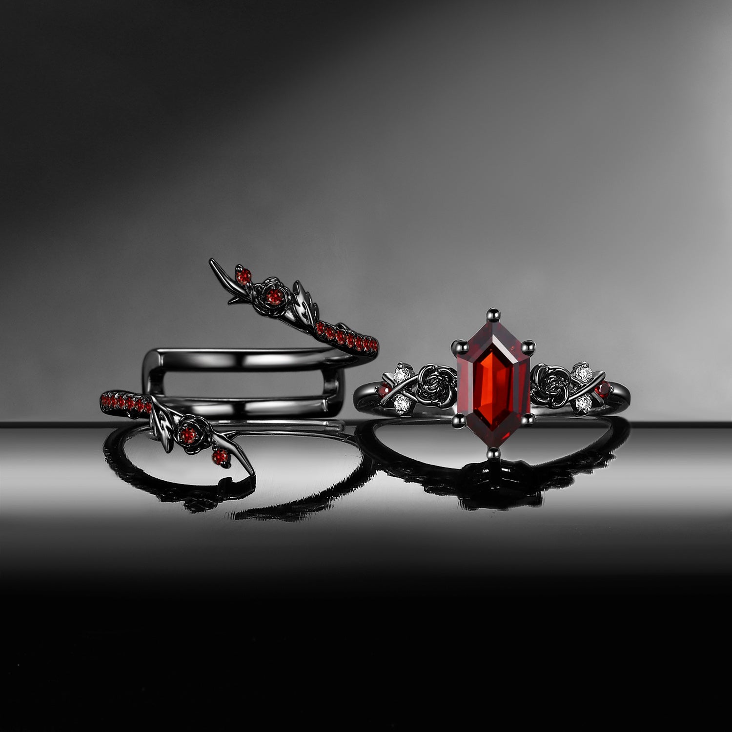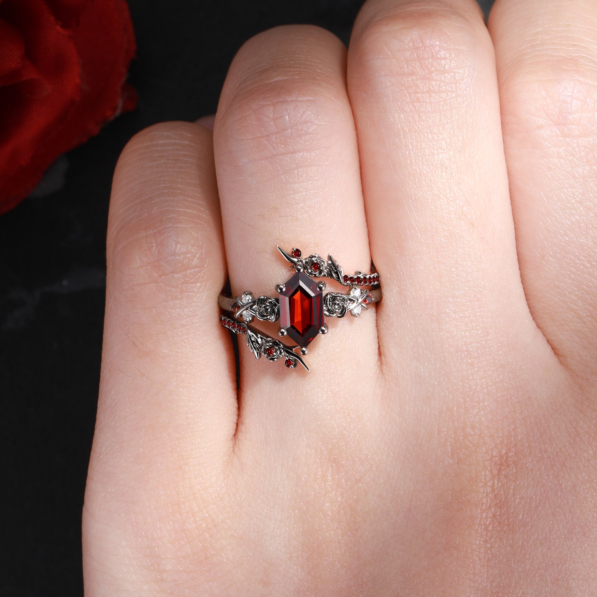 Gothic Crow Inspired Garnet Halloween Black Gold Engagement Ring