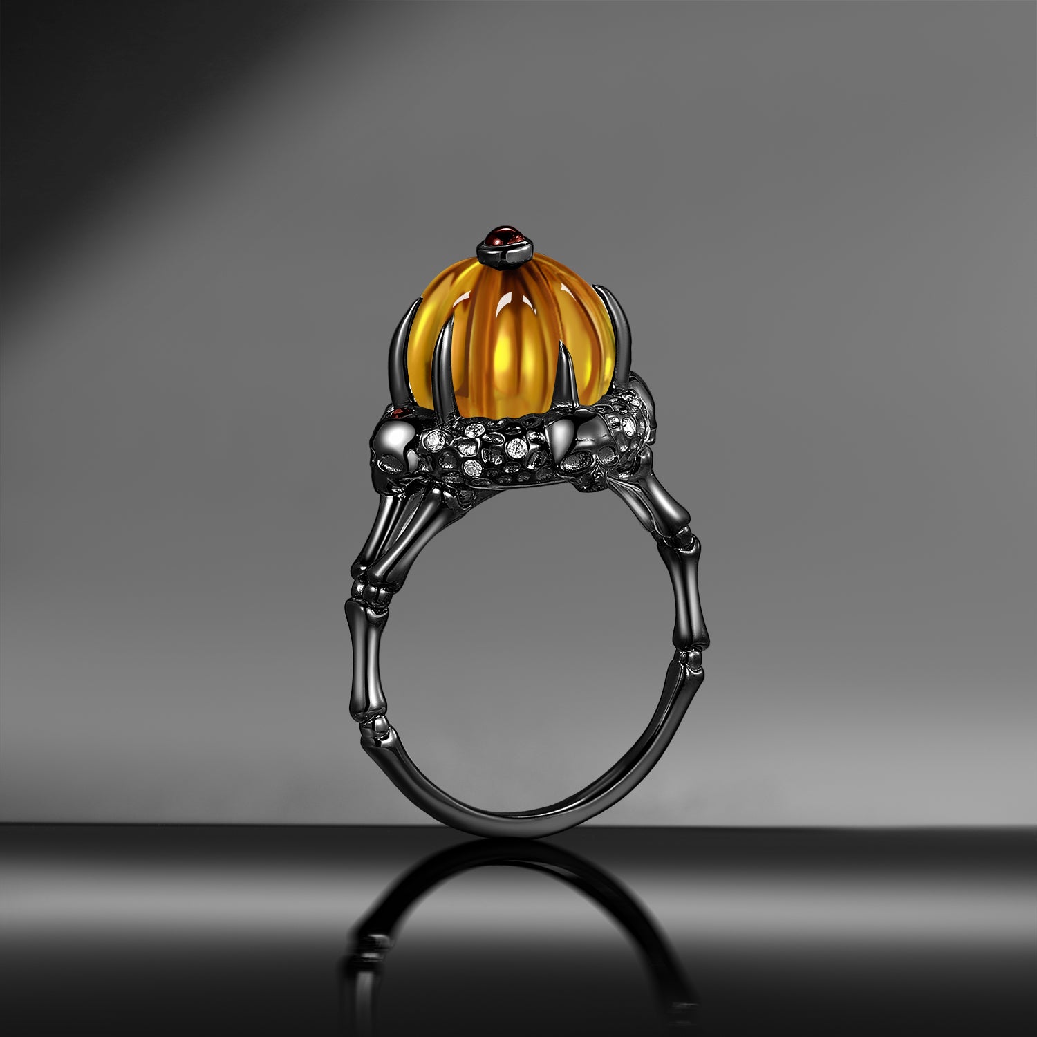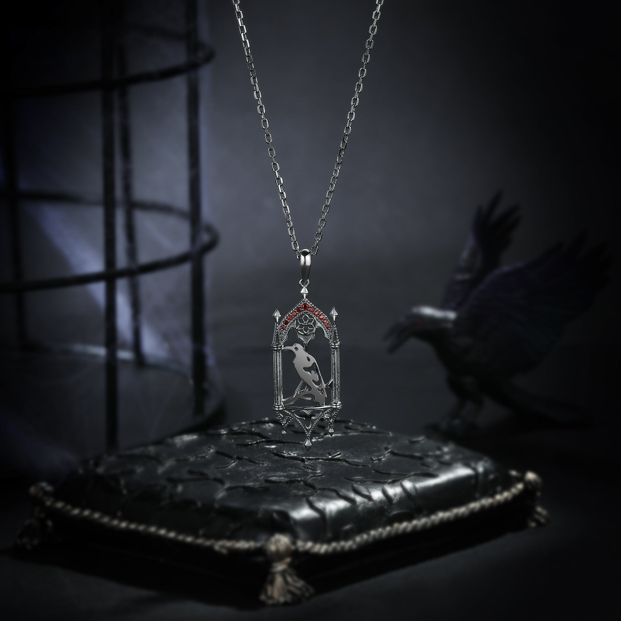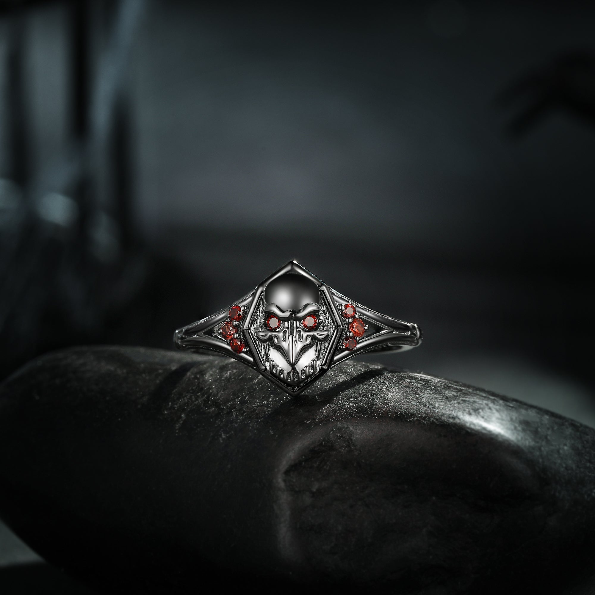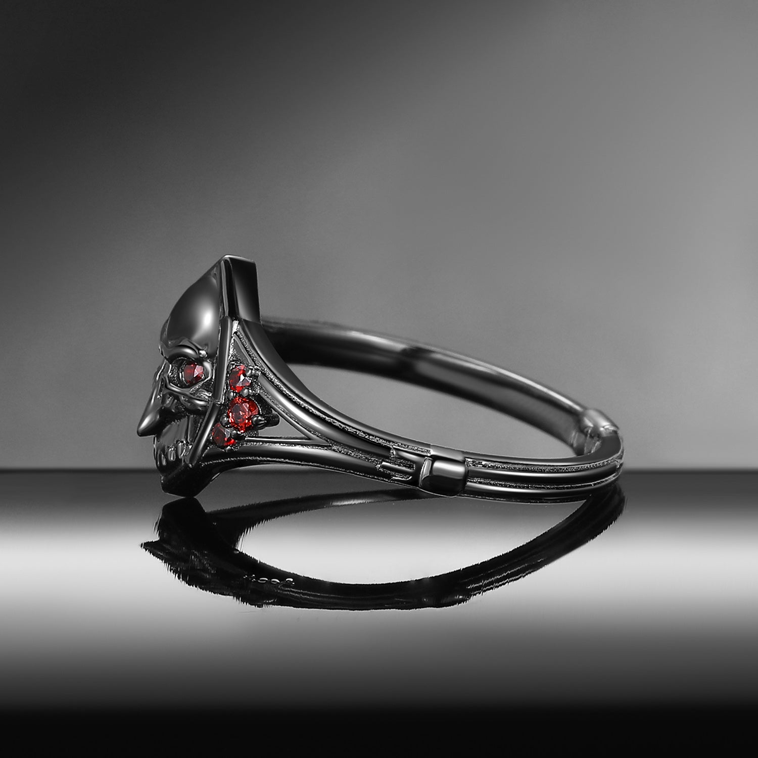 Gothic Crow Inspired Garnet Halloween Black Gold Engagement Ring