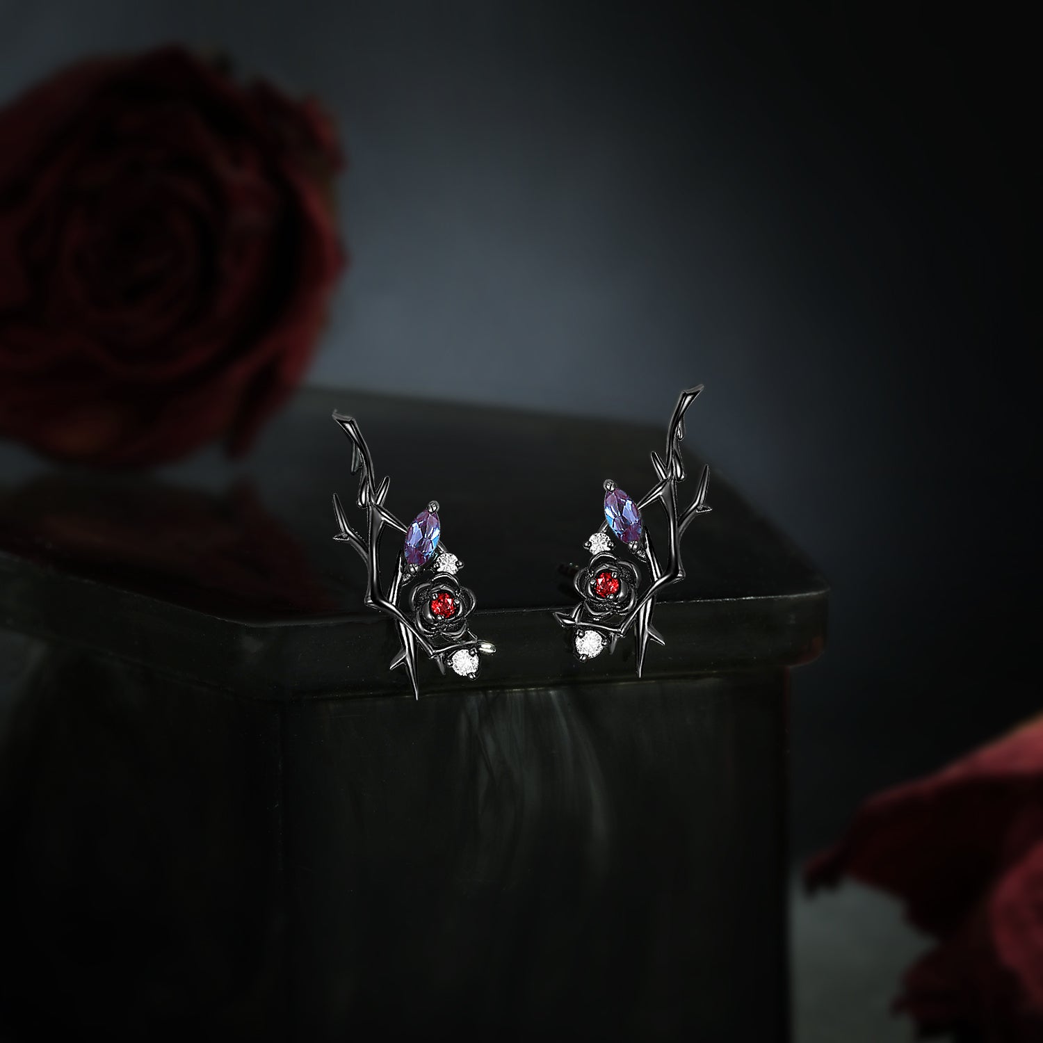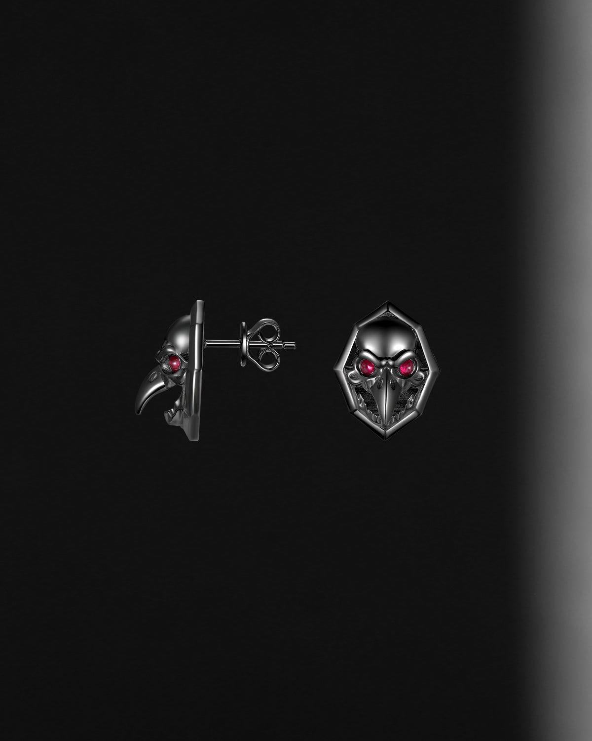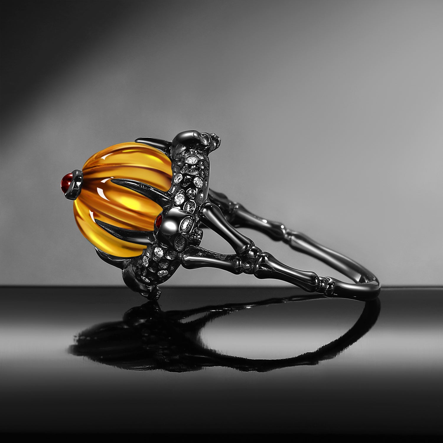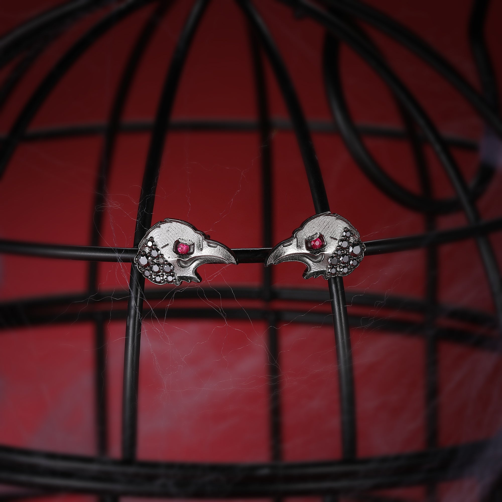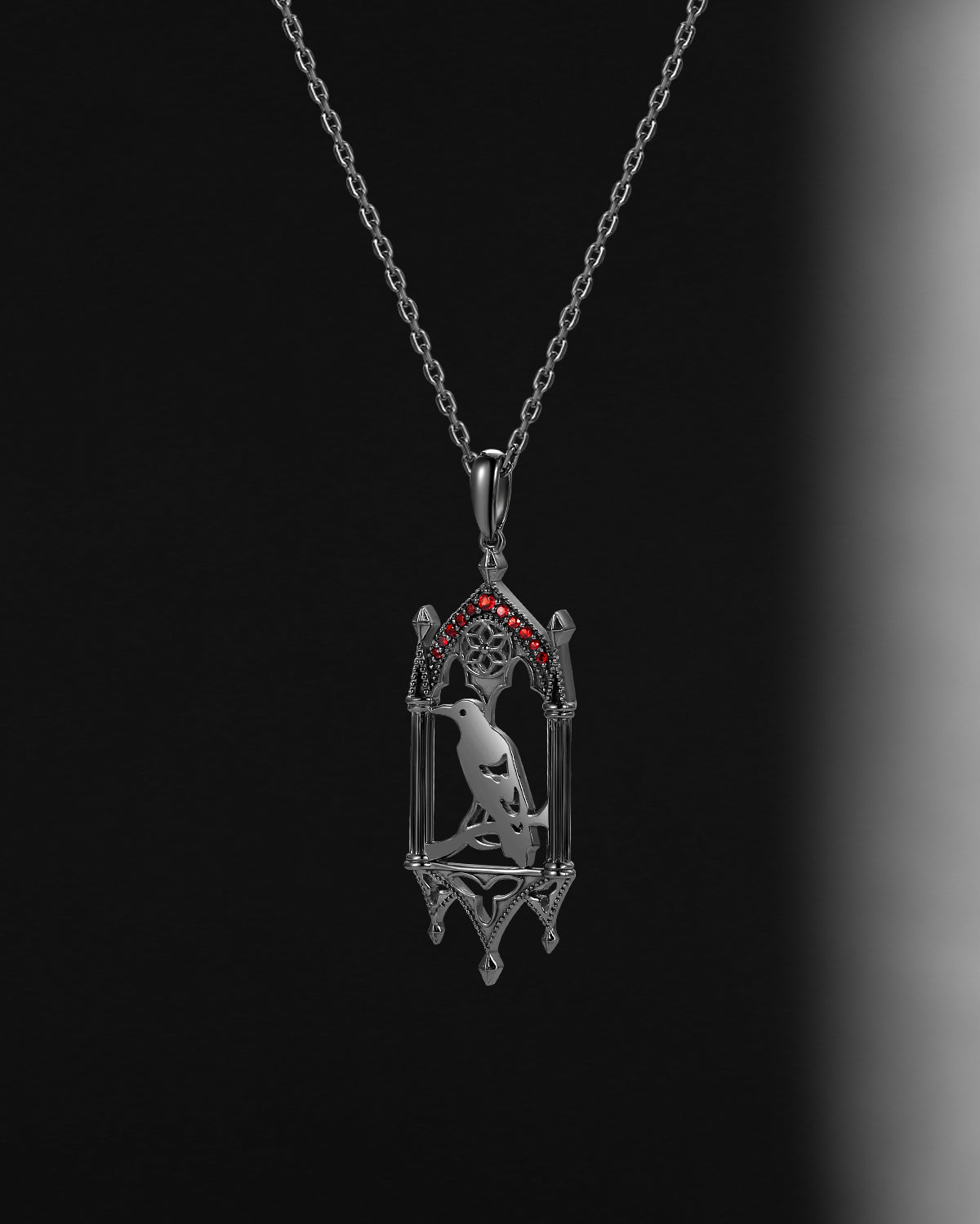 Gothic Crow Inspired Garnet Halloween Black Gold Engagement Ring