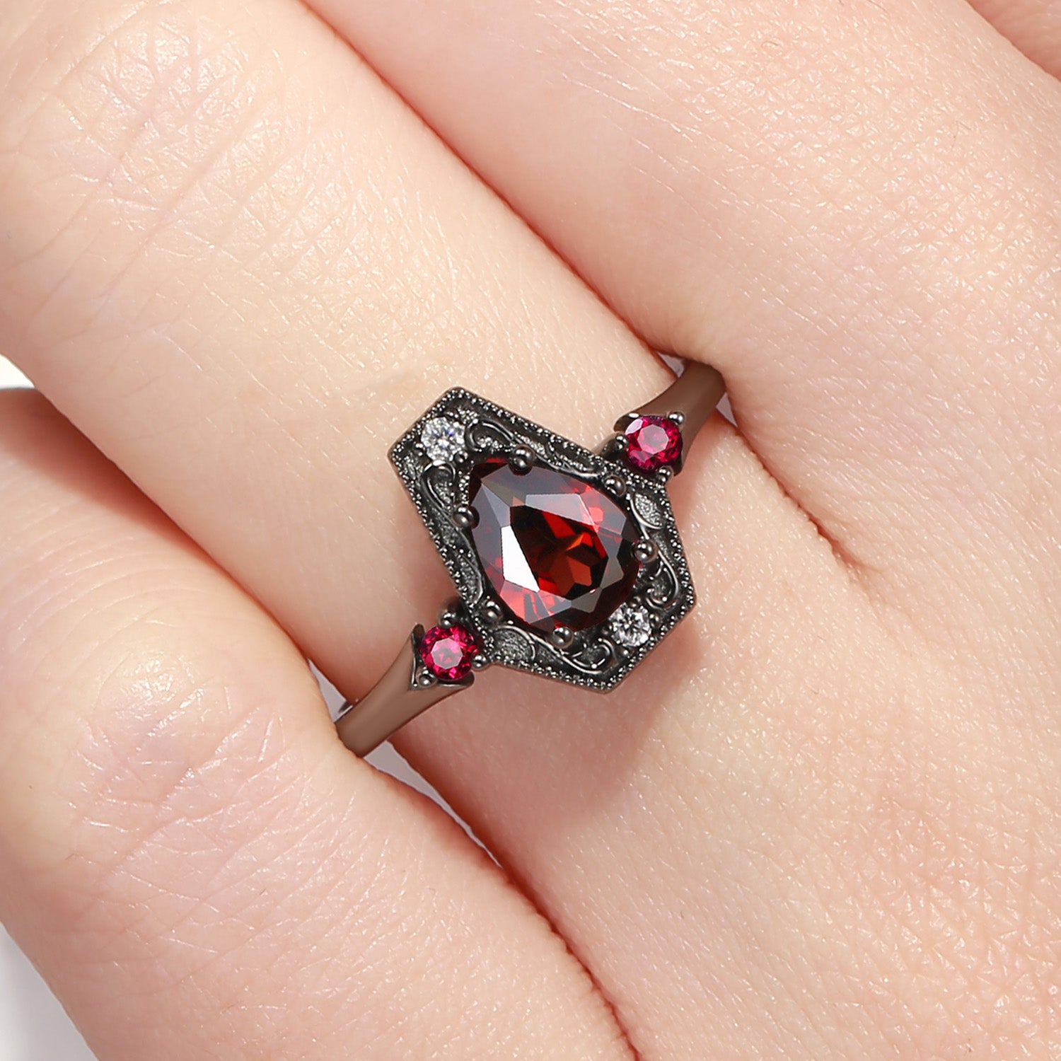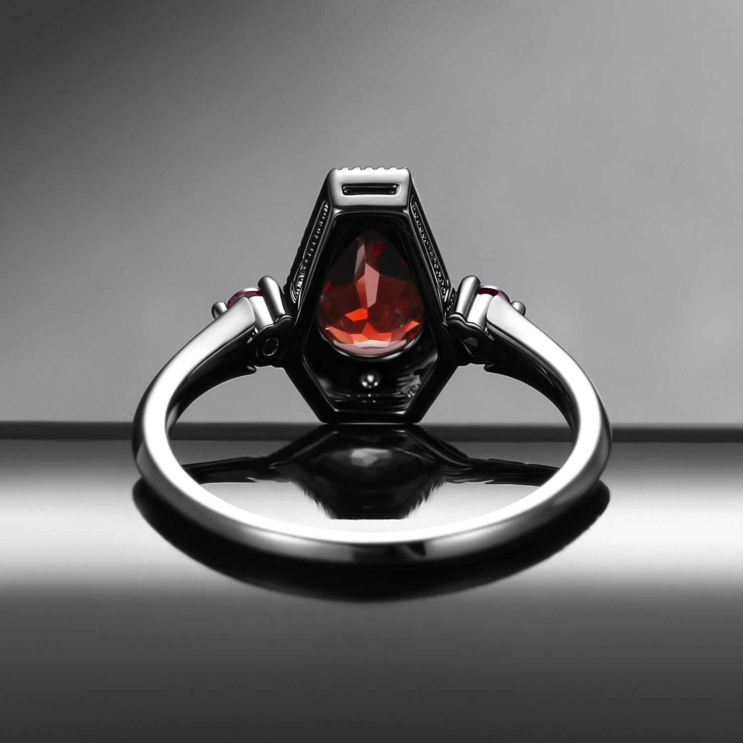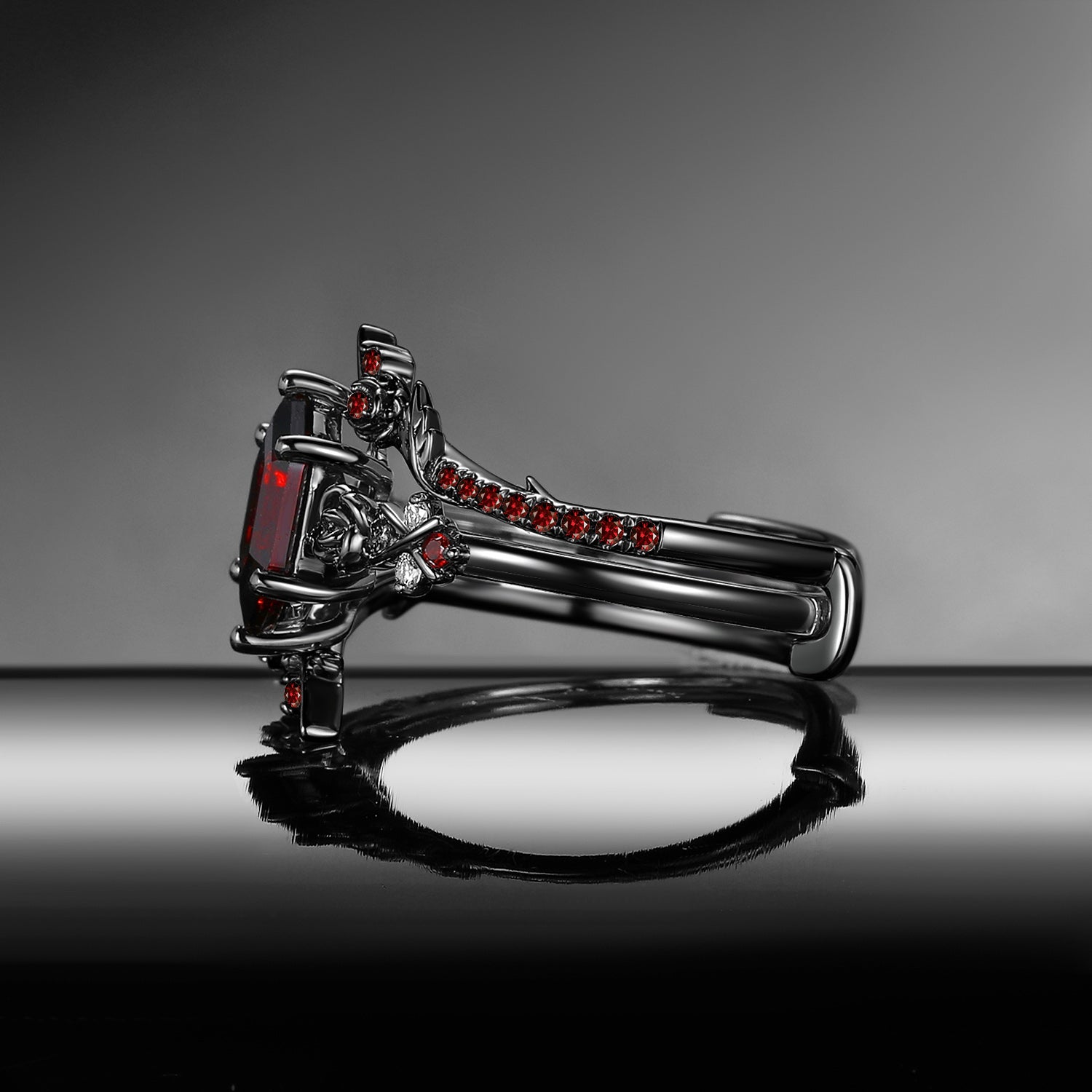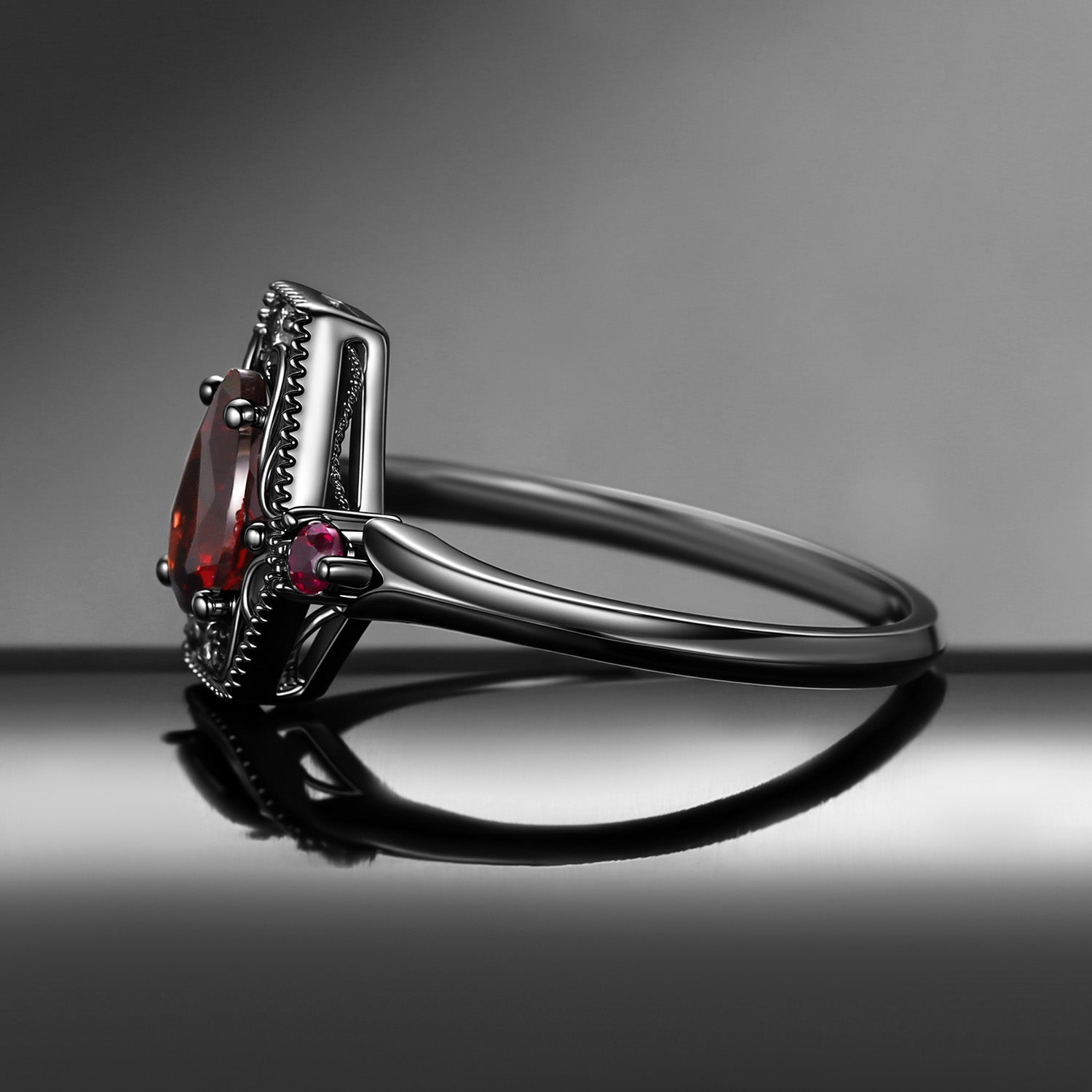 Gothic Pear Cut Garnet Vampire 'Fallen Aegis' Engagement Ring