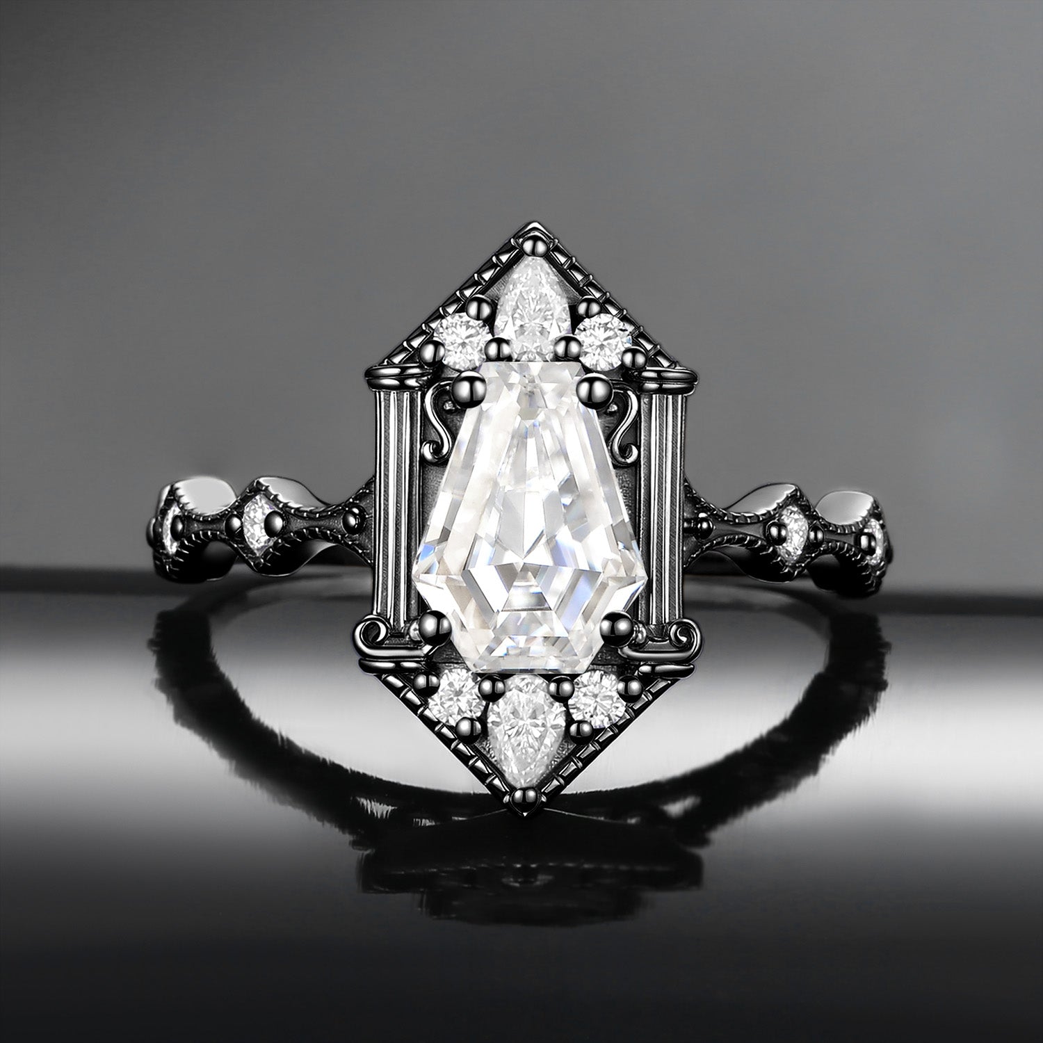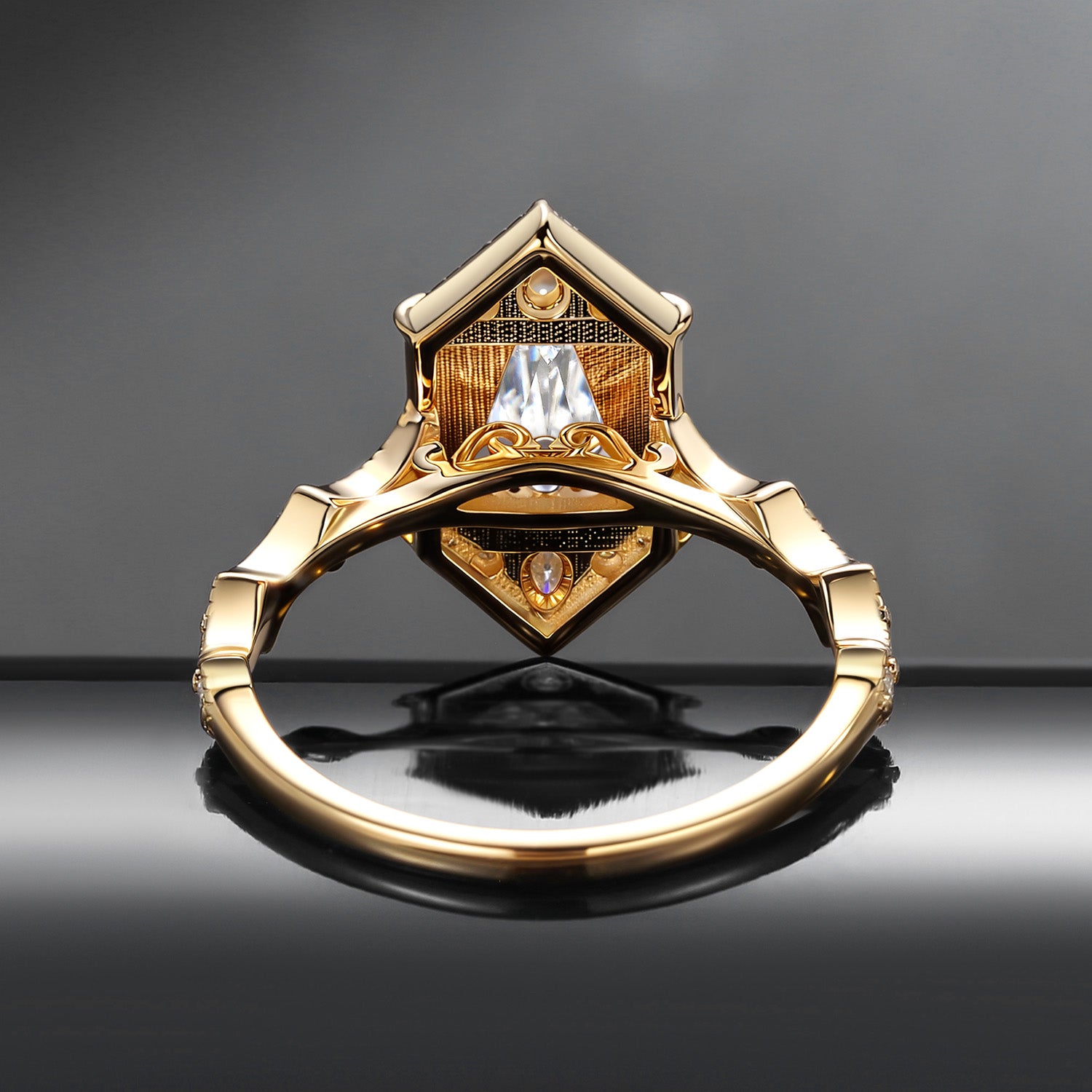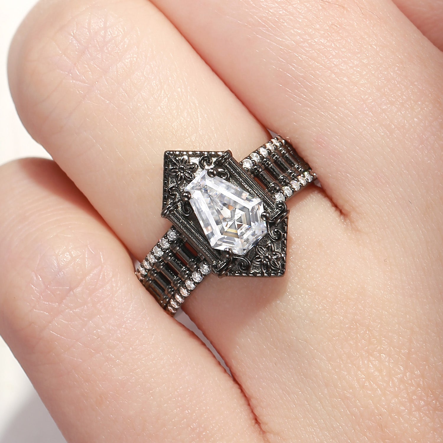 Vintage Inspired Coffin Cut Moissanite 'Fallen Aegis' Art Deco Engagement Ring