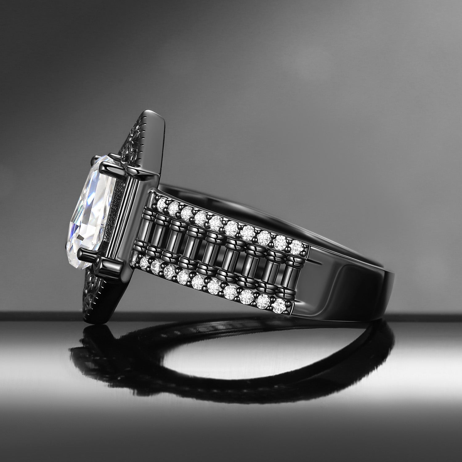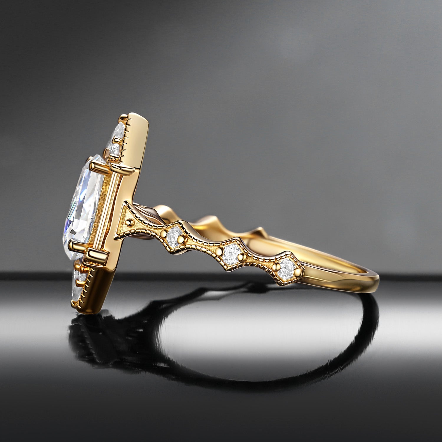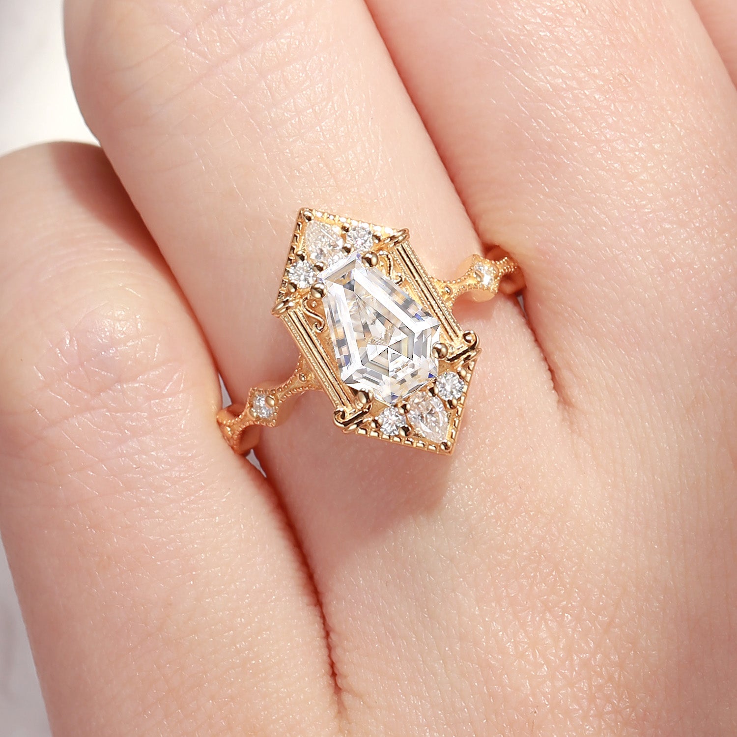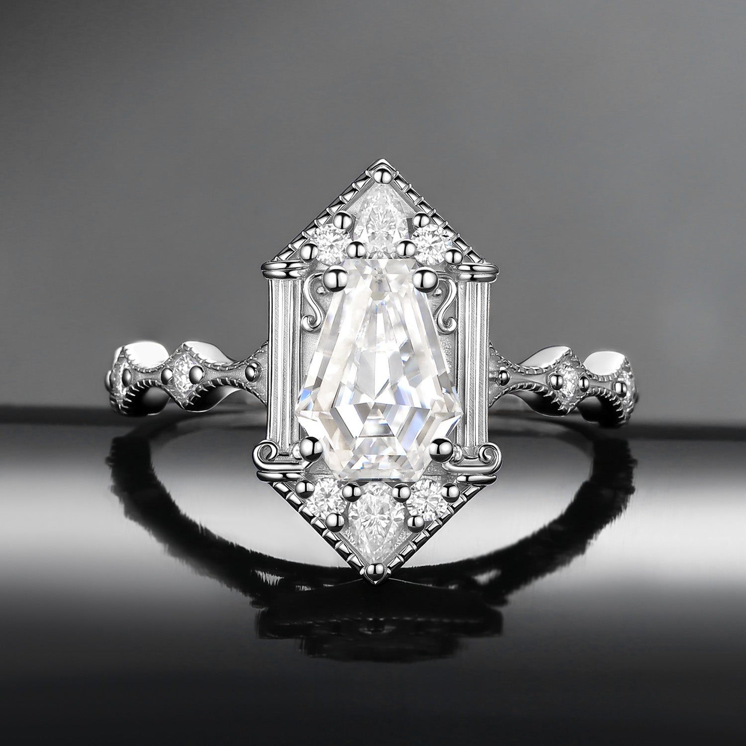 Vintage Inspired Coffin Cut Moissanite 'Fallen Aegis' Art Deco Engagement Ring