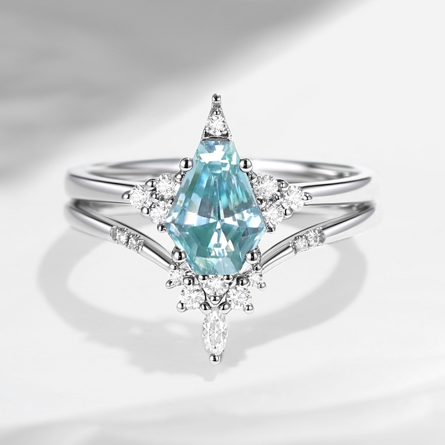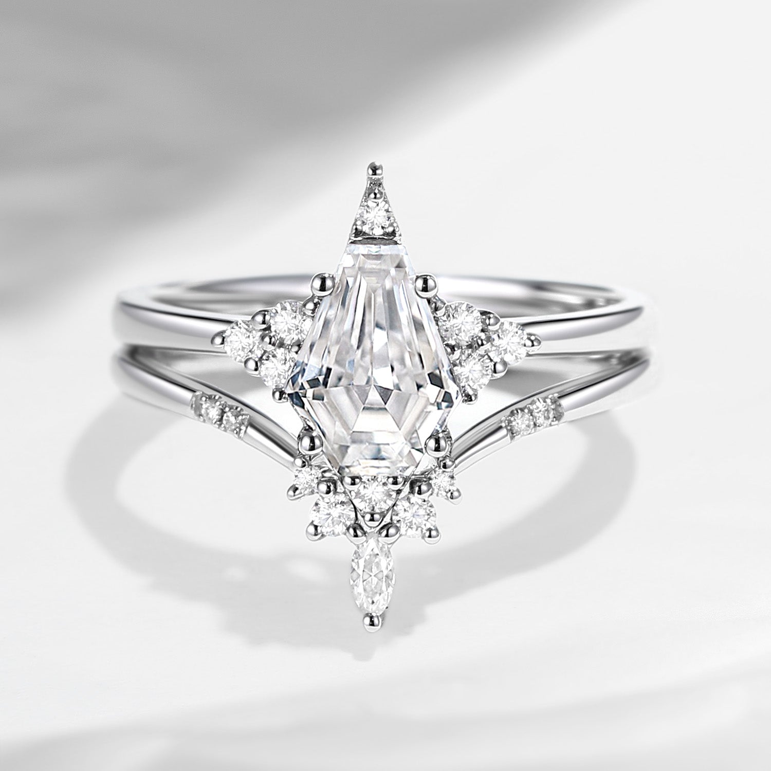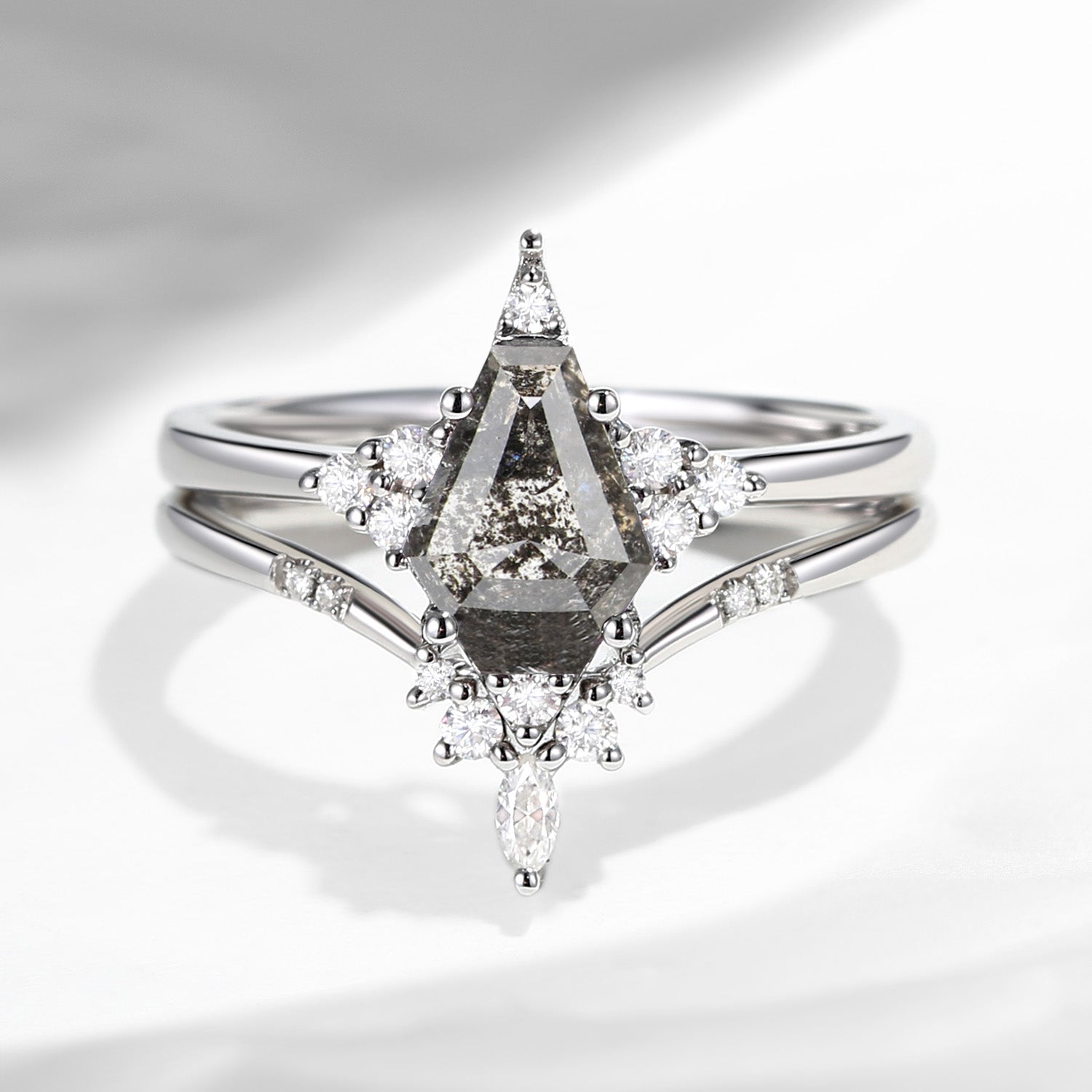 18K Unique Coffin Grey Moissanite Engagement Ring Star Ring Set 2pcs - Coffin Kite