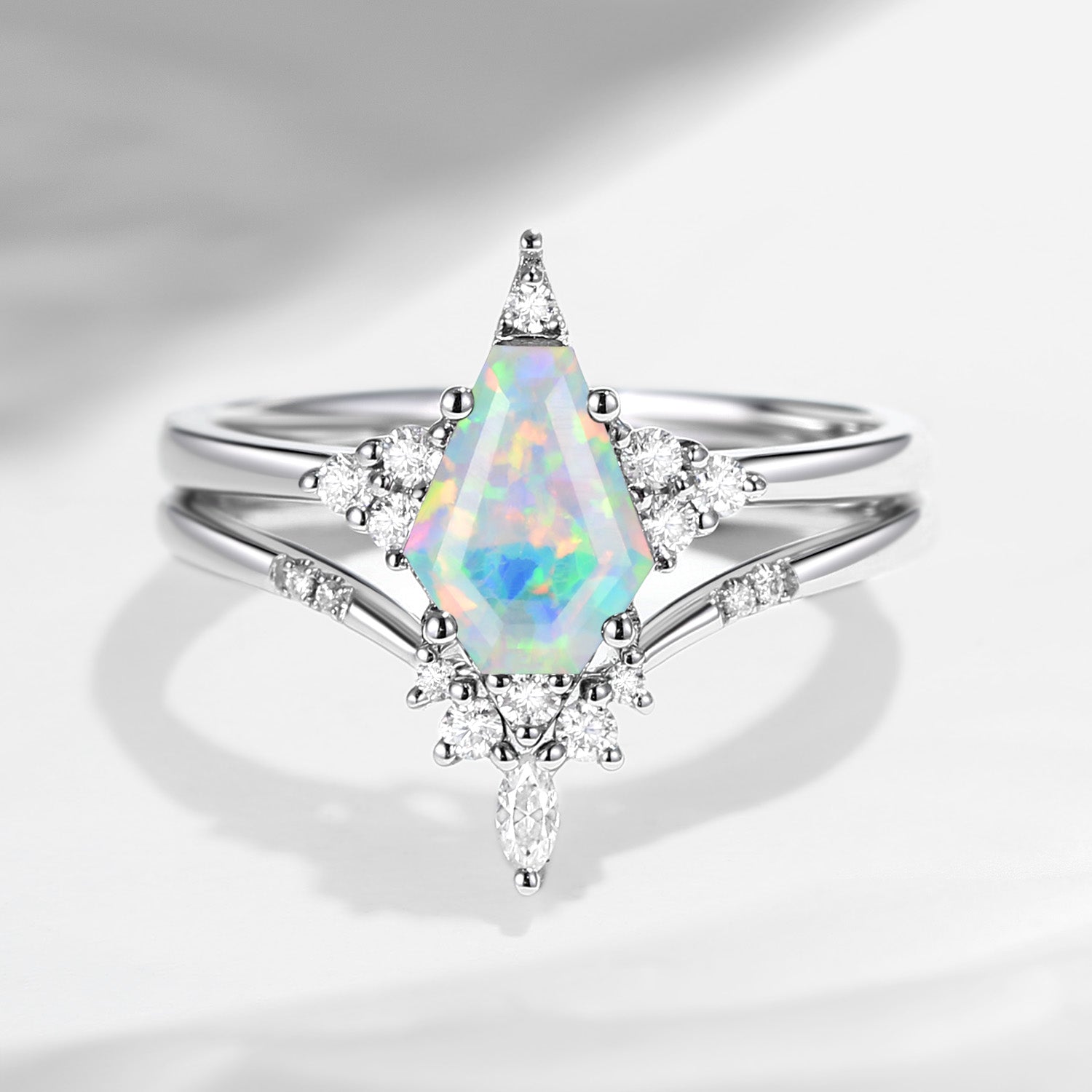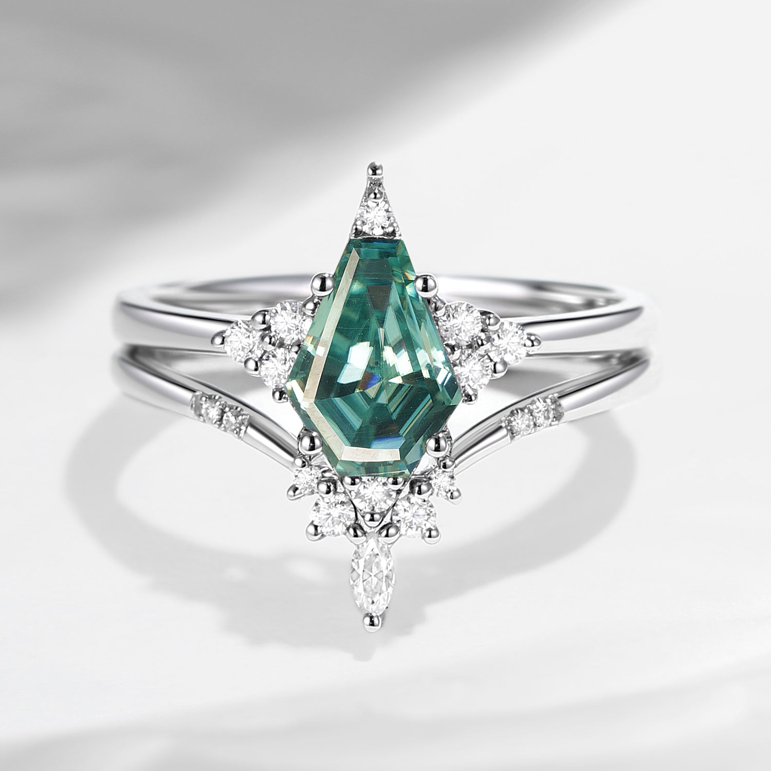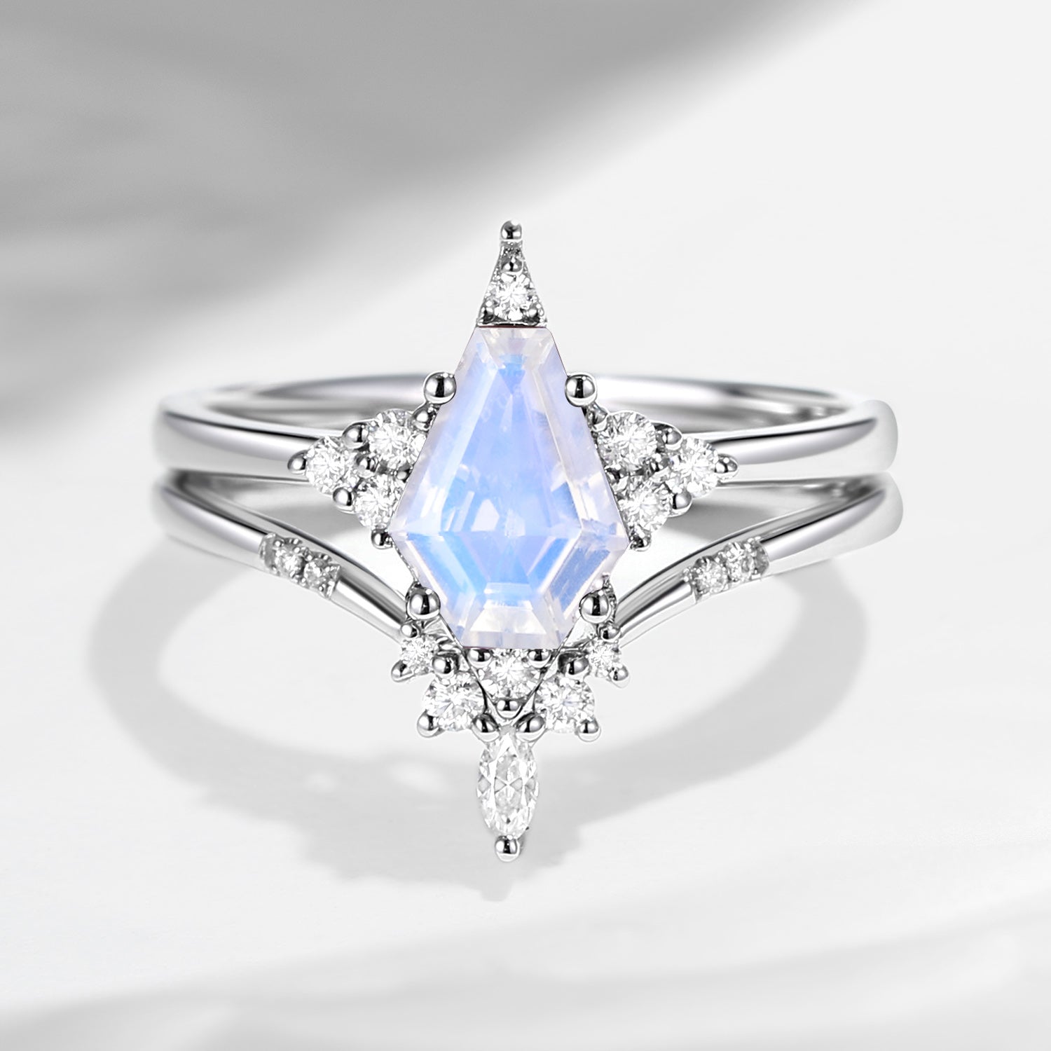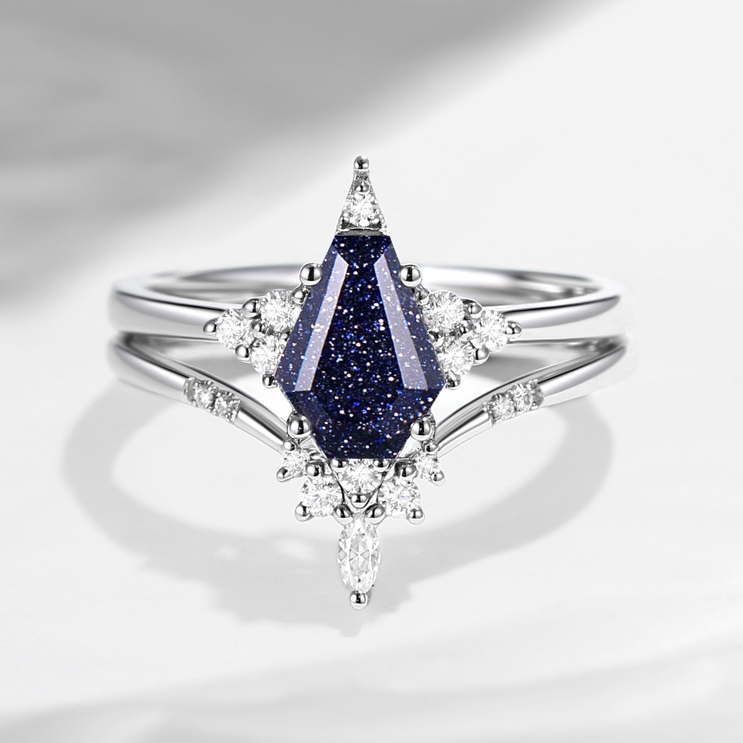 18K Unique Coffin Grey Moissanite Engagement Ring Star Ring Set 2pcs - Coffin Kite
