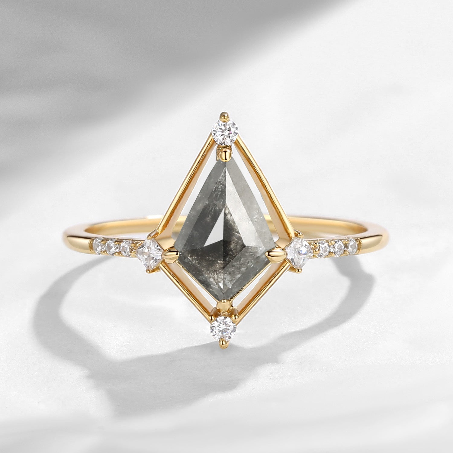 ⟢ Center Stone: Kite Cut Natural Salt And Pepper Diamond, 6*9mm