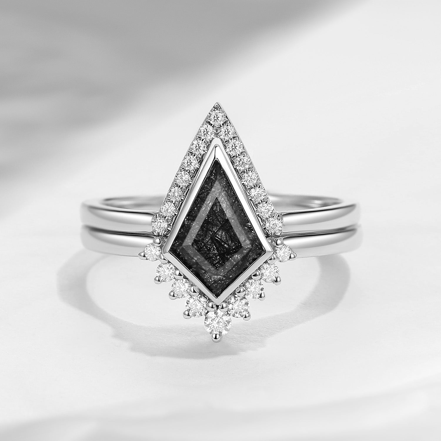 Classic Kite Cut Salt and Pepper Diamond Ring Set 2pcs - Statement