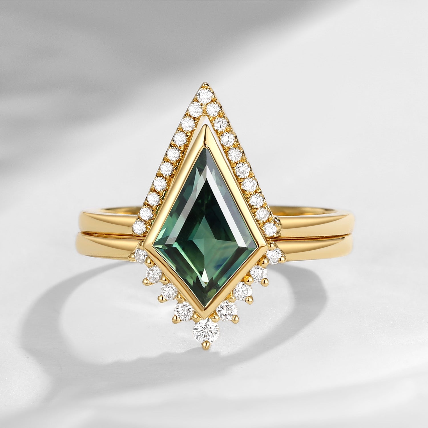 Kite Cut Salt and Pepper Diamond Ring Set 2pcs Unique Kite Cut Diamond Engagement Ring
