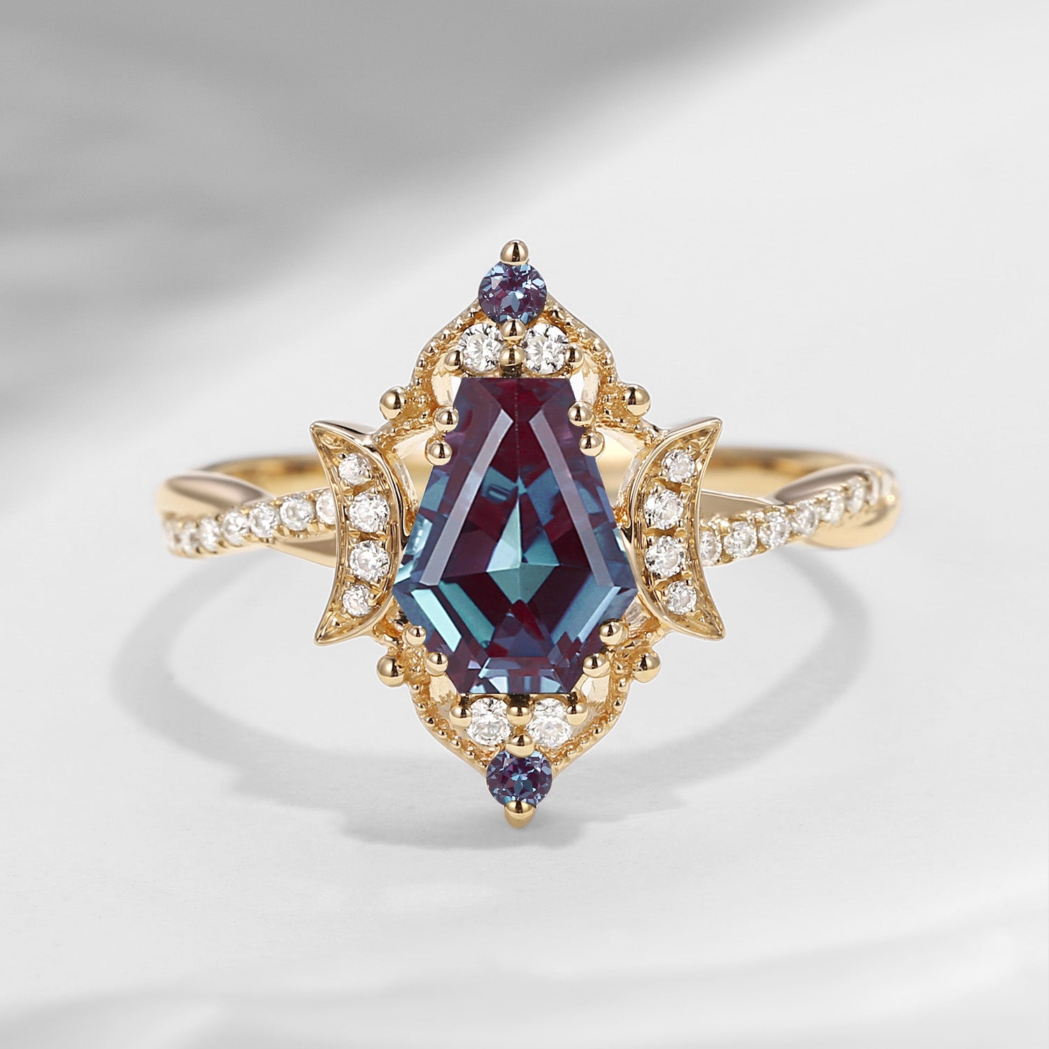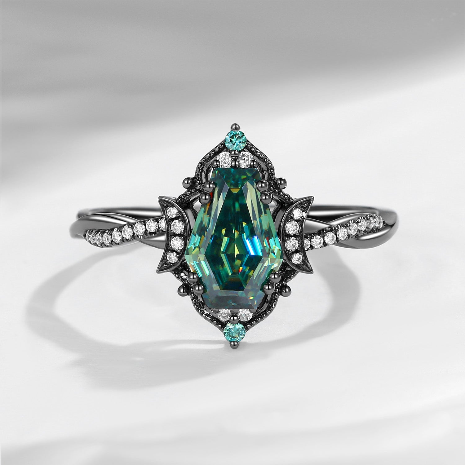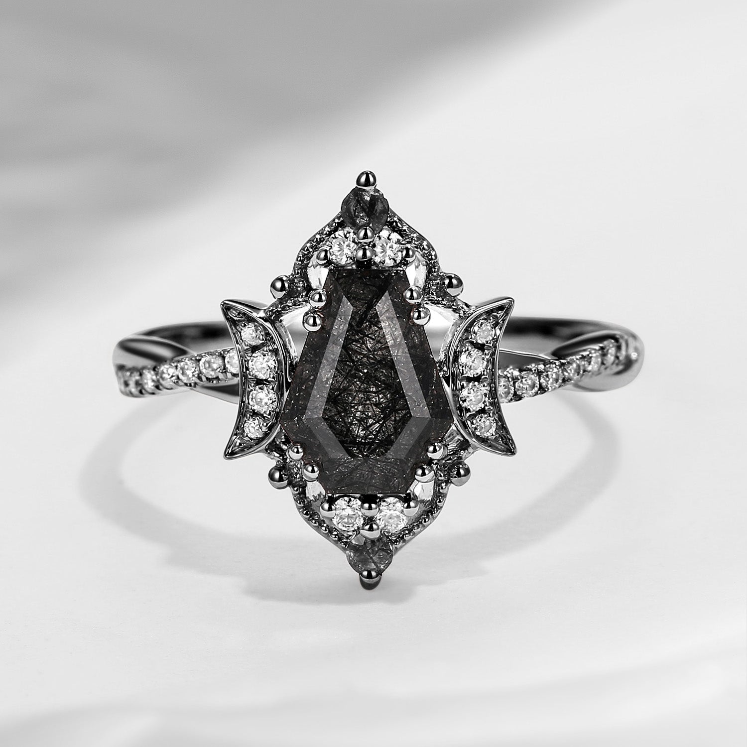 Crescent Moon | Coffin Cut Salt And Pepper Diamond Twisted Engagement Ring
