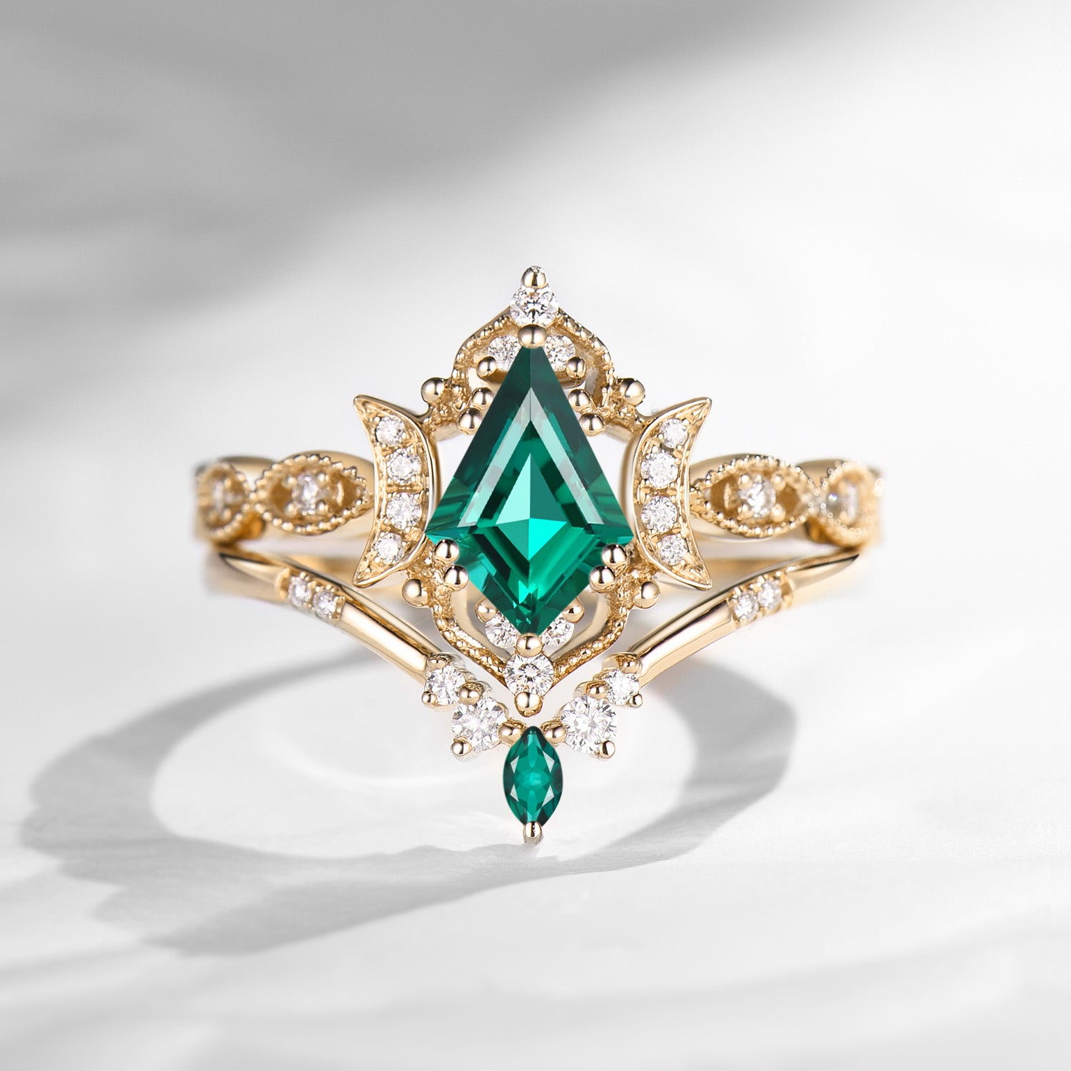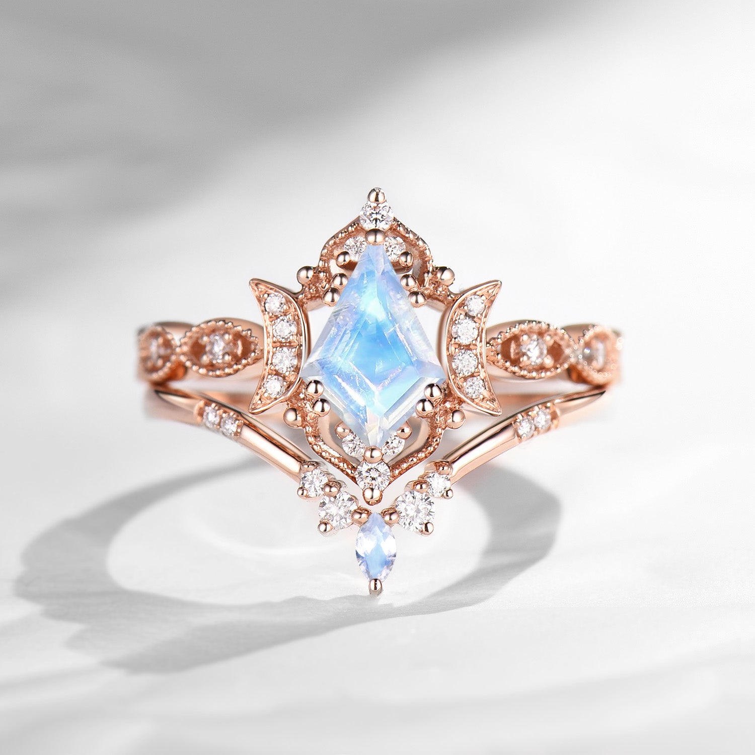 • Design - Featuring a delicate milgrain setting with two crescent moons embracing a center kite, with a matching band to add some sparkle and moonlight to your Starland.