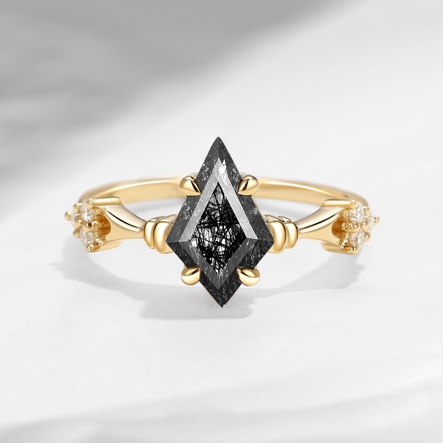 In Stock | Vintage Inspired Kite Cut Black Rutilated Quartz Engagement Ring