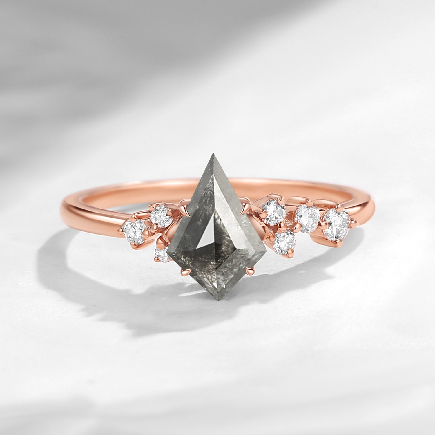 Kite Shaped Salt And Pepper Diamond Cluster Engagement Ring