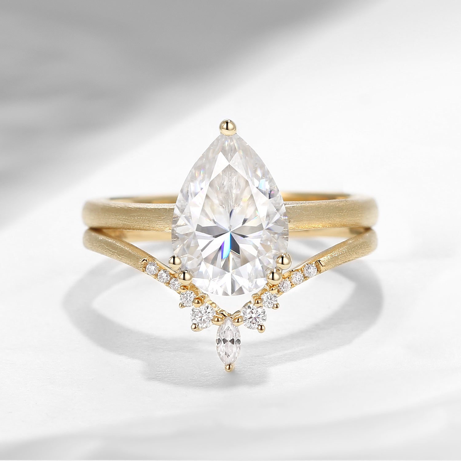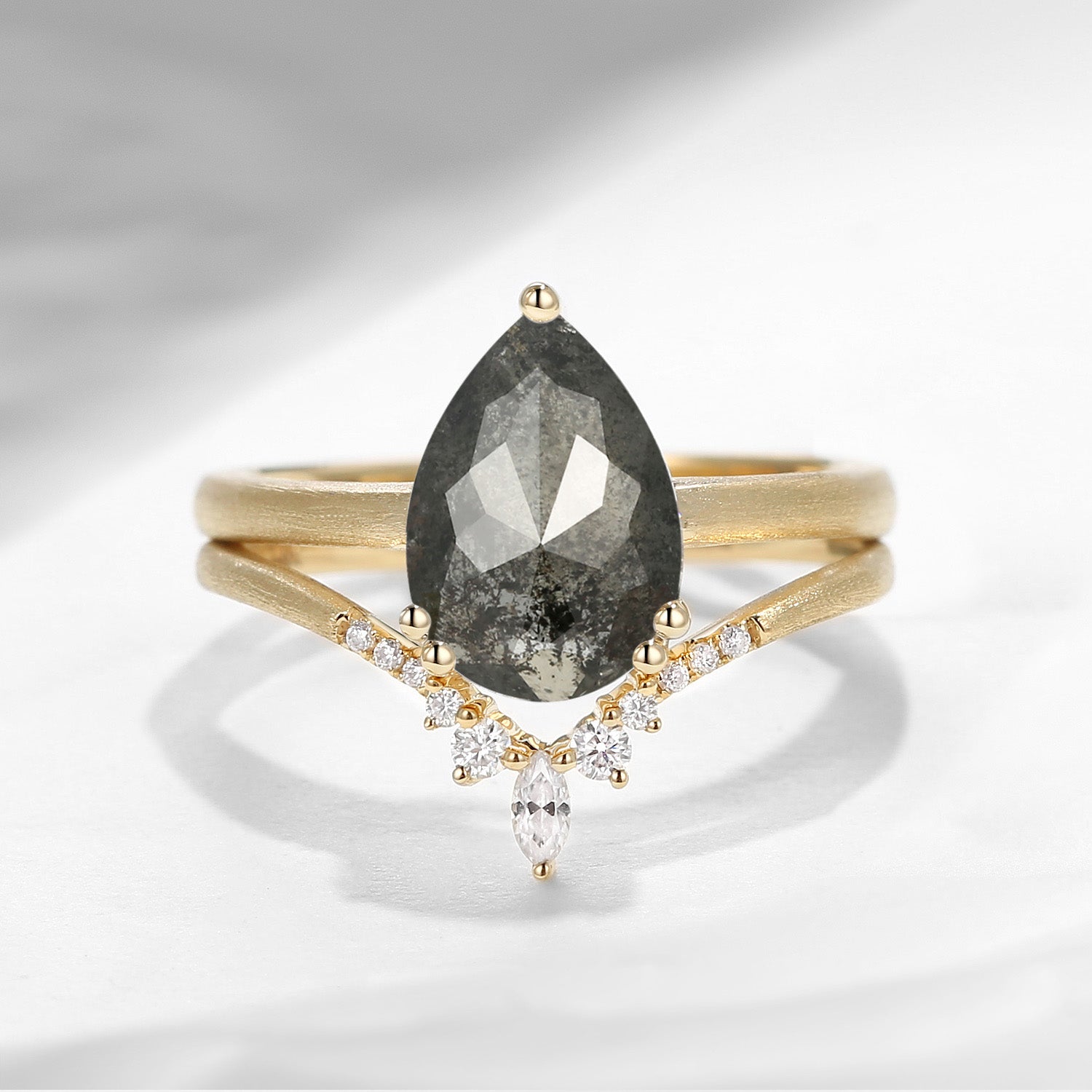 Textured Pear Shaped Salt And Pepper Diamond Ring Bridal Set 2pcs