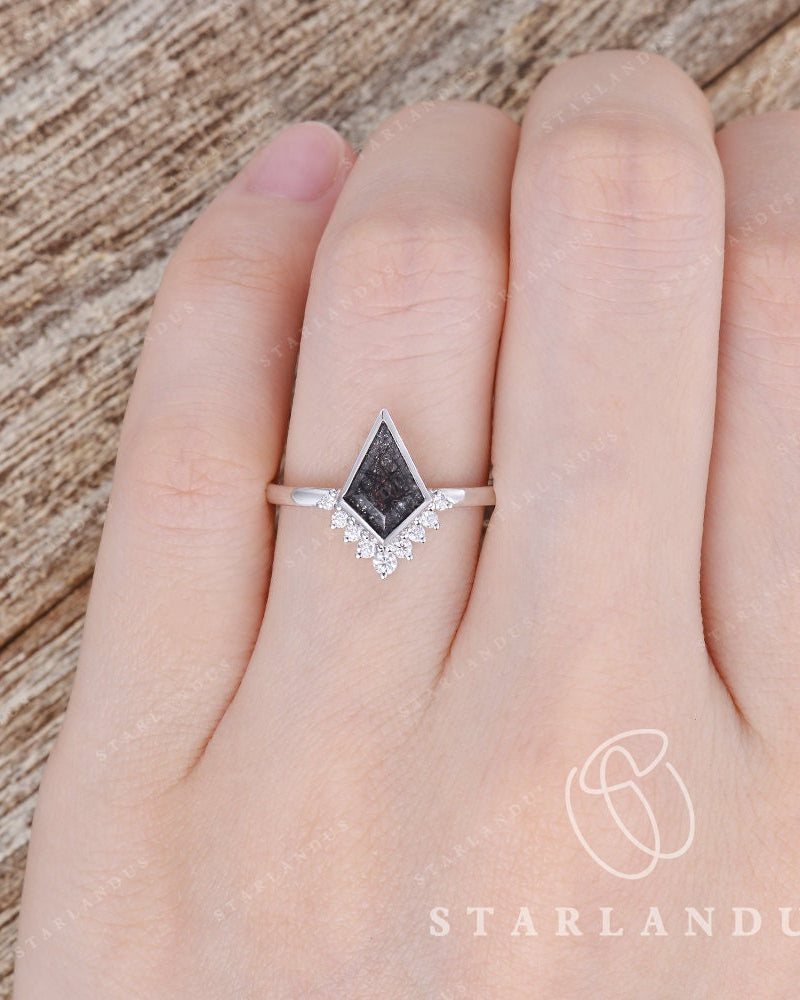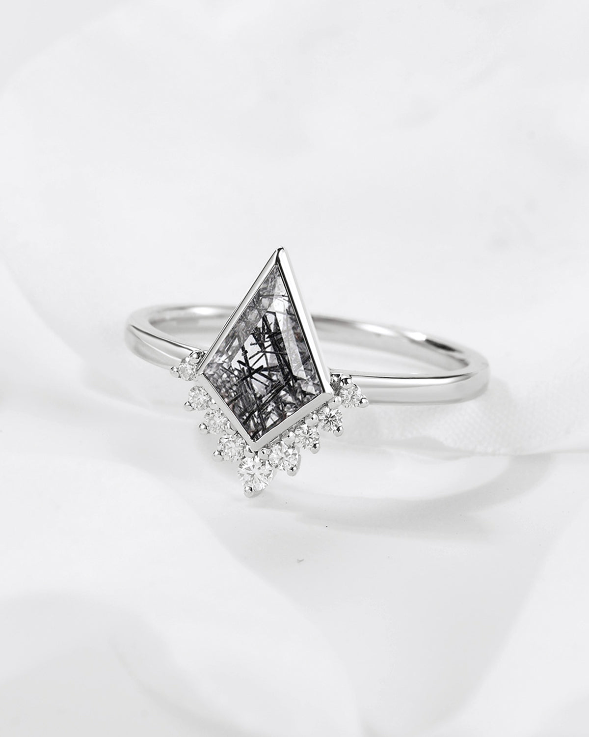 Unique Kite Shaped Black Rutilated Quartz Engagement Ring - Fly To Love
