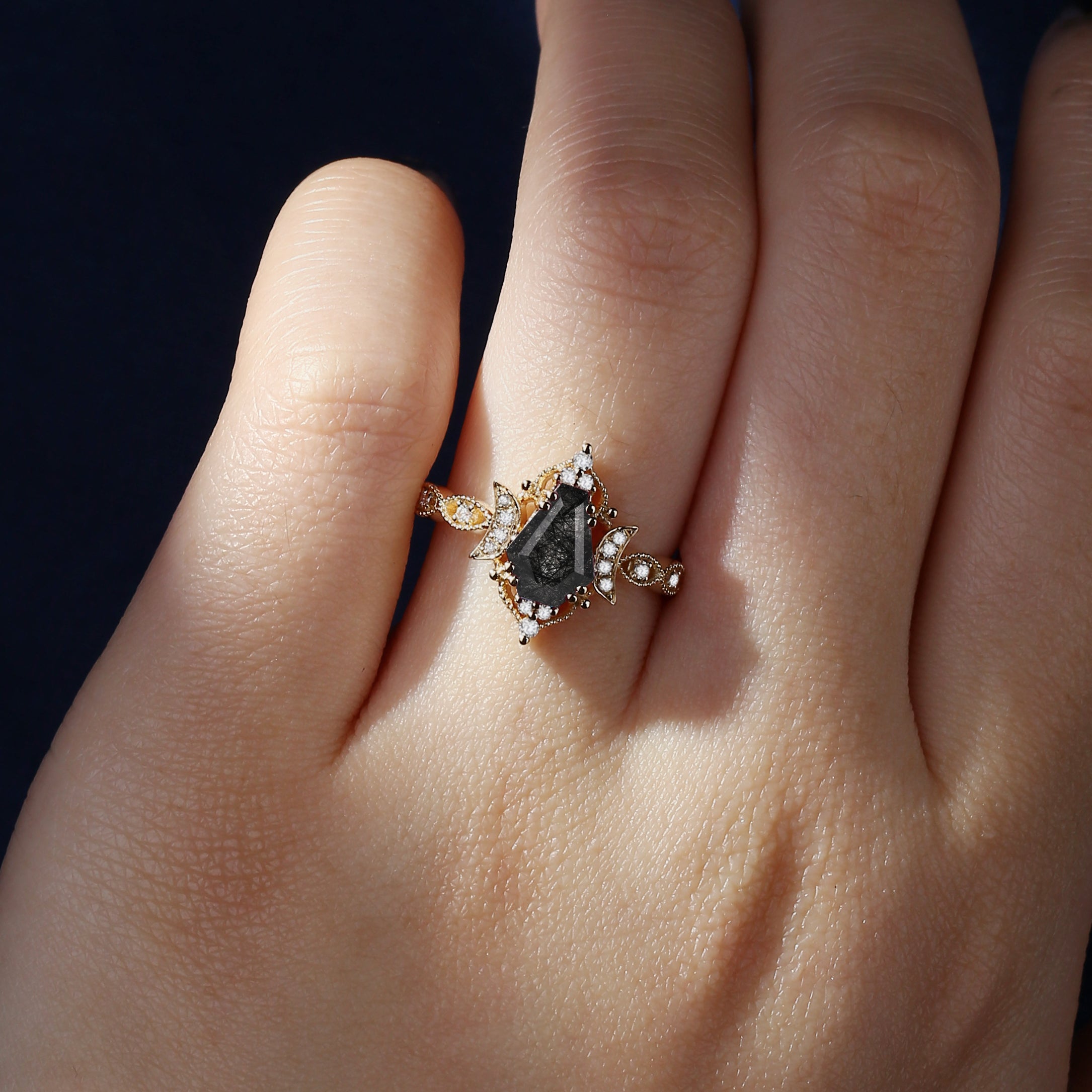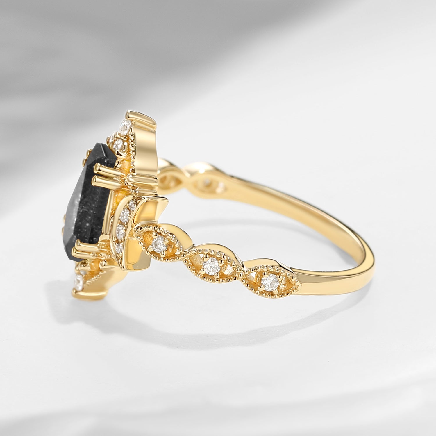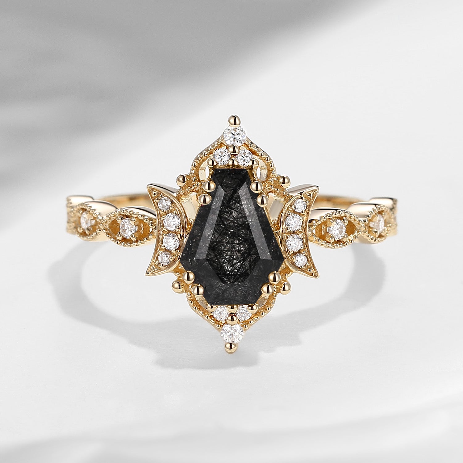 Crescent Moon | Coffin Cut Black Rutilated Quartz Ring Crystal Engagement Ring Unique Engagement Ring