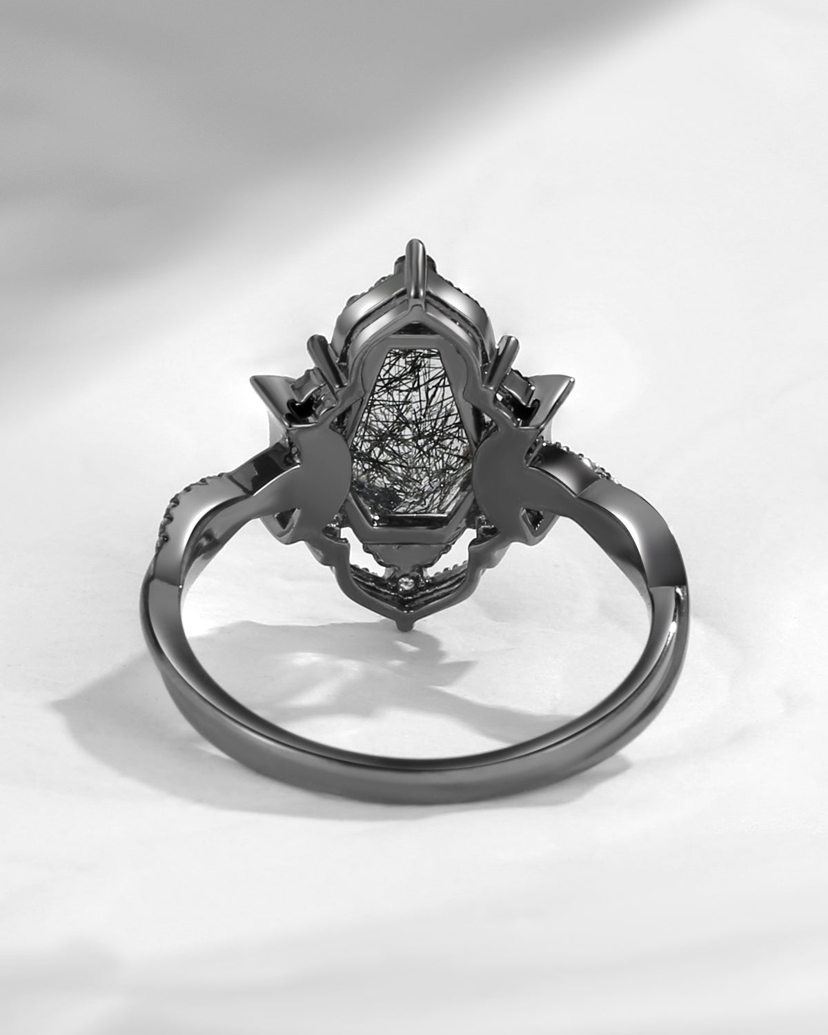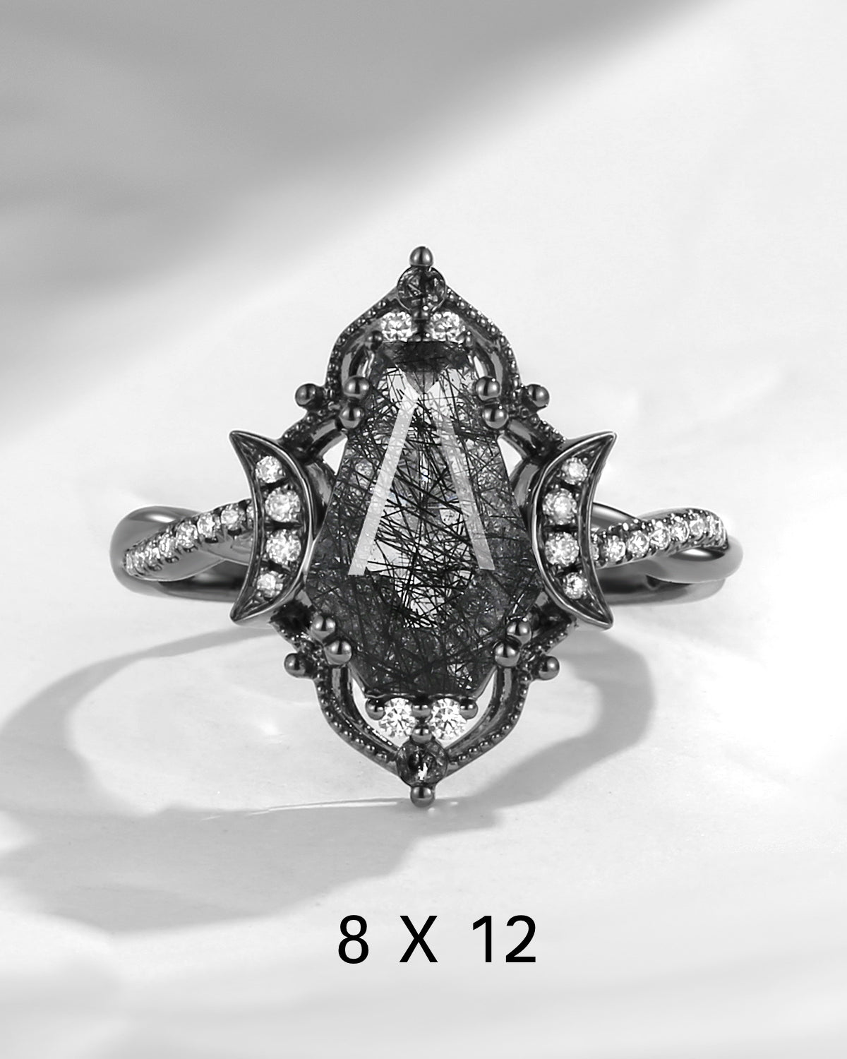 Crescent Moon | Vintage Coffin Black Rutilated Quartz Engagement Ring Jacket 2pcs - Guardian Angel