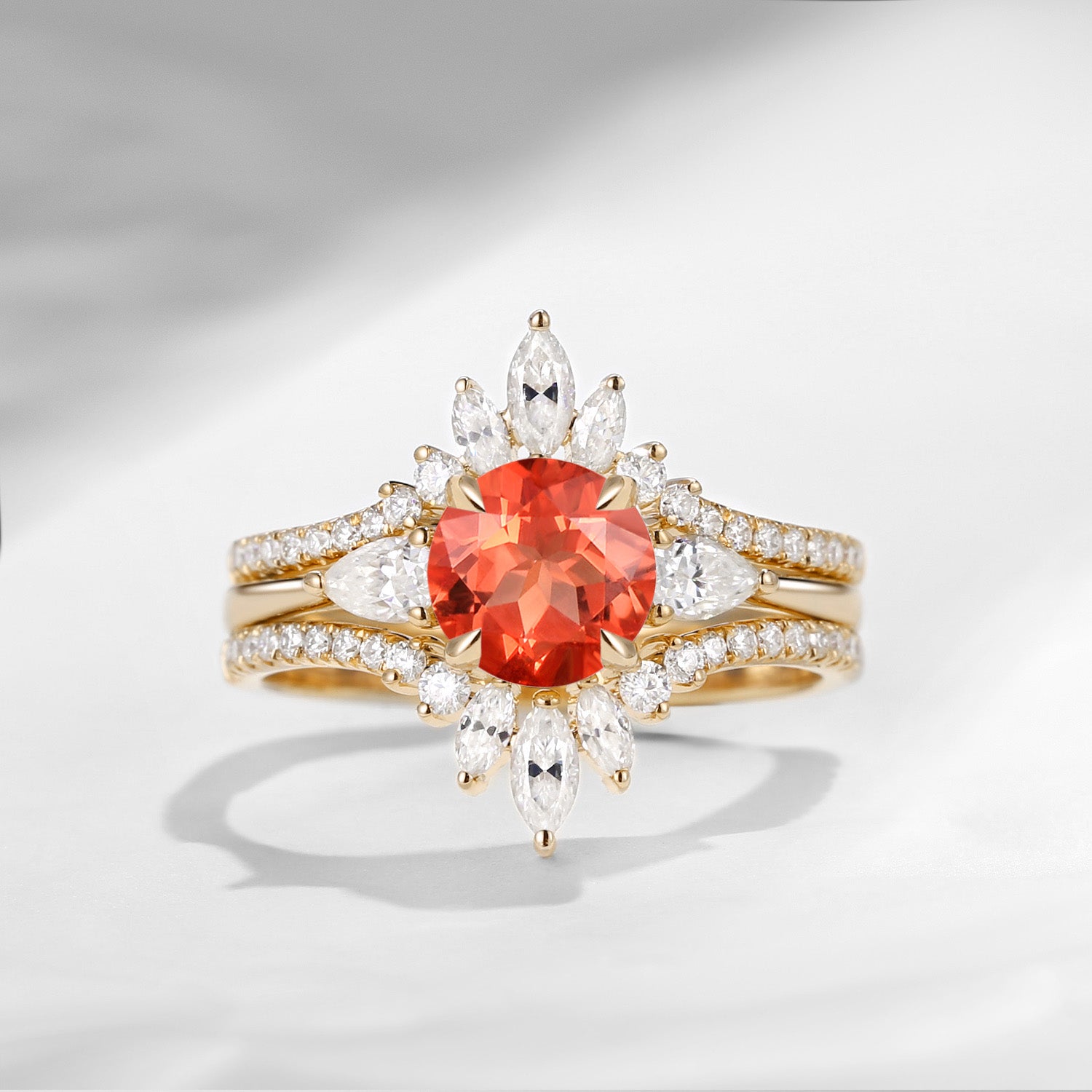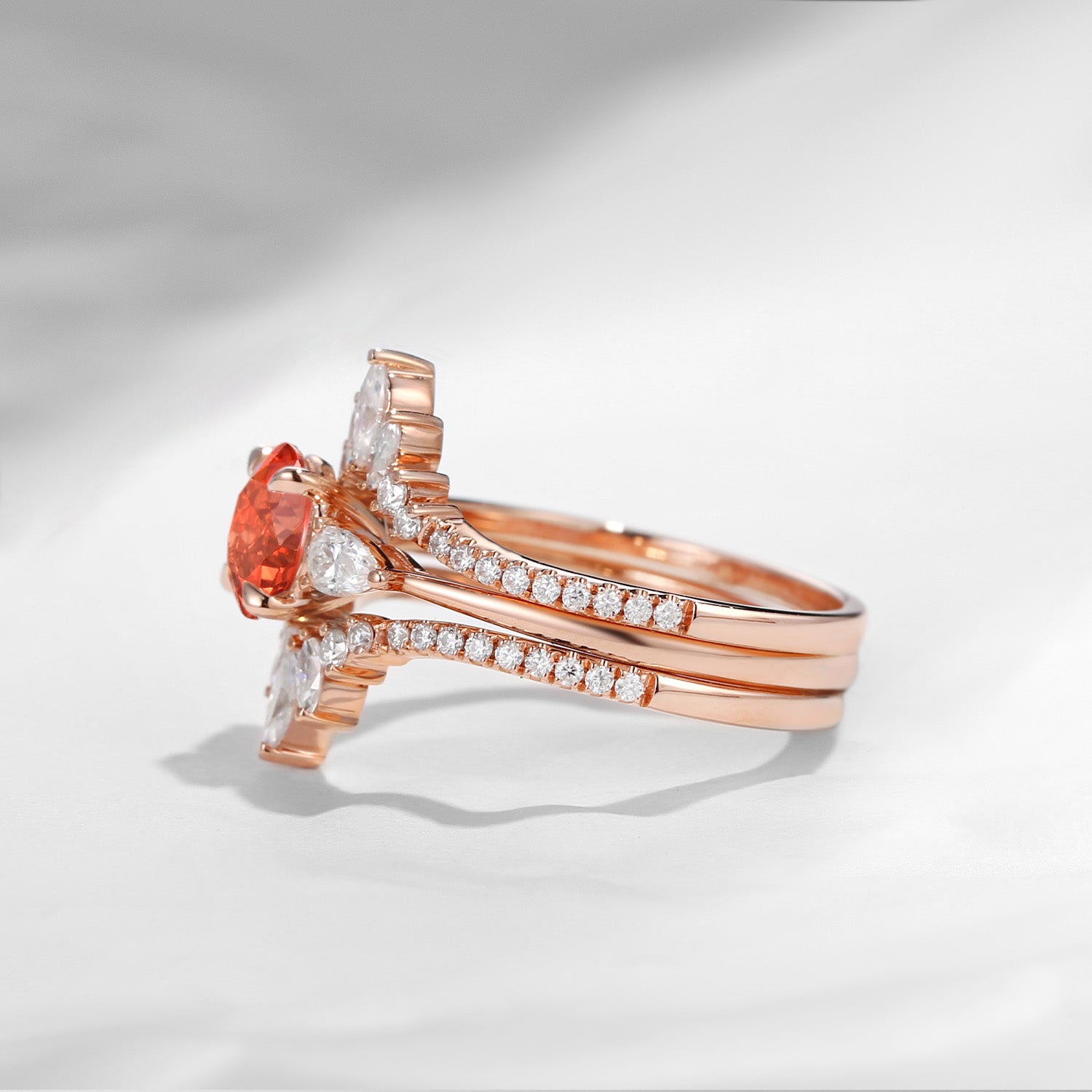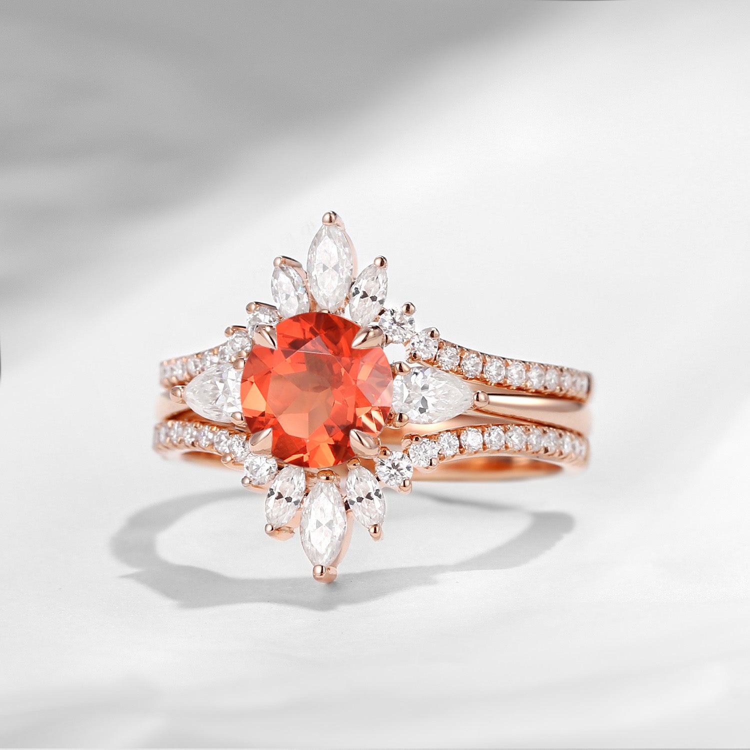 Sunstone Bridal Ring Set 3pcs Cluster Engagement Ring Set Marquise Wing Enhancer Antique Chevron Three Stones Pear Tear
