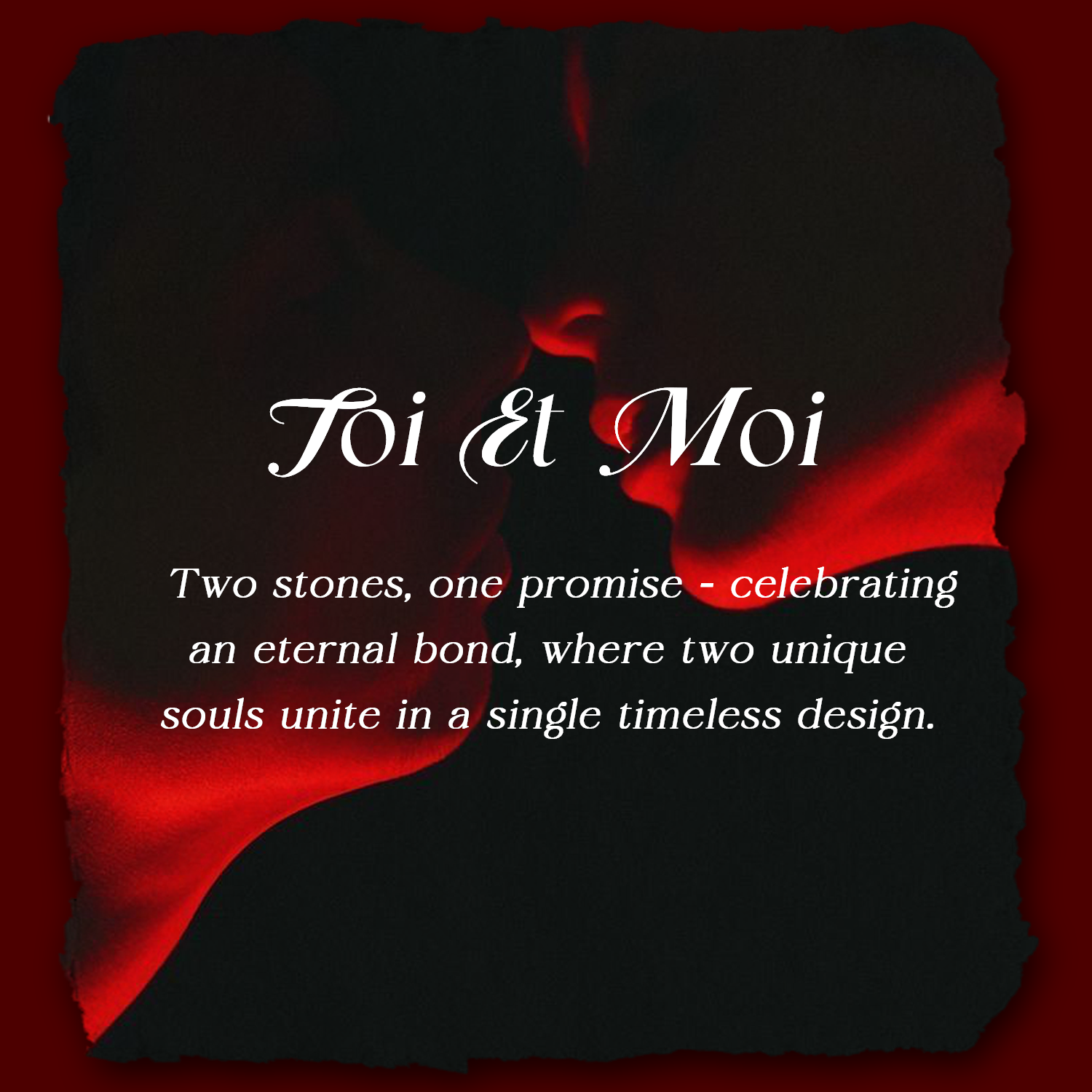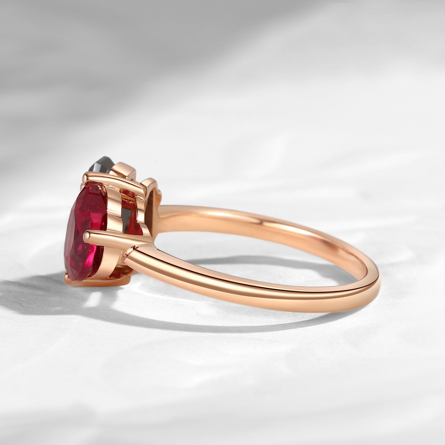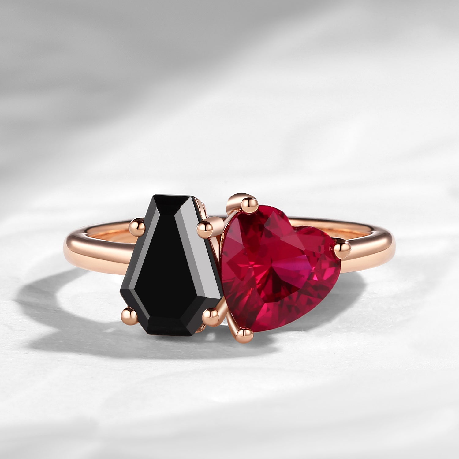 Black Moissanite & Lab Ruby Ring Two Stone Coffin And Heart Cut Promise Ring - Toi Et Moi Ring