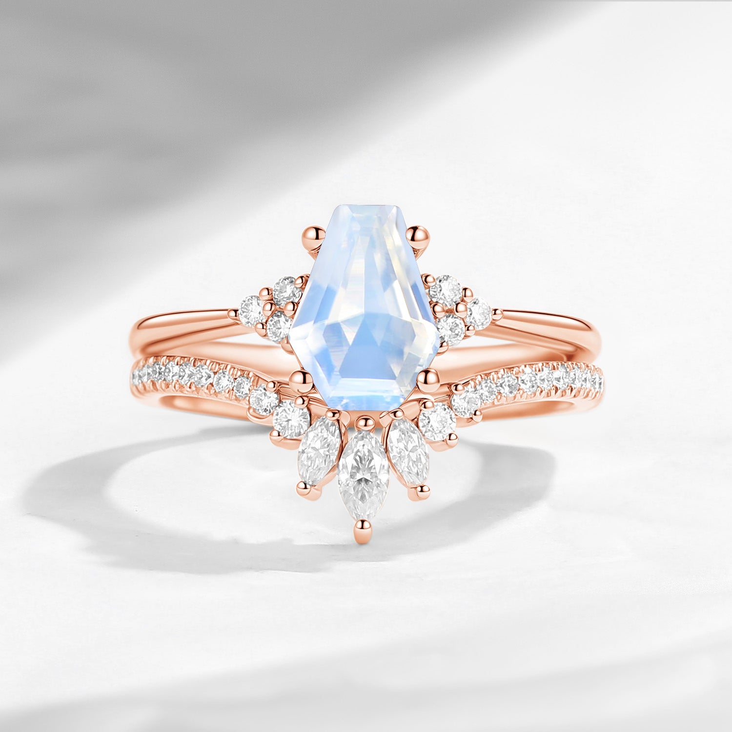 Coffin Cut Moonstone Cluster Engagement Set 2pcs - White Dress