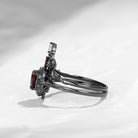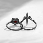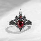 Unique Heart Shaped Garnet Sword Ring Bridal Set 2pcs Cupid's Arrow Valentine's Day Gift