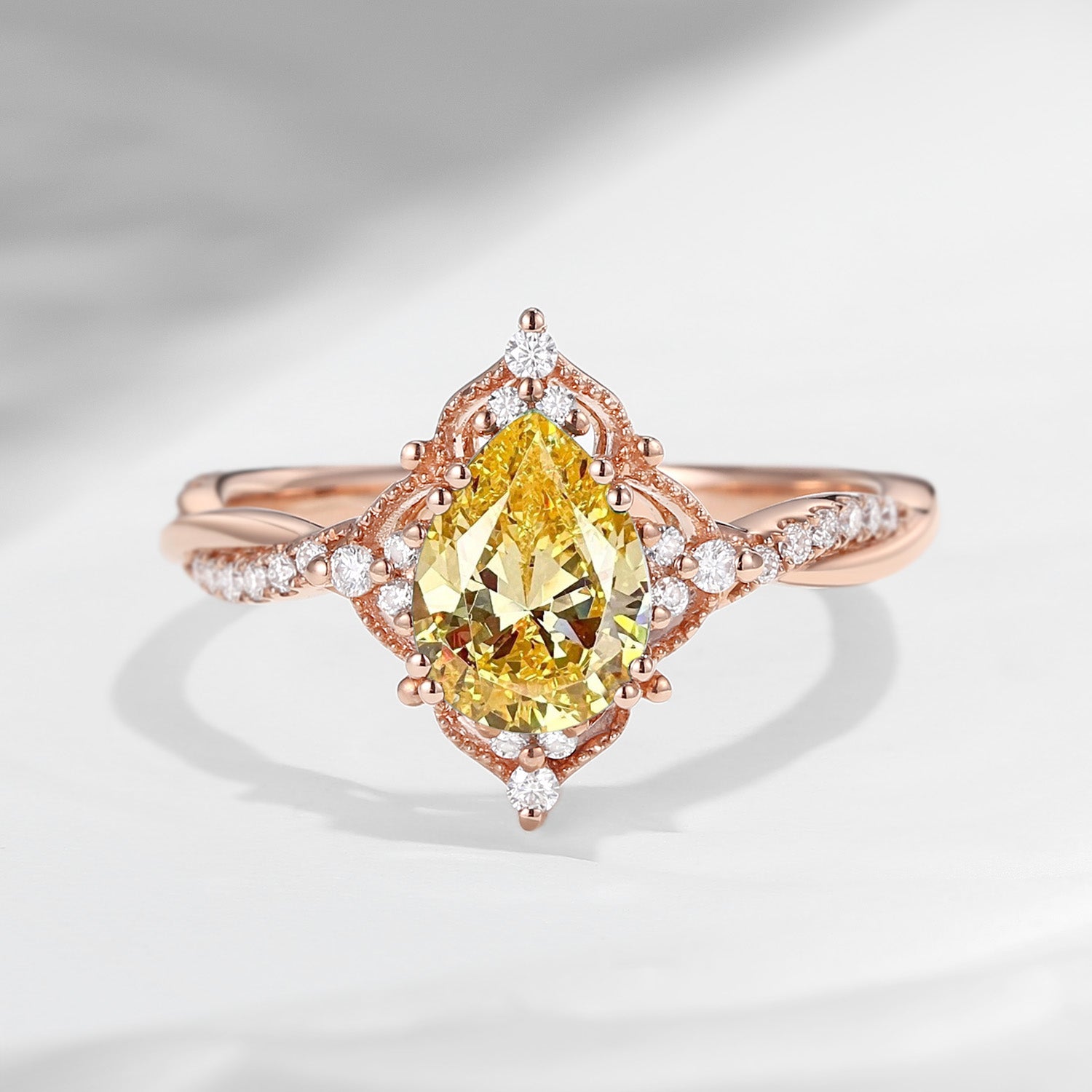 Vintage Style Infinity Yellow Lab Diamond Engagement Ring Nature Inspired Antique Gift Yellow Ring