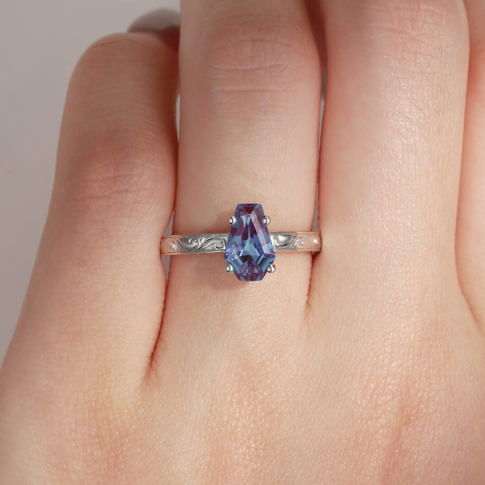 Vintage Filigree Coffin Spider Web Lab Alexandrite Engagement Ring