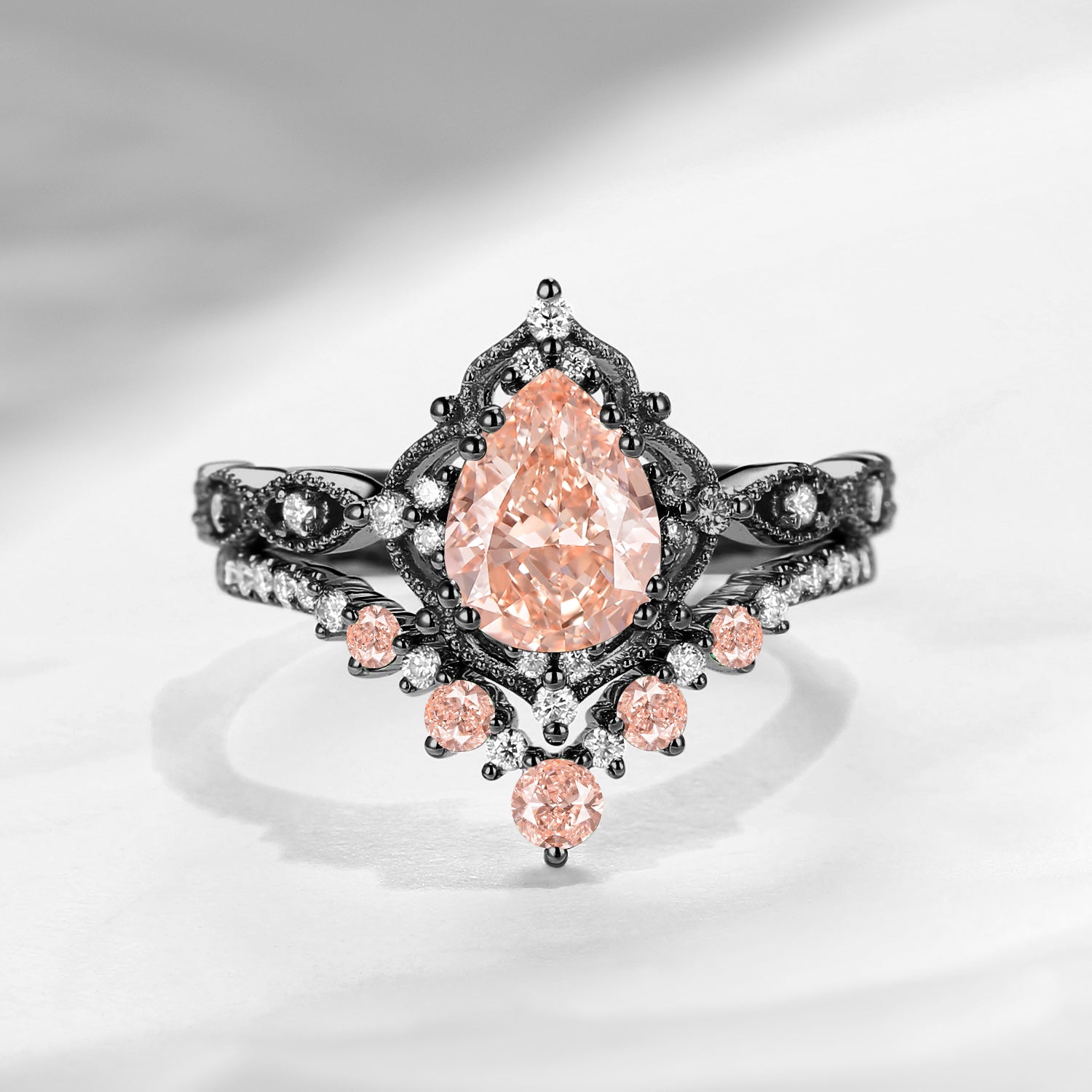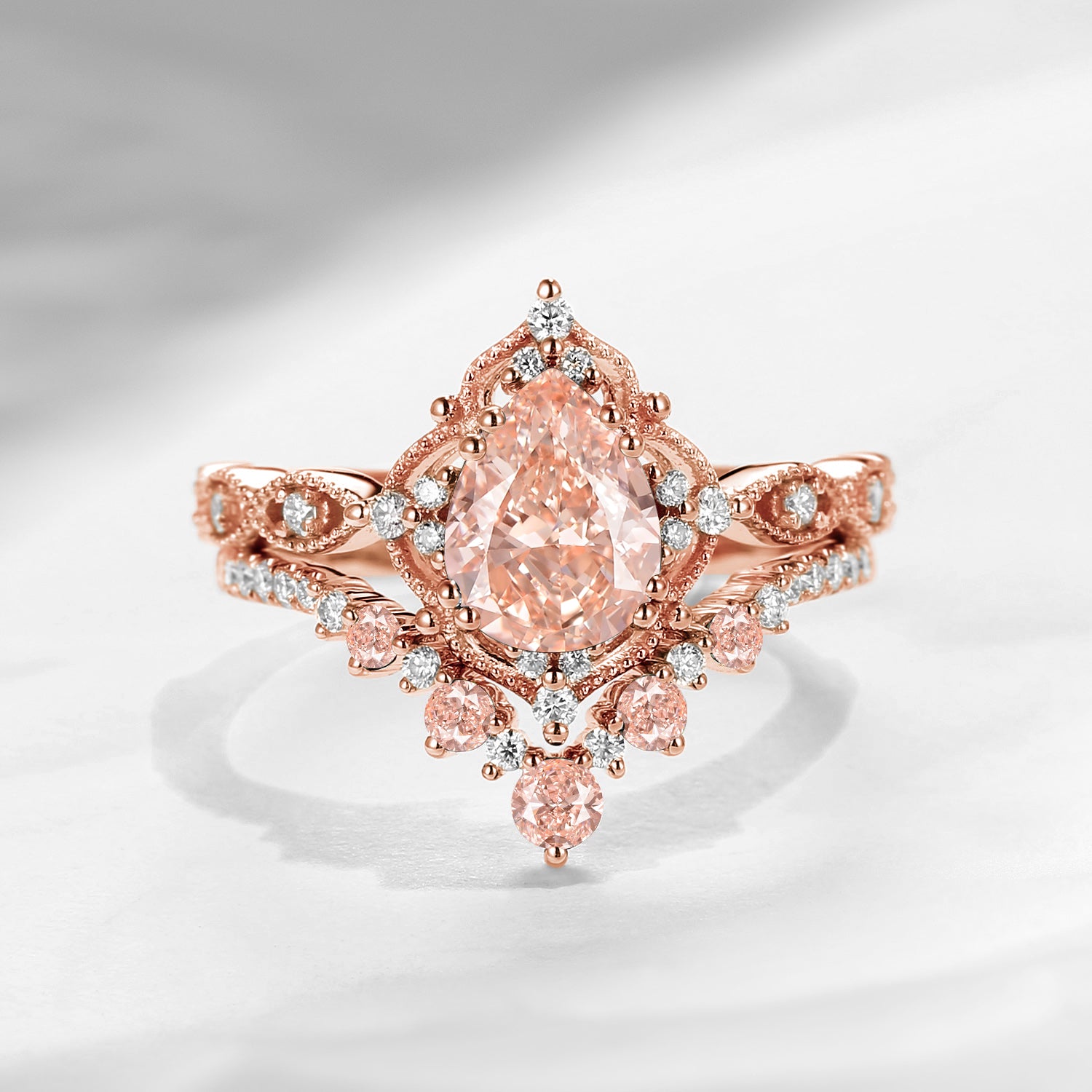 Antique Pear Cut Pink Lab Diamond Engagement Ring 2pcs