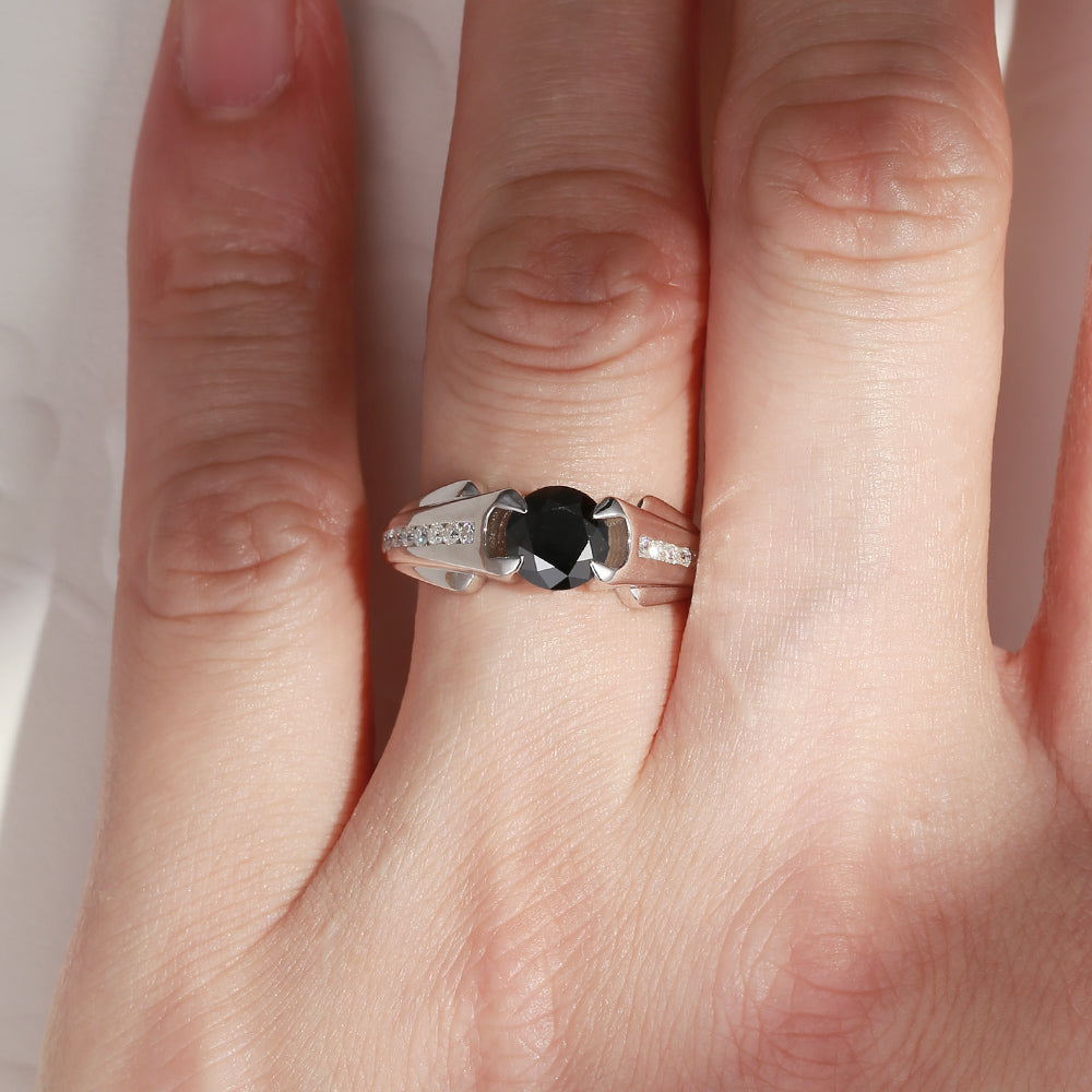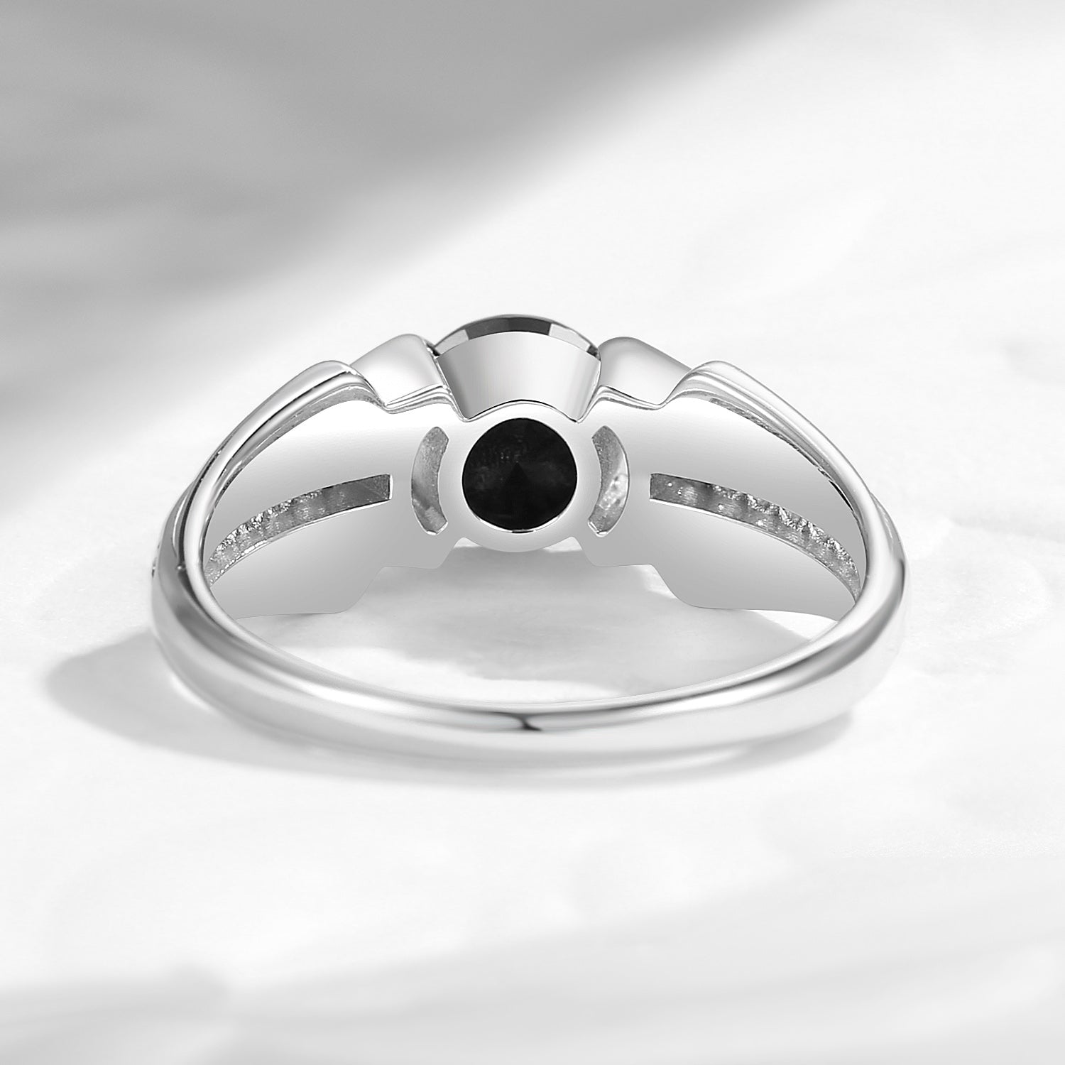 Round Black Moissanite Men's Ring Solitaire Wedding Ring