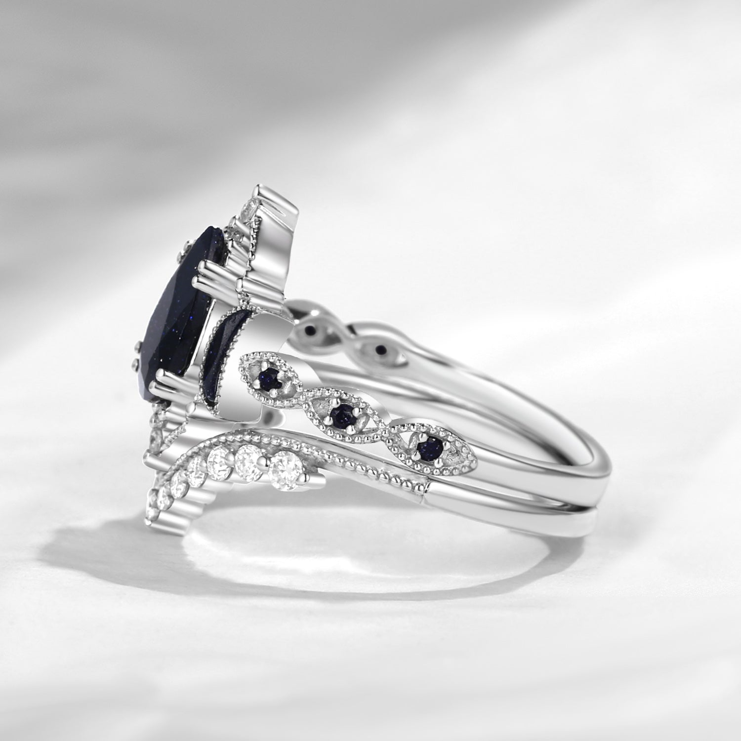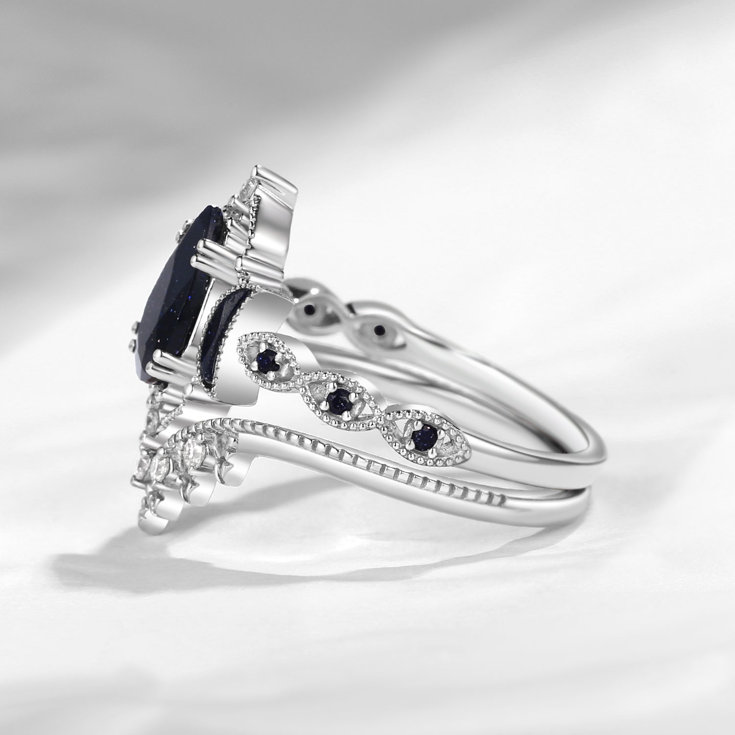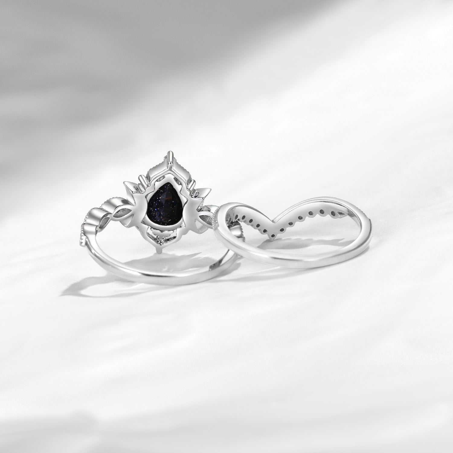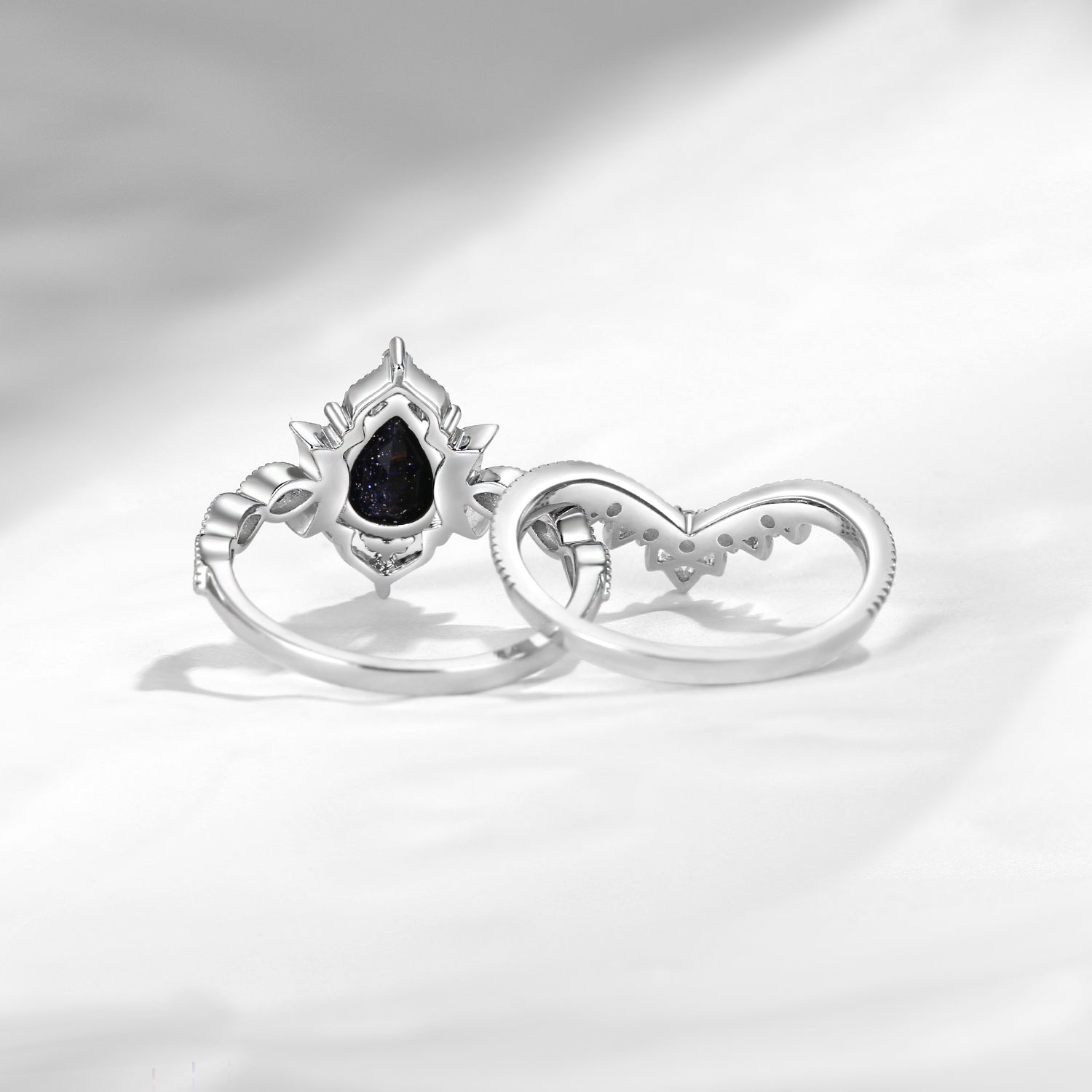 Crescent Moon | Pear Cut Blue Sandstone Engagement Ring Set 2pcs