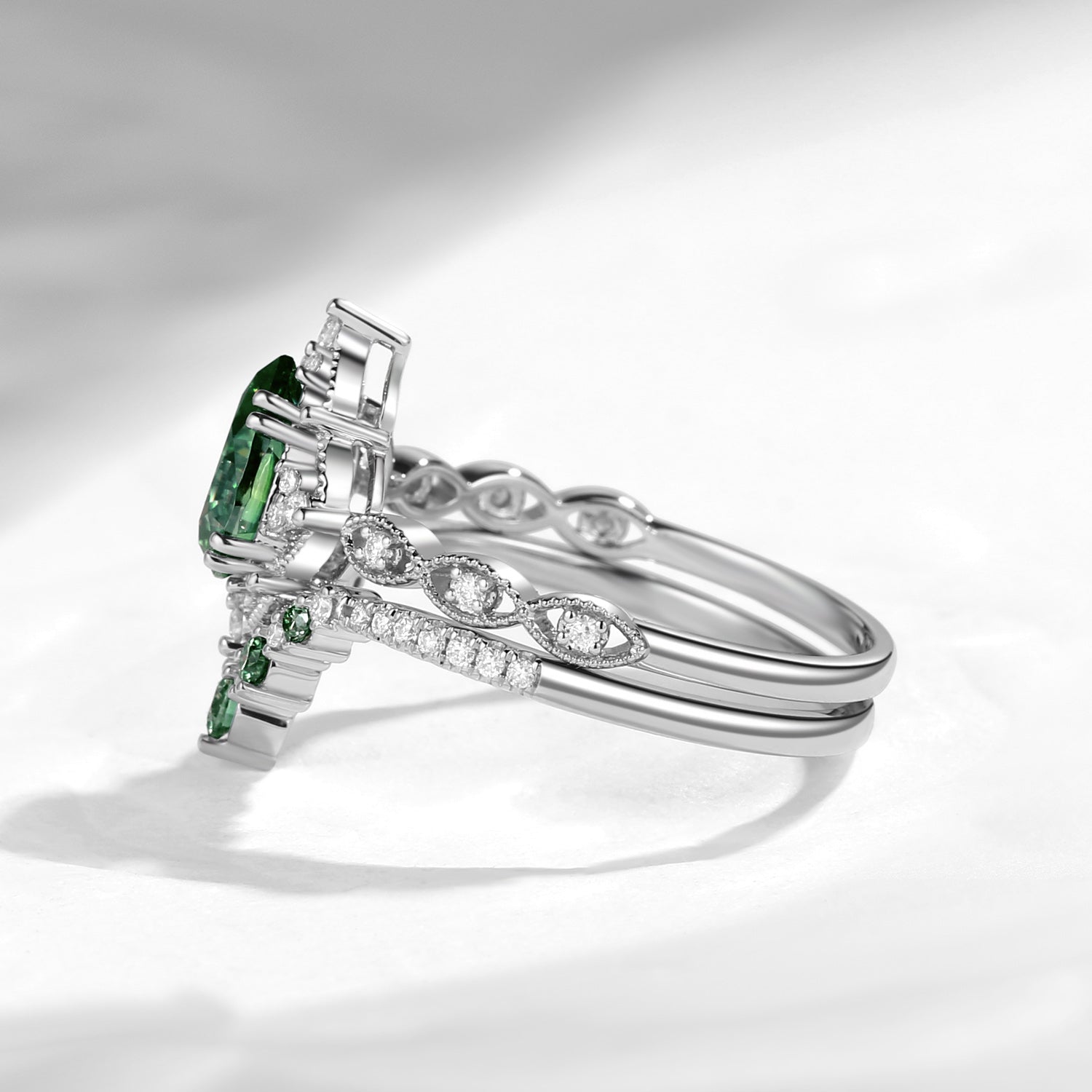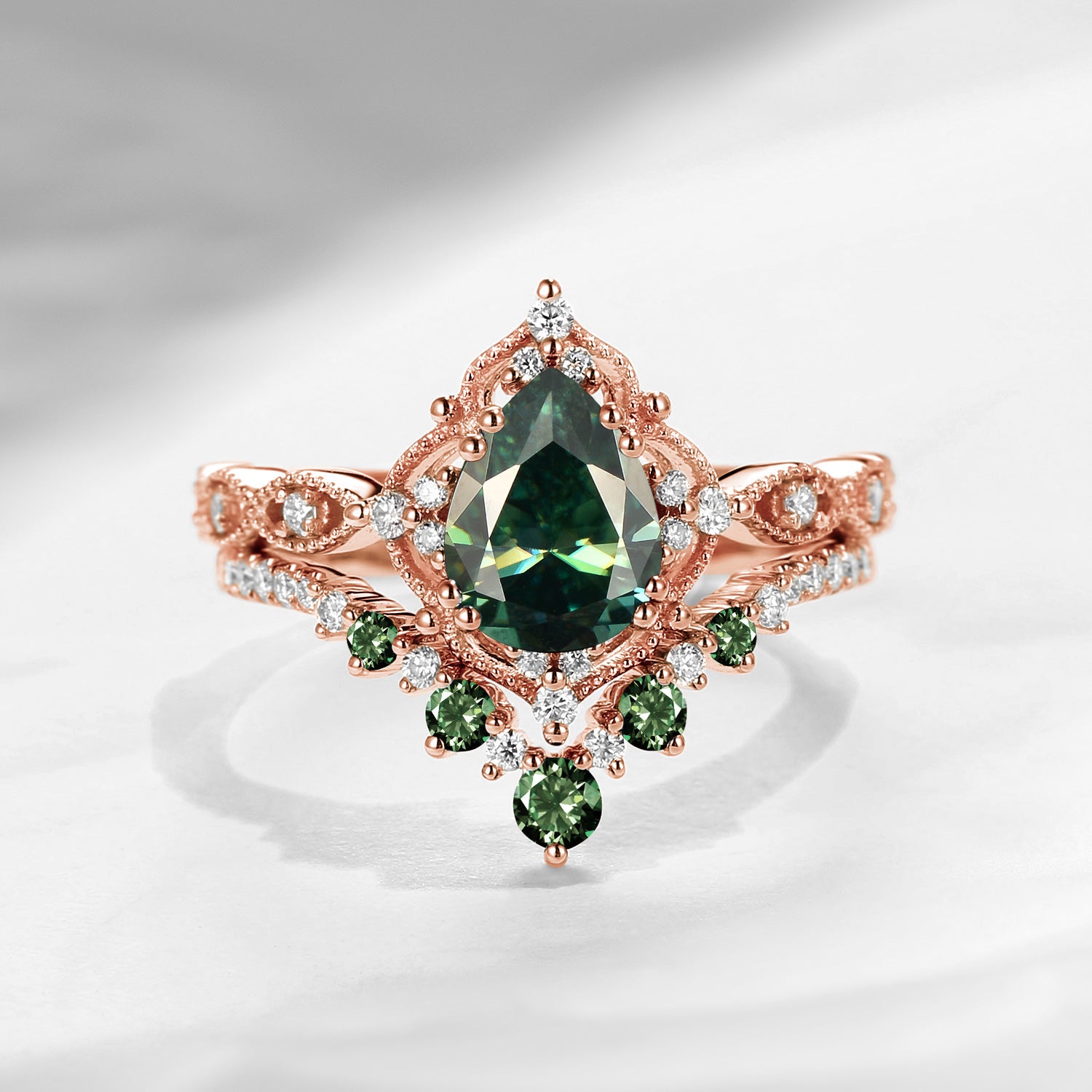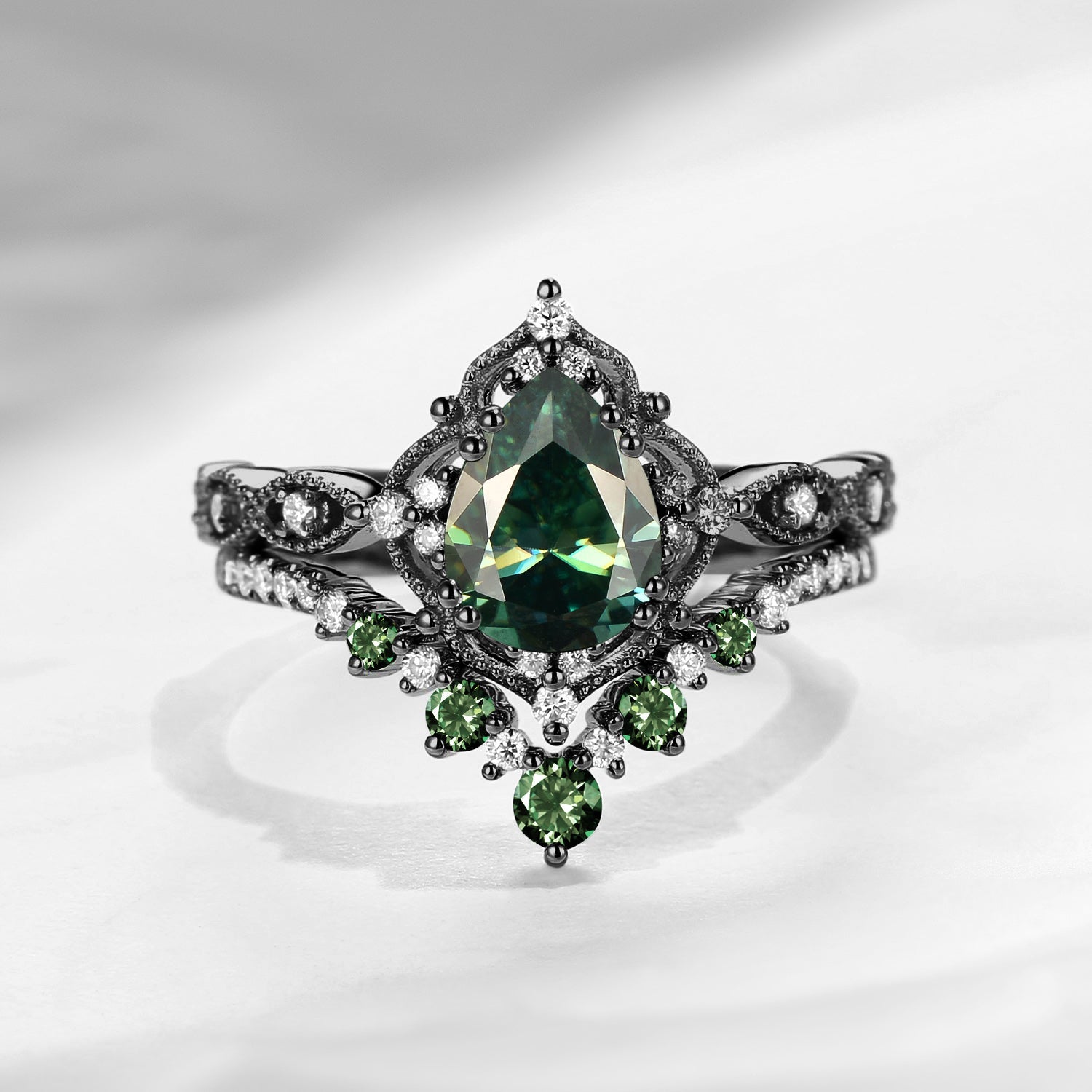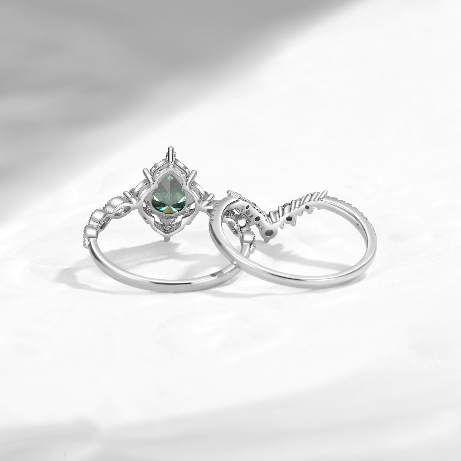 Antique Pear Cut Teal Moissanite Engagement Ring 2pcs