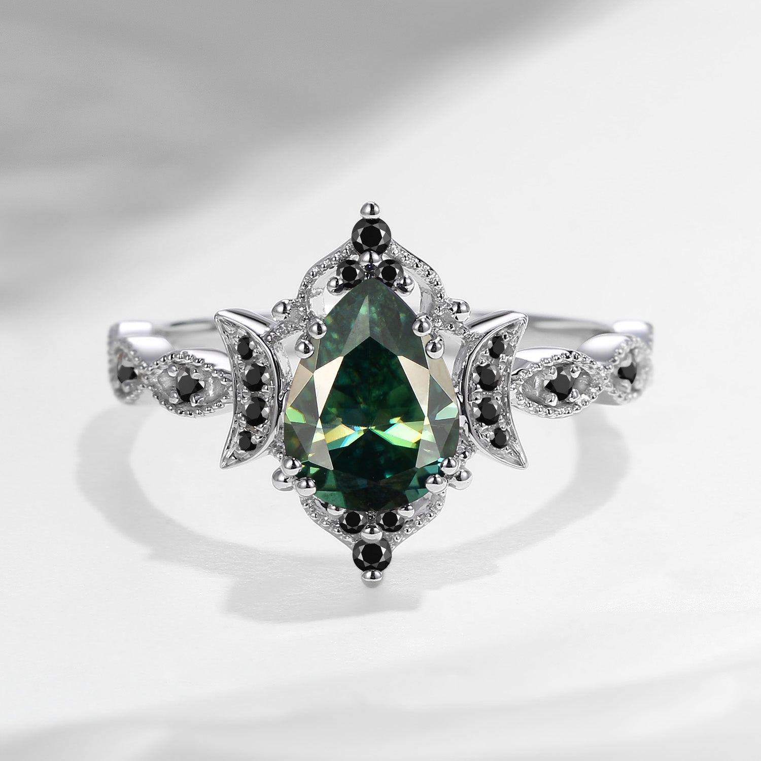 Crescent Moon | Unique Teal Moissanite Engagement Ring In Pear Shape - Eclipse