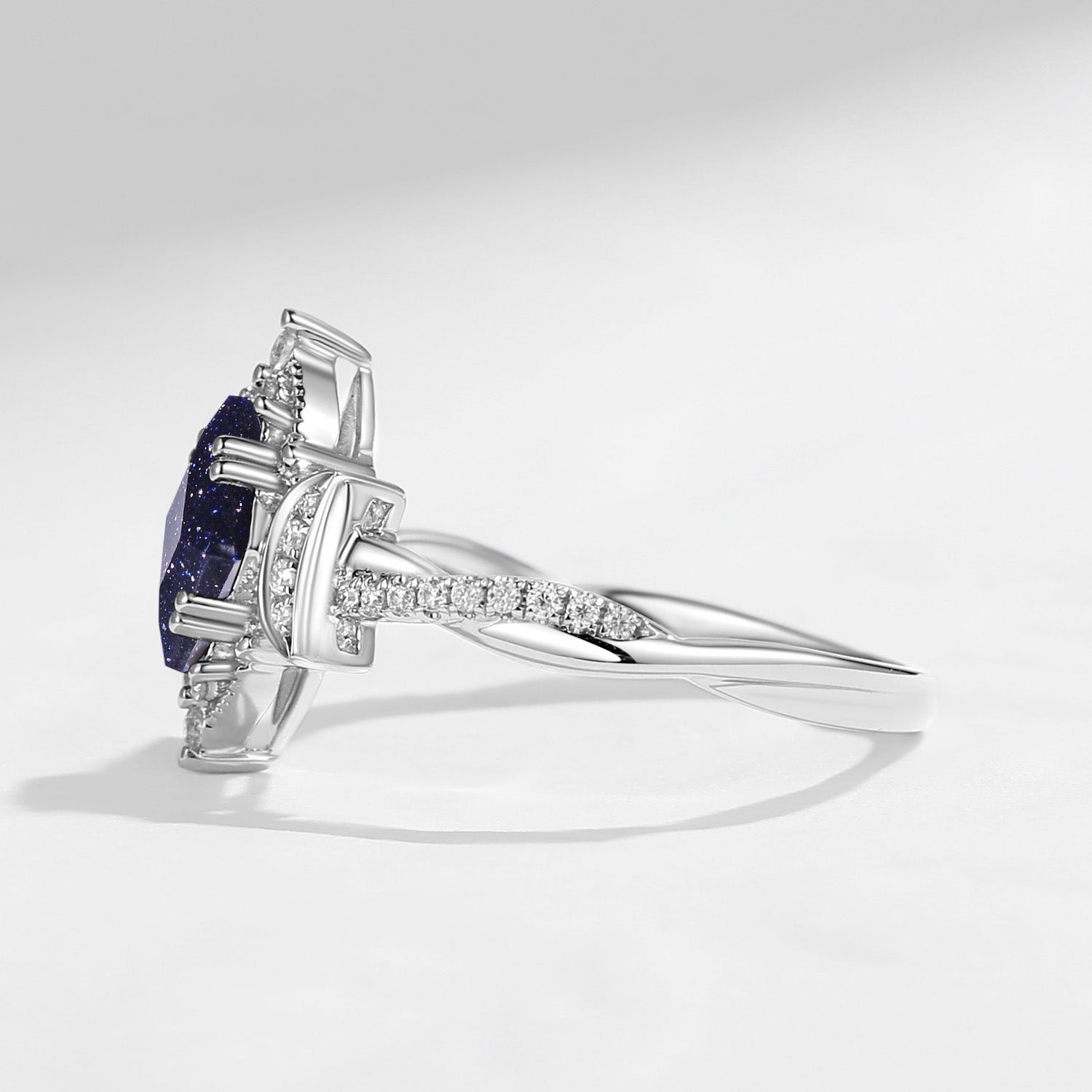 Crescent Moon | Unique Kite Cut Infinity Blue Sandstone Ring - Twisted Galaxy