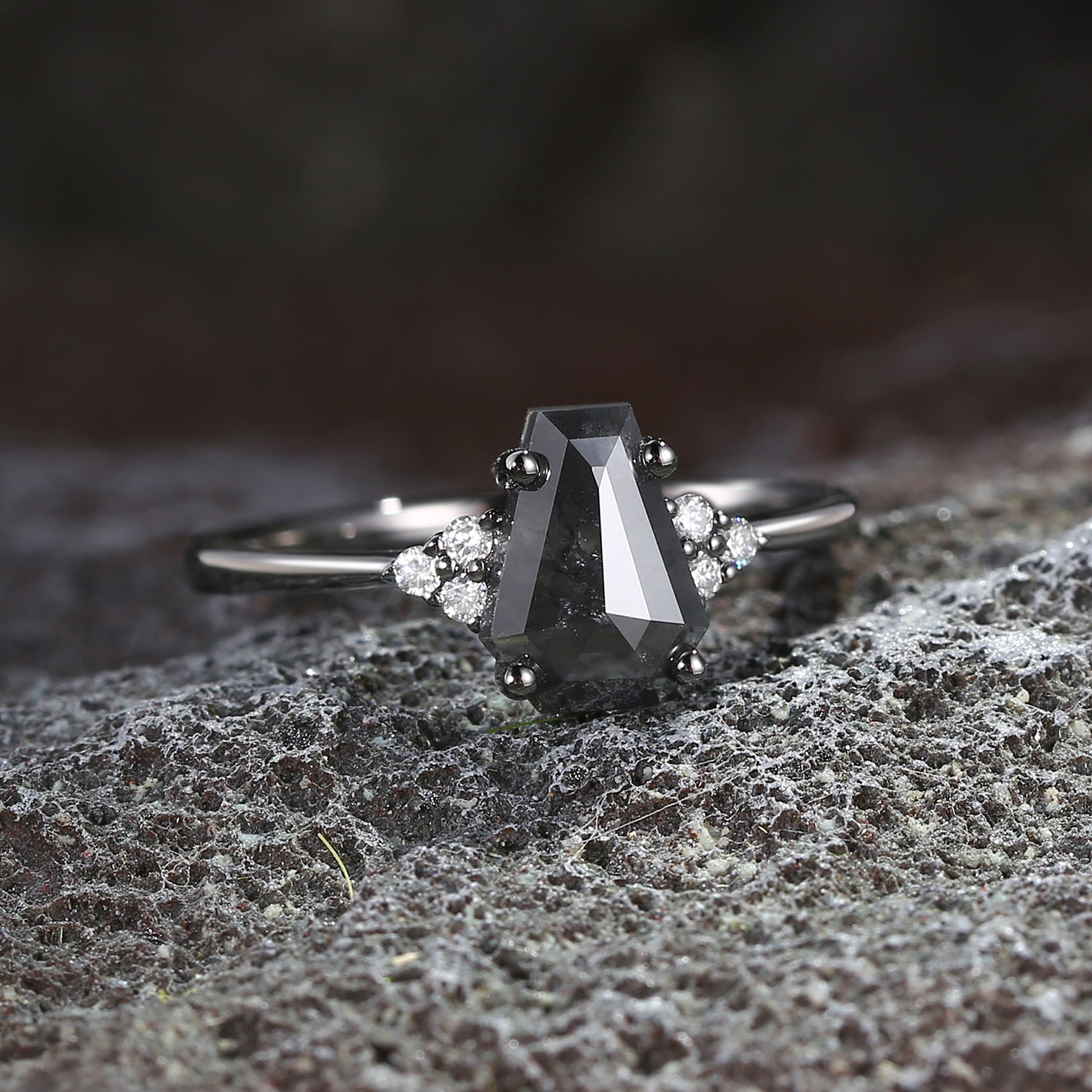 Crescent Moon | Coffin Cut Black Moissanite Engagement Ring - Dark Crown
