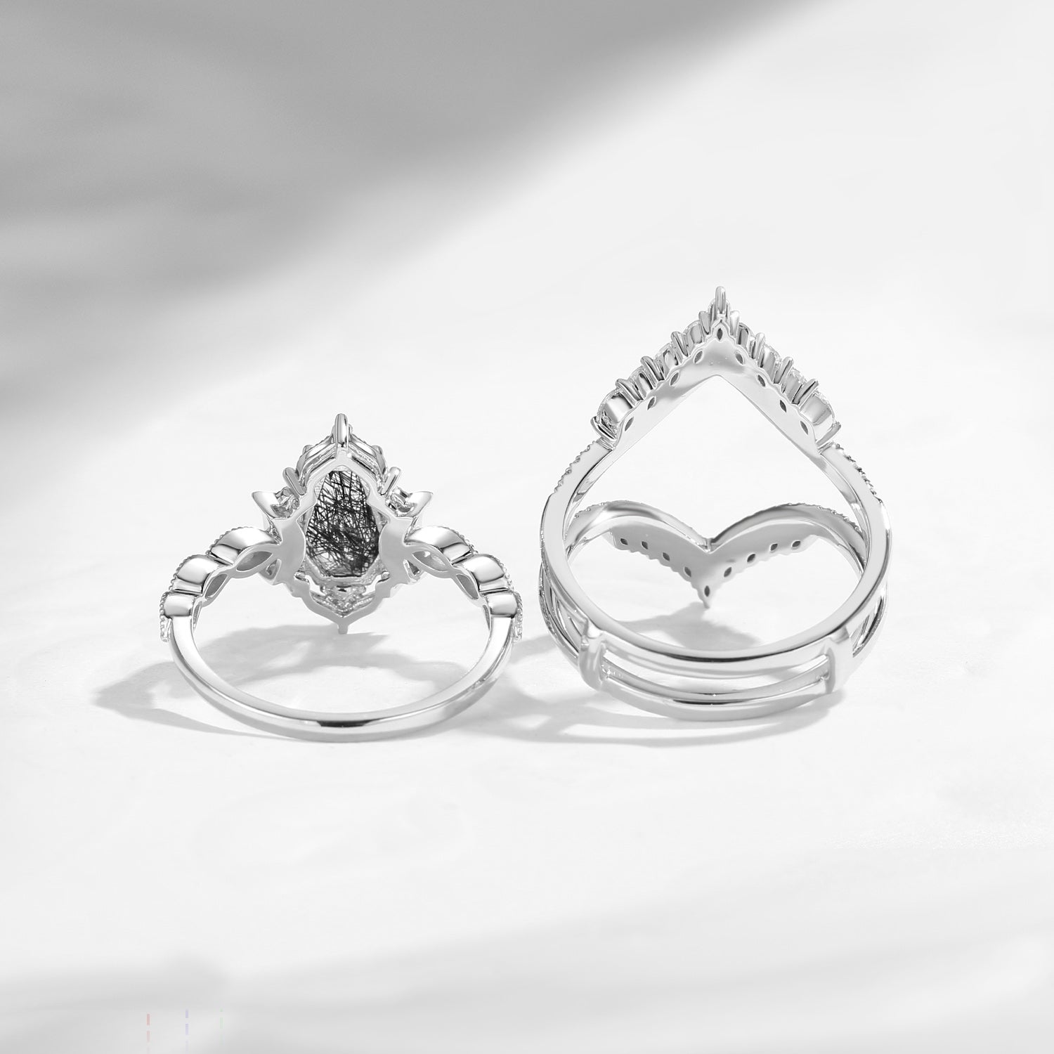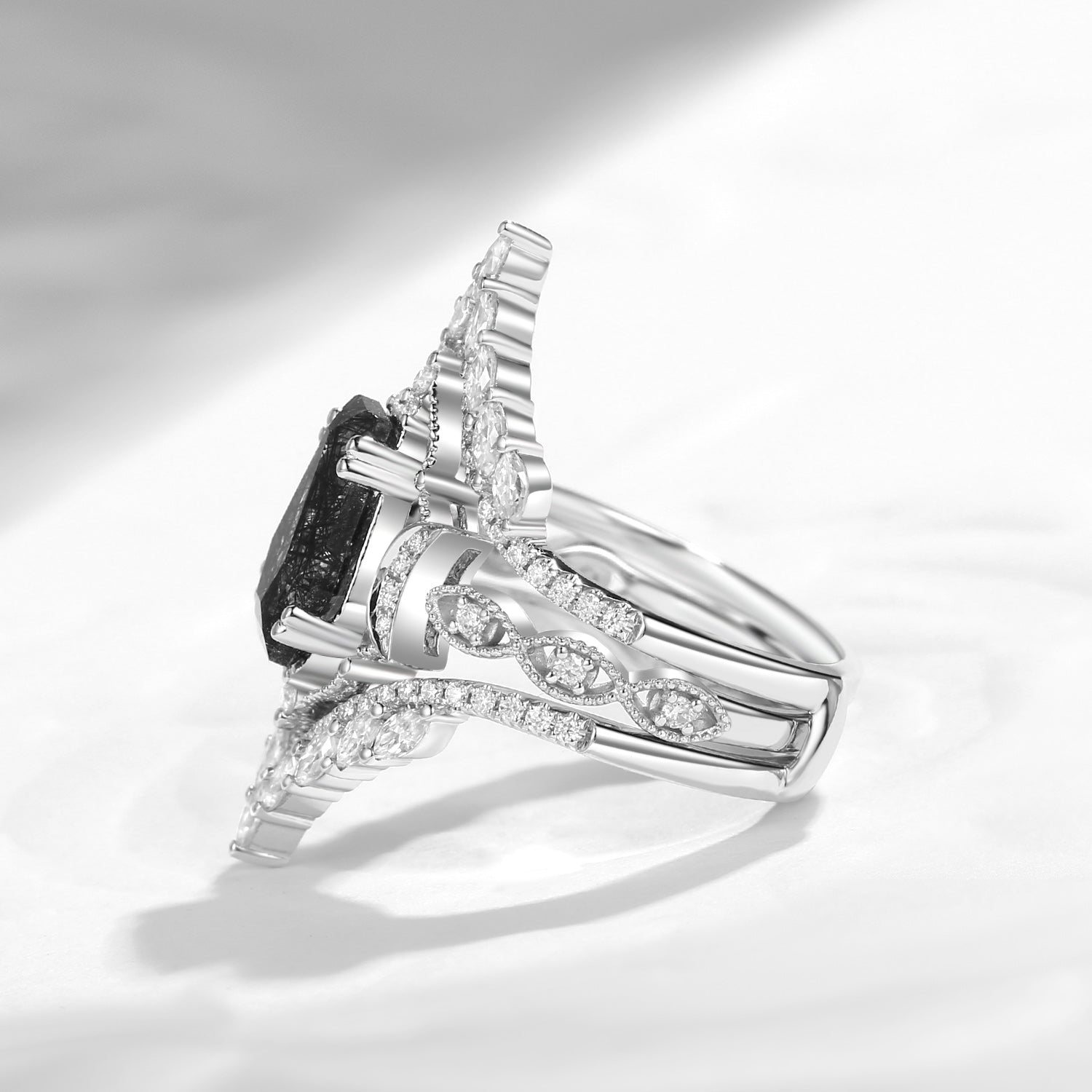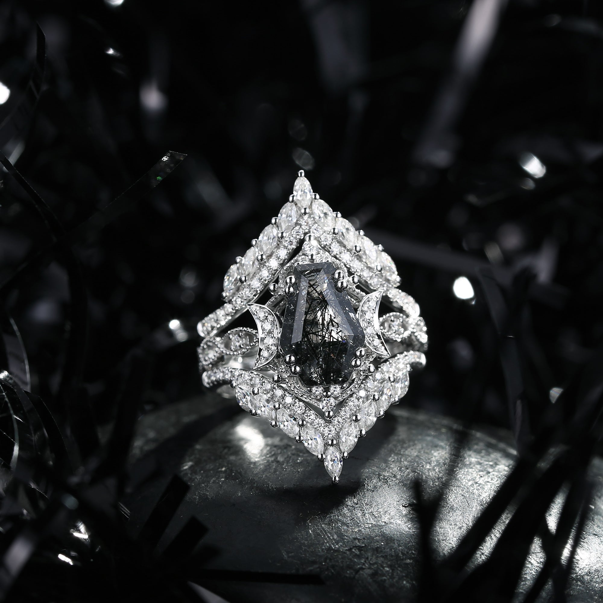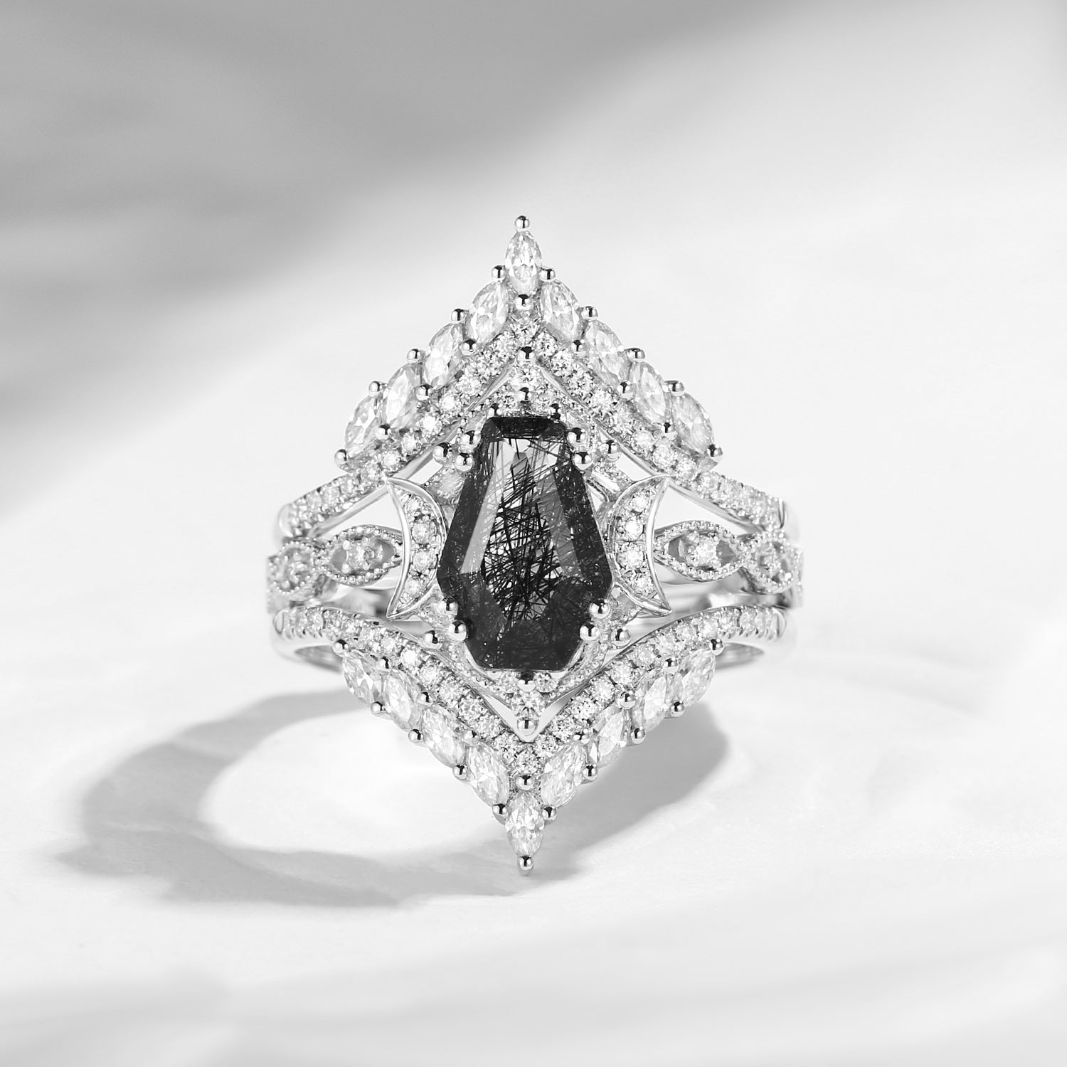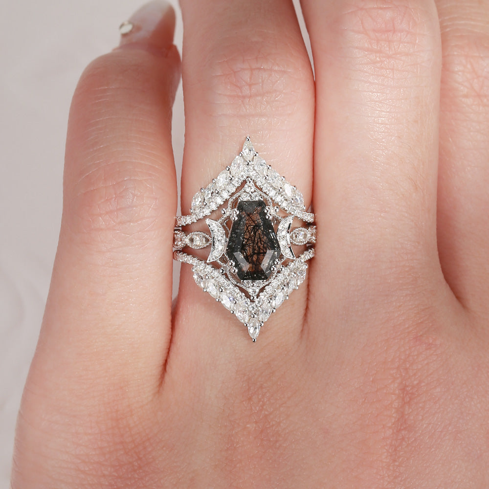 Crescent Moon | Vintage Coffin Black Rutilated Quartz Engagement Ring Jacket 2pcs - Guardian Angel