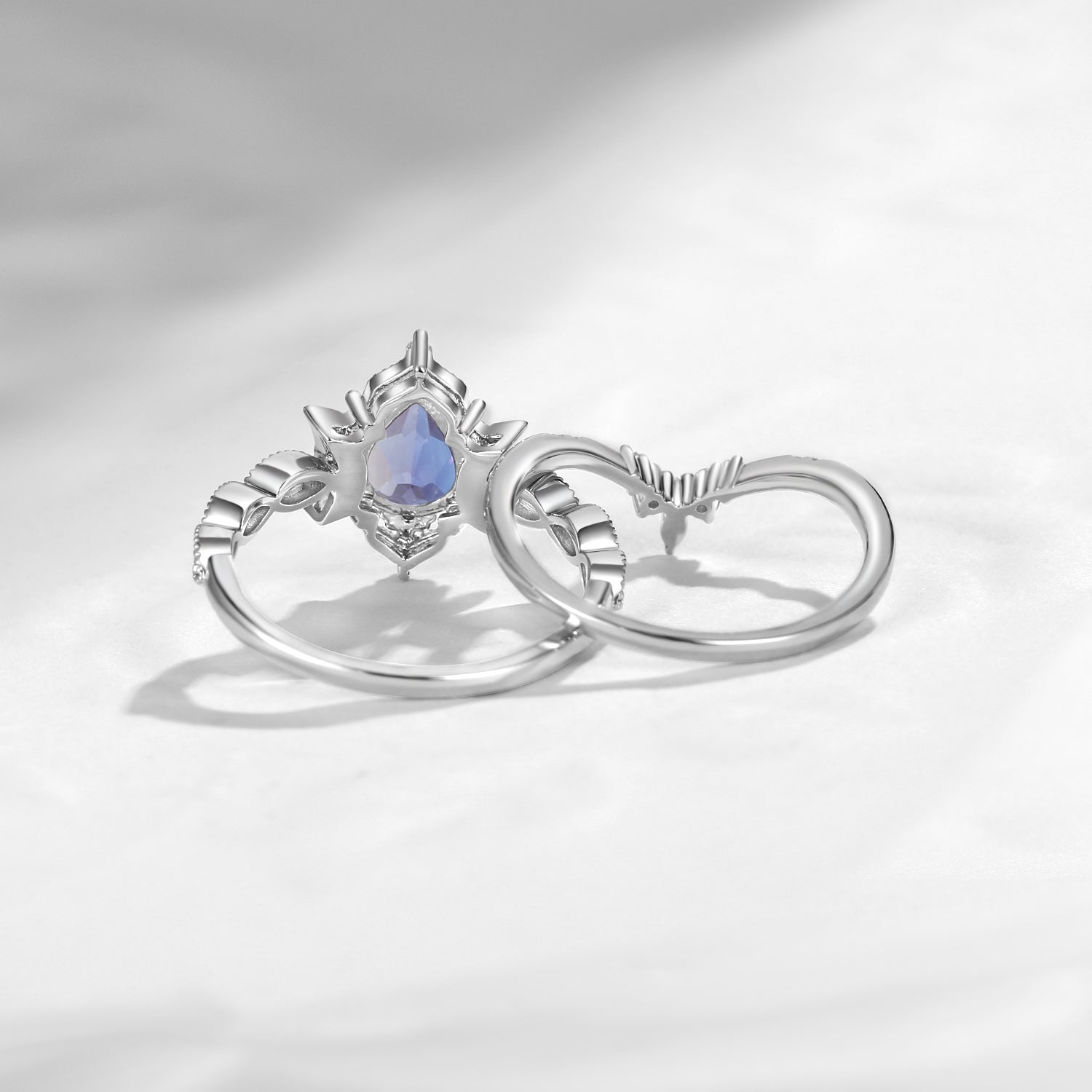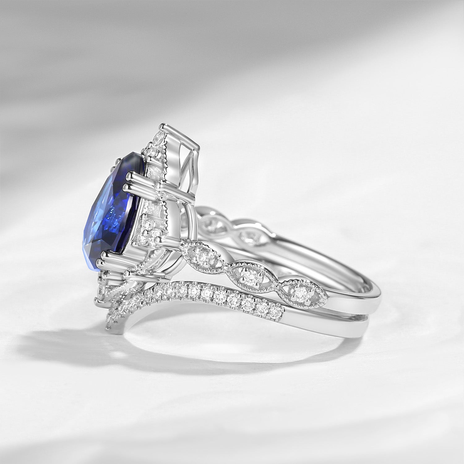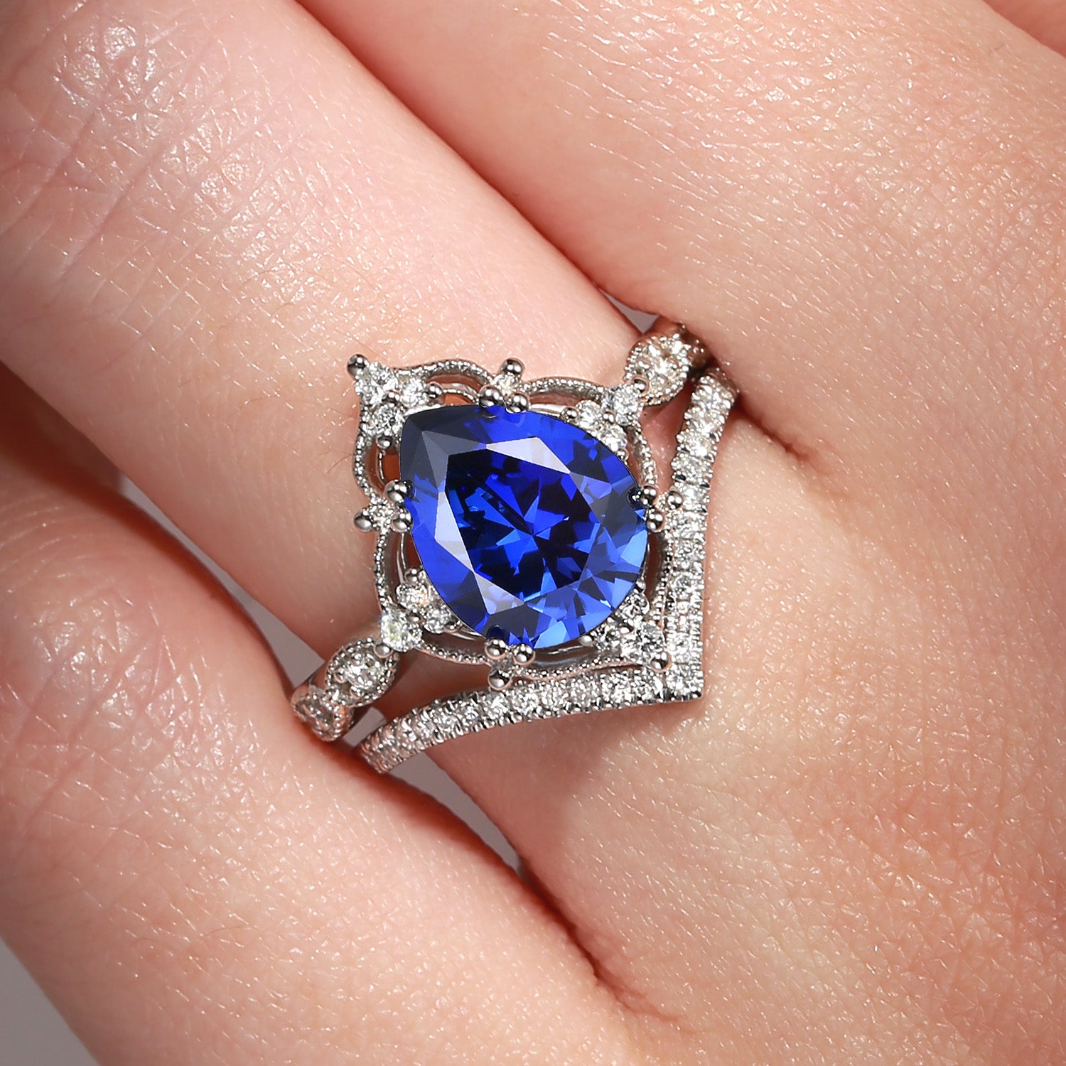 1.5ct Pear Shaped Lab Sapphire Engagement Ring Set 2pcs - Evelyn