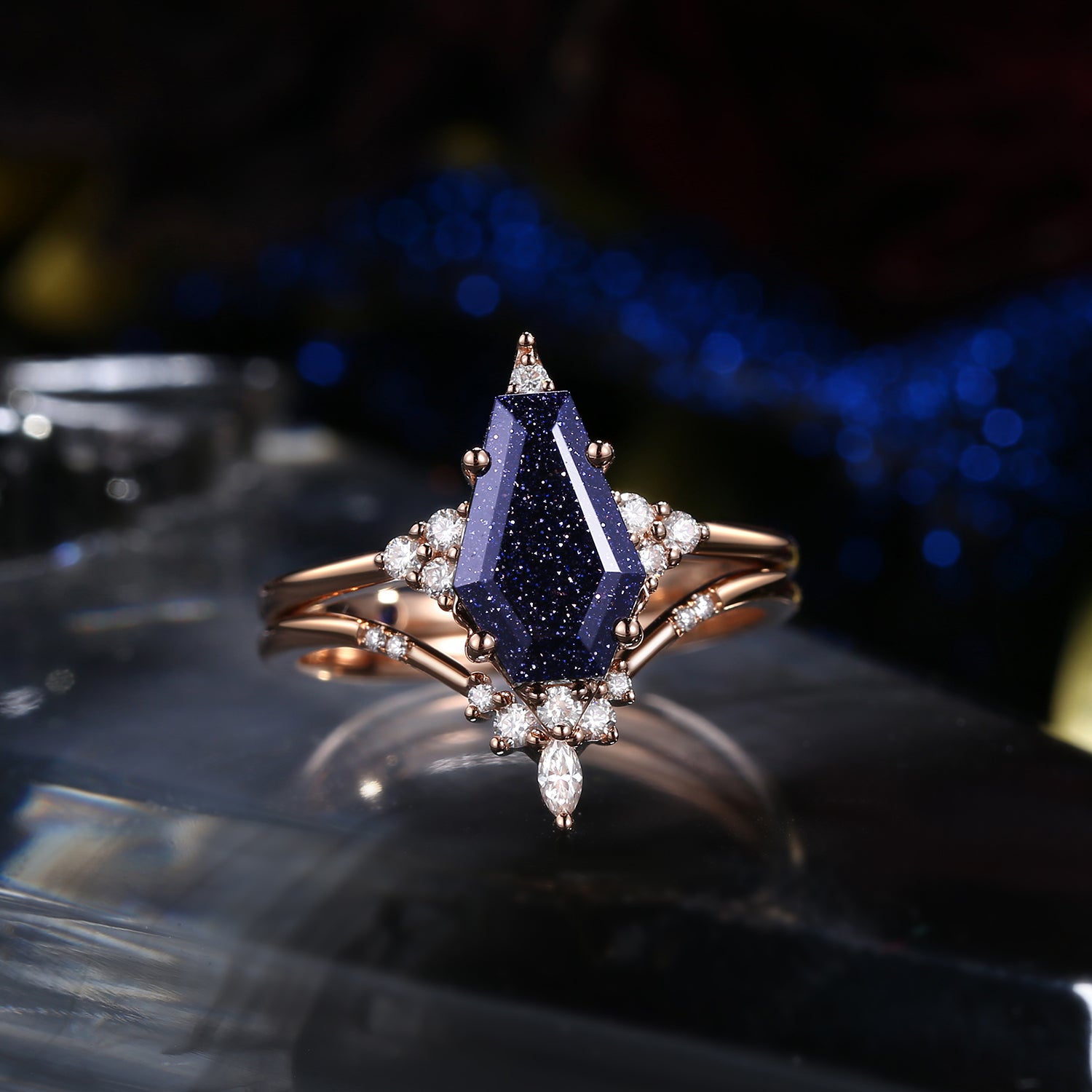 Unique Coffin Blue Sandstone Engagement Star Ring Set 2pcs - Coffin Kite